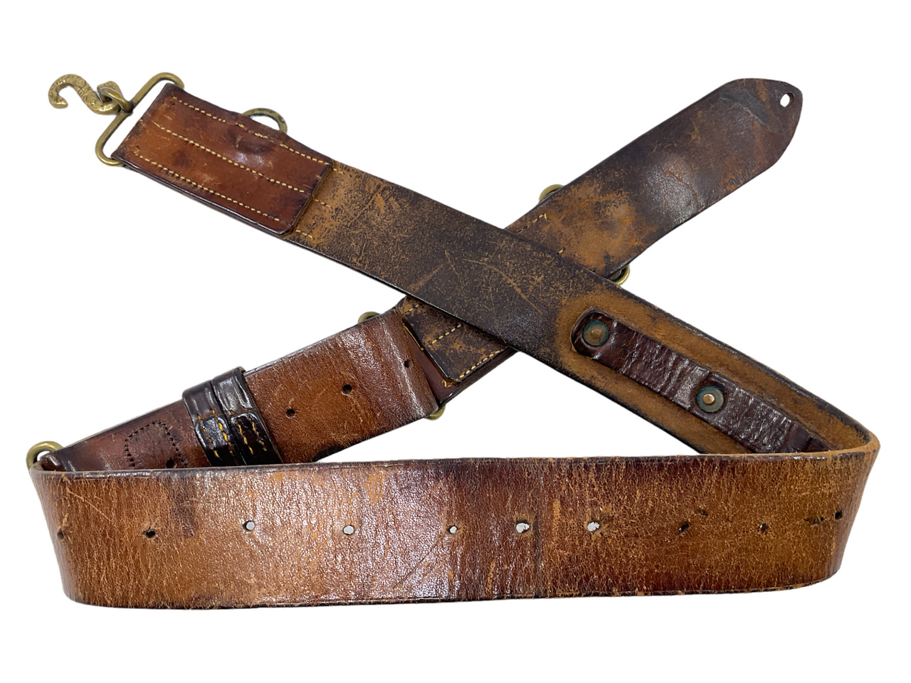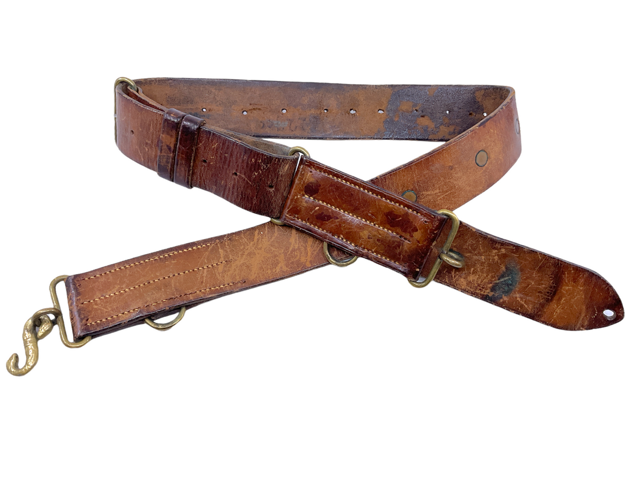 WW1 Canadian CEF Officers 1914 Dated Leather Sword Waist Belt & Snake Buckle