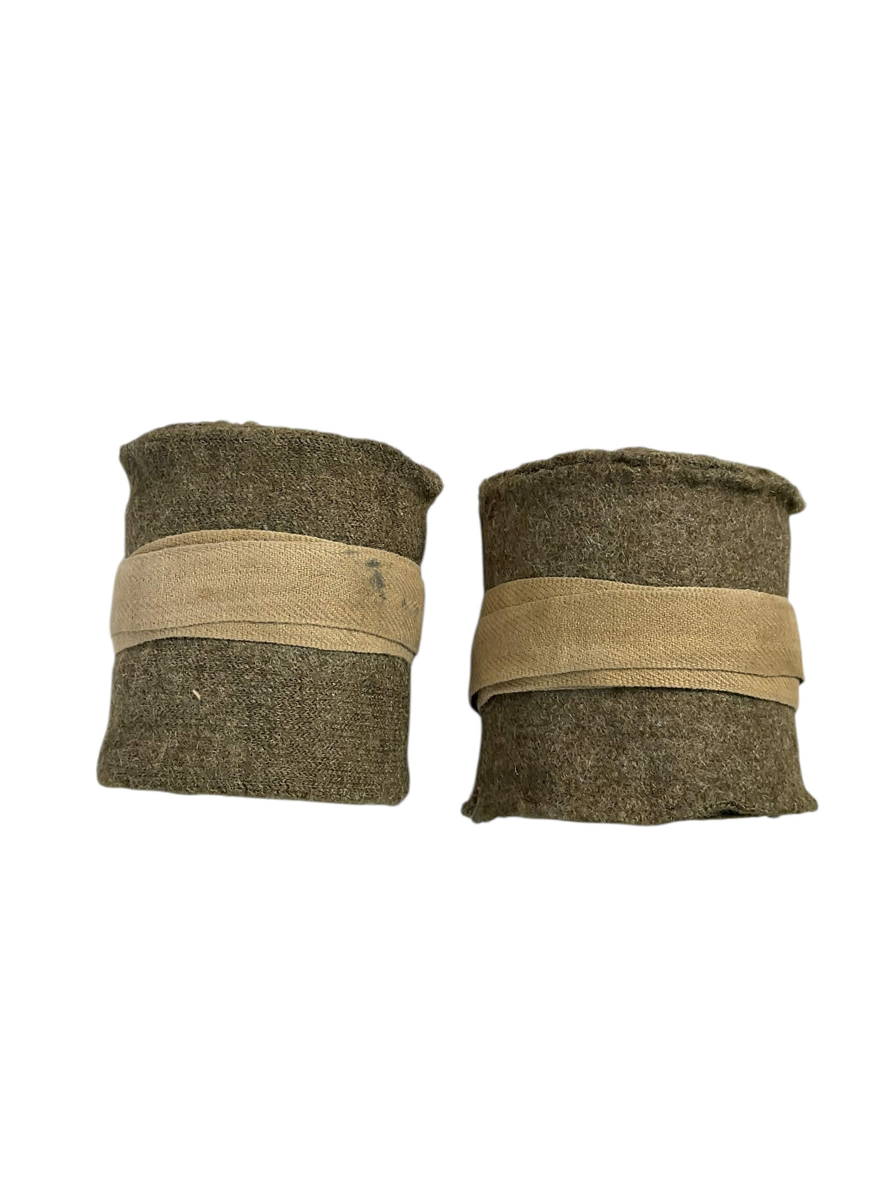 The WW1 Canadian CEF Putties are leg wrappings, historically used by the Canadian Expeditionary Force during World War I. They are made from khaki wool, designed for durability and warmth. These putties served to protect soldiers’ lower legs from cold, dirt, and minor injuries. Original versions are often considered rare military collectibles.