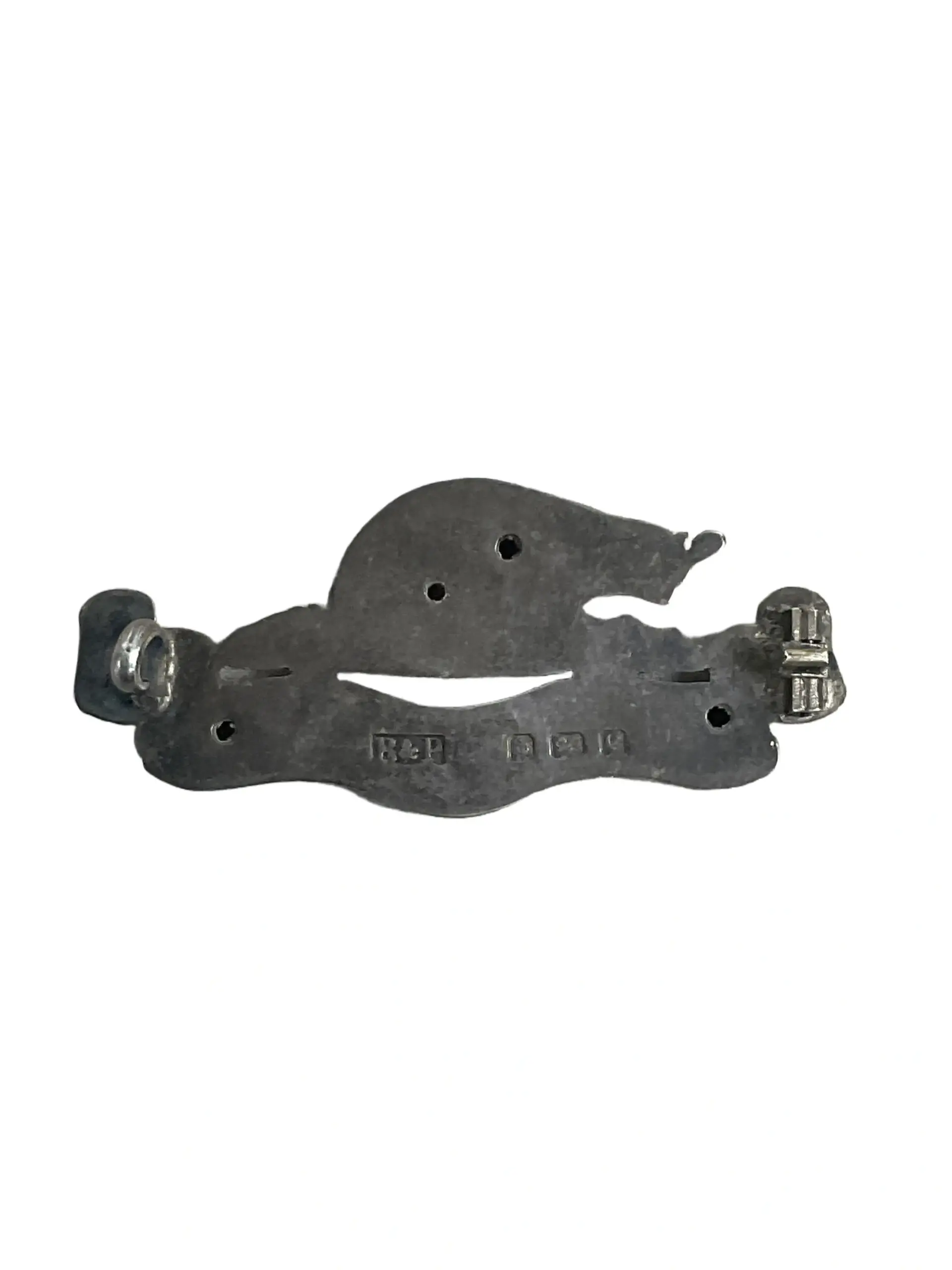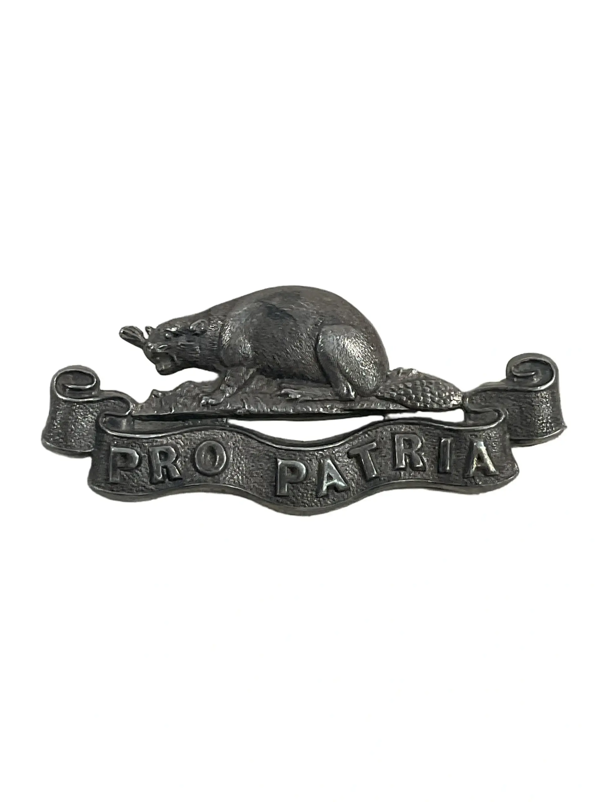The WW1 Canadian CEF Royal Canadian Regiment (RCR) Collar Insignia offered here is a single piece crafted in sterling silver. This insignia was worn by members of the Royal Canadian Regiment as part of their Canadian Expeditionary Force (CEF) uniform during the First World War. The collar badge features the regiment’s distinctive design, typically incorporating a royal crown and regimental insignia. Sterling silver construction indicates it was likely produced for officers, as enlisted versions were commonly made from other metals. Collar insignia were worn on the uniform collar points to signify regimental affiliation and rank within the CEF. The RCR was among the oldest and most prominent infantry regiments in the Canadian Army, participating in major engagements on the Western Front. This item reflects the military insignia used by Canadian forces during the conflict and provides an example of period-issued regimental accoutrements. It is a single badge; not sold as a pair.