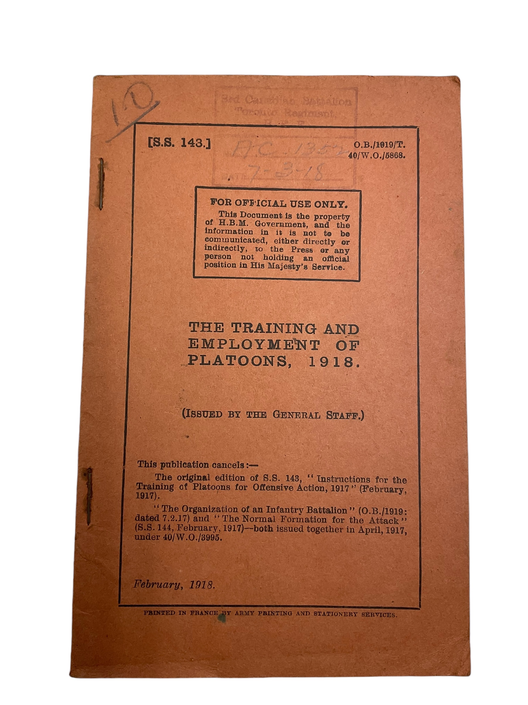 WW1 Canadian CEF The Training and Employment of Platoons 1918 Reference Manual