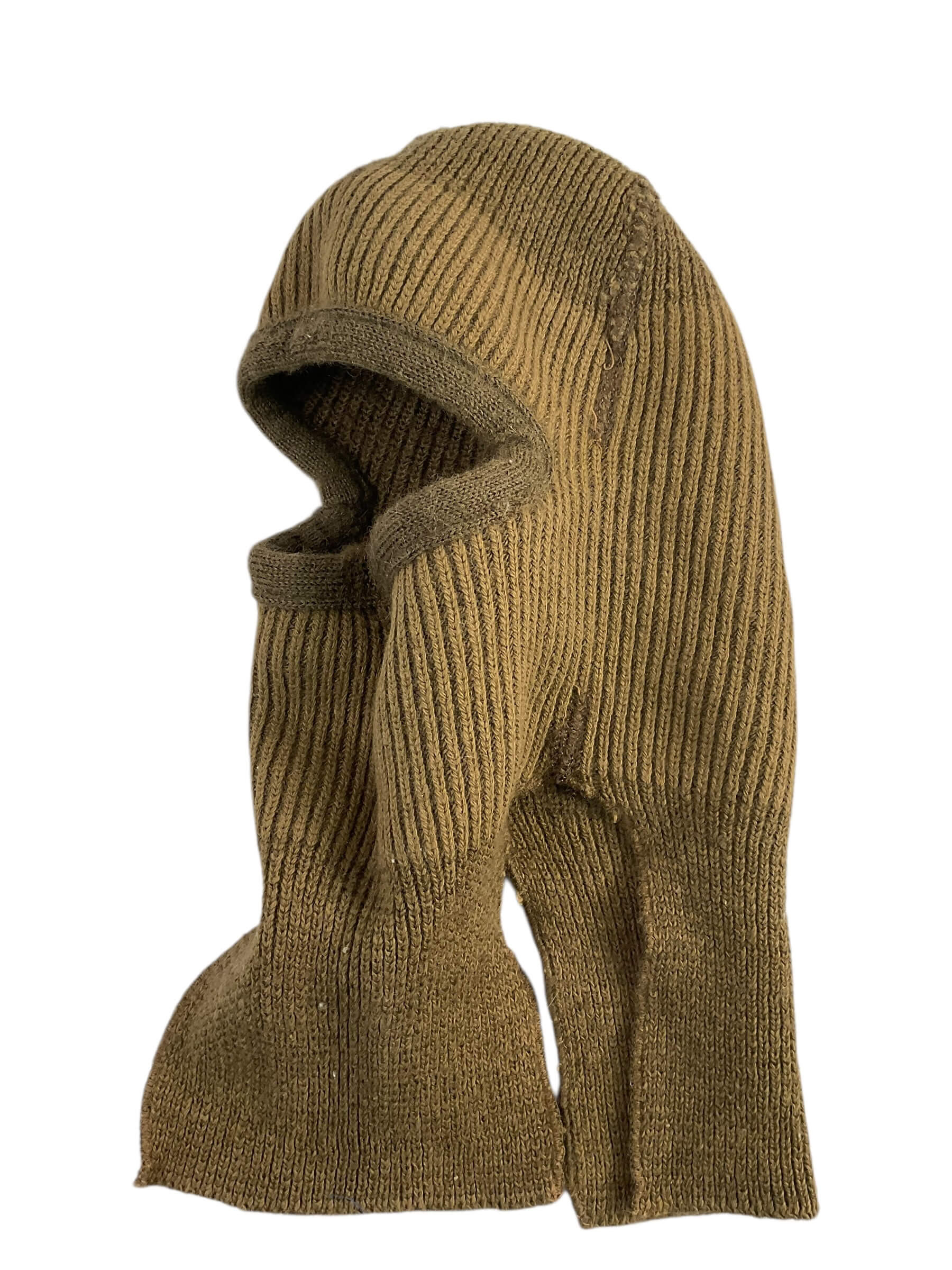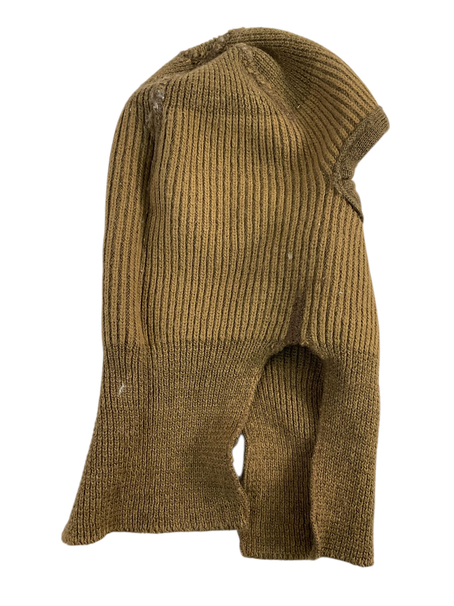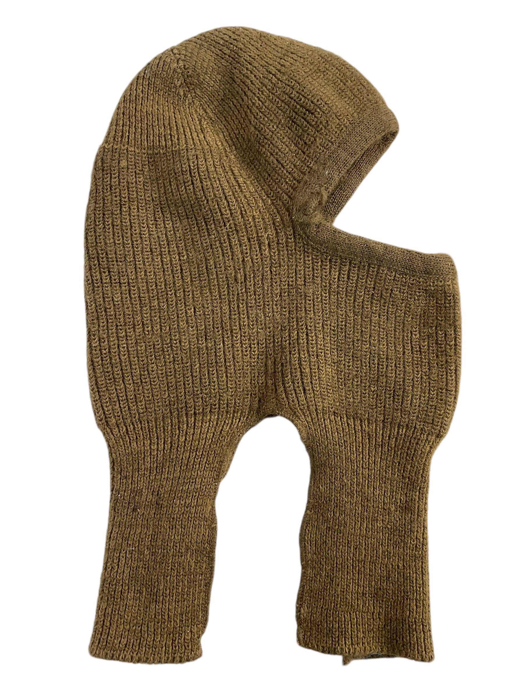The WW1 Canadian CEF Wool Balaclava is a historically accurate piece of military winter wear issued to soldiers of the Canadian Expeditionary Force during the First World War. Constructed from thick, knitted wool, this garment provided essential protection from harsh cold conditions in the trenches and on the front lines. The design typically features a single face opening, leaving only the eyes and, in some cases, the mouth exposed, while extending over the neck and upper shoulders for additional warmth. The balaclava was a key component of the CEF’s winter kit, intended to reduce exposure-related health issues and improve comfort during extended periods outdoors. Often manufactured in neutral, military-issue colors such as khaki or olive, these items varied slightly depending on production source. As an artifact, the WW1 Canadian CEF Wool Balaclava represents the practical adaptations made for the well-being of soldiers serving in challenging environments during the conflict.