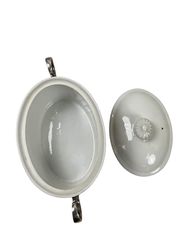 The WW1 Canadian Garrison Artillery Officers Mess Serving Dish, dated 1916, is an original piece of military tableware from the First World War era. This serving dish was produced for use in officers’ mess facilities associated with the Canadian Garrison Artillery, a branch responsible for manning heavy artillery in fixed defensive positions. The dish is manufactured from white ceramic or porcelain and marked with identifying features such as the regiment’s insignia and the year 1916, typically present in glaze or underglaze transfer. Measuring approximately standard dimensions for mess tableware, it was used for serving food within the formal dining setting afforded to officers. These items were part of regulated mess equipment, reflecting military standards of the time and offering insight into daily life and organization within the Canadian forces during World War One. The dish represents a tangible artifact of Canadian military history and the material culture of wartime service.