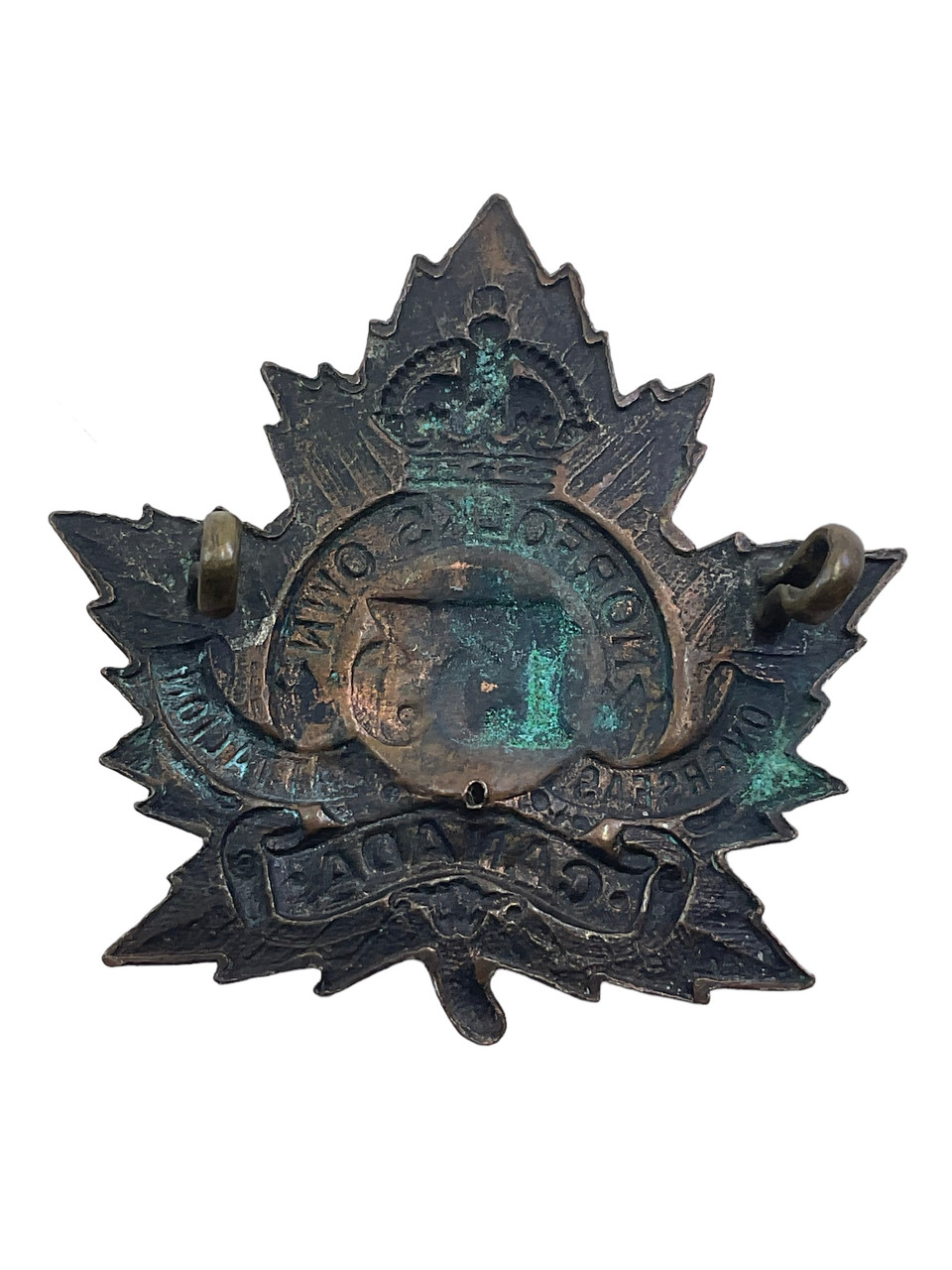 The WW1 CEF 133rd Battalion Cap Badge is a historic military artifact from the First World War, specifically representing the 133rd Battalion of the Canadian Expeditionary Force (CEF). This meticulously crafted badge features intricate design elements symbolic of the pride and heritage of the Canadian soldiers who served under this battalion. Composed of durable metal, the badge often includes the battalion number, regimental insignia, and national symbols such as maple leaves or the Crown. Worn on the cap, it served as a means of identification and a source of unit pride for the soldiers. Collectors of military memorabilia highly prize these badges for their historical significance and craftsmanship, encapsulating the bravery and dedication of the Canadian troops who played a crucial role in the global conflict of WW1. Owning this badge is akin to holding a piece of history that honors the legacy of those who served their country with valor.