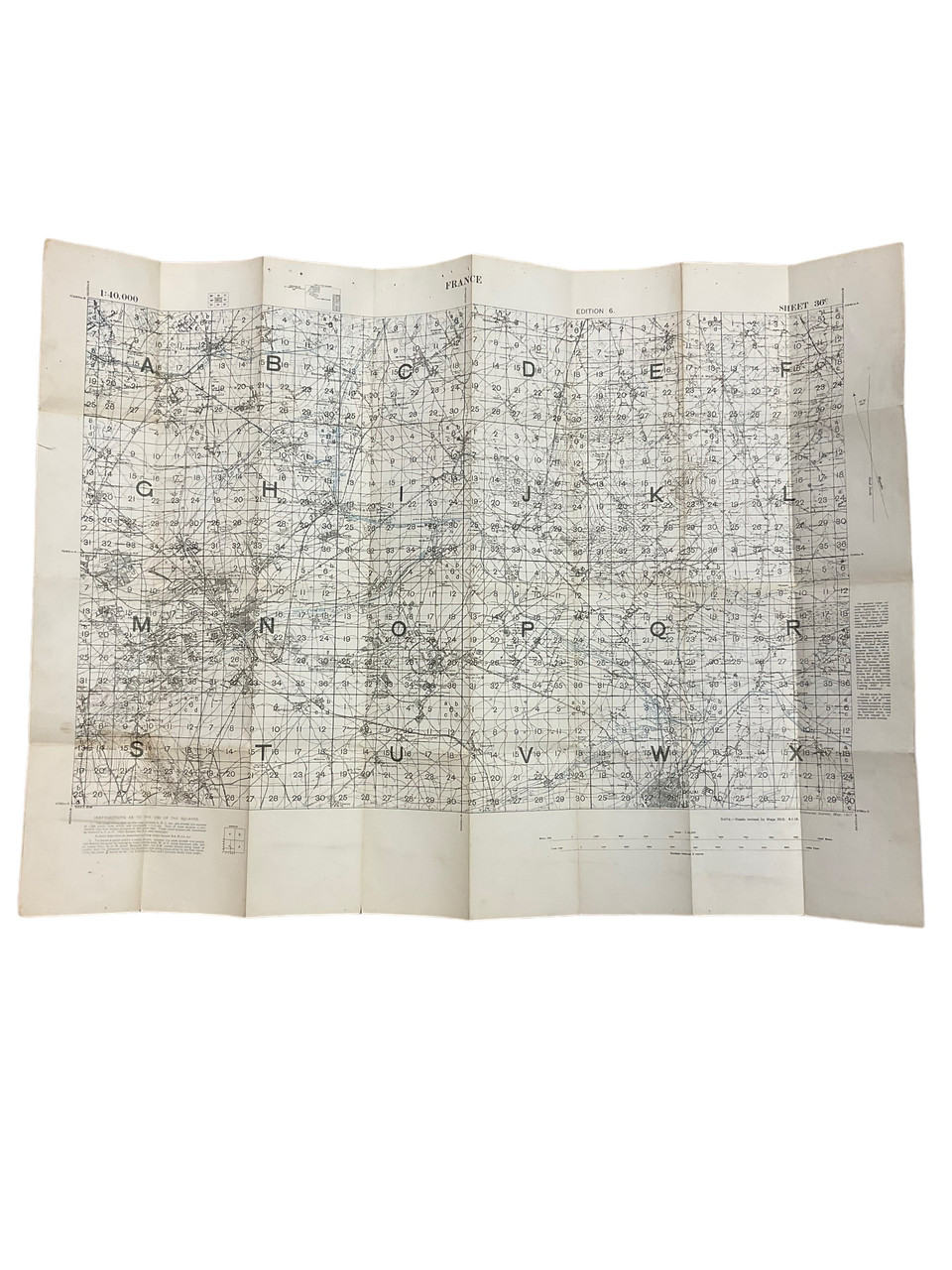 The ‘WW1 France Sheet 36c Trench Map’ is a detailed and historically significant cartographic artifact from the First World War. This meticulously crafted map captures the intricate network of trenches, fortifications, and battle lines that defined the brutal and strategic landscape of the Western Front in France. Used by military strategists and soldiers alike, the map provided crucial information on the positioning and movements of both Allied and enemy forces. It offers a fascinating glimpse into the methodologies of early 20th-century warfare and the geographical challenges faced by those engaged in the great conflict. Rich in historical value, the ‘WW1 France Sheet 36c Trench Map’ is an essential resource for historians, educators, and anyone with an interest in the complexities of World War I. The map serves as a poignant reminder of the bravery and hardship endured by countless individuals during one of the darkest periods in human history.