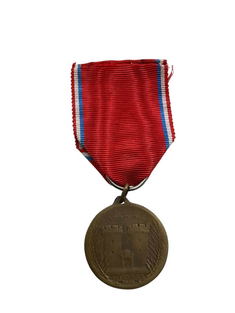 The WW1 French Verdun Full Size Medal is a historical artifact that commemorates the bravery and dedication of soldiers during the Battle of Verdun in World War 1. This full-size medal features an intricate design paying homage to the French military forces. The front side displays a relief of the Verdun city, with the iconic Porte Chaussée and the date of the battle, while the reverse side features a laurel wreath surrounding the poignant phrase “On Ne Passe Pas”, which translates to “They Shall Not Pass”. The medal is attached to a green and red ribbon, symbolizing the French national colors. This unique piece of history is not only a tribute to the courage of those who fought, but also a collector’s item that reflects the resilience and spirit of France during one of the most challenging times in its history.