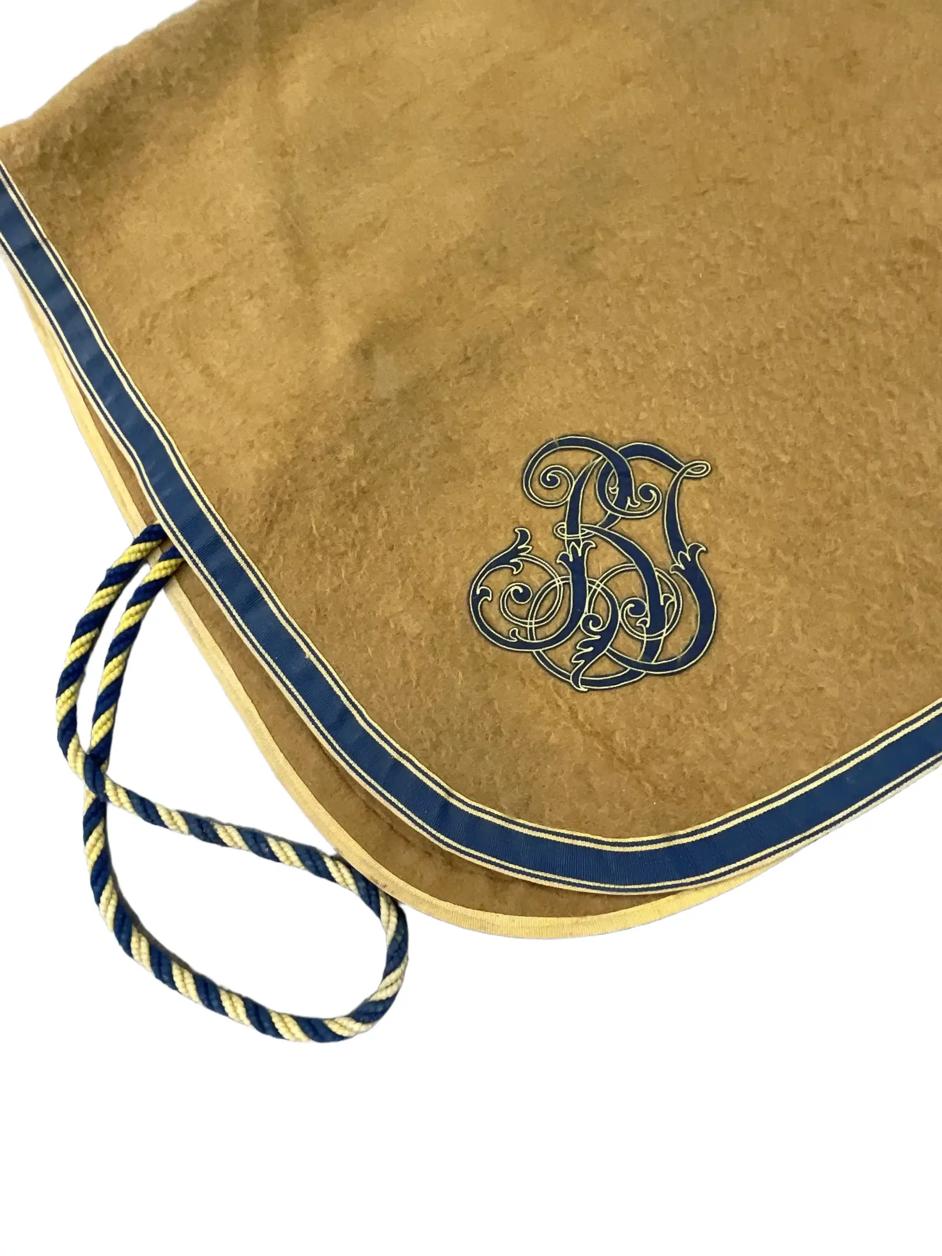 The WW1 Imperial German Bavarian Shabraque is a historical cavalry horse blanket used by Bavarian regiments during the First World War. This shabraque features the traditional scalloped edges and is made from sturdy wool cloth with colored piping along the border, signifying regimental or branch designation. The central panel typically displays the Bavarian crown and cipher, denoting both regional affiliation and loyalty to the Kingdom of Bavaria within the German Empire. Original wartime examples often show field use, including unit-specific markings and securing straps for attachment to the saddle. The shabraque played a practical role in protecting the horse’s back and the saddle while also serving as a visible identifier of unit and rank. These items are considered authentic representations of the equipment issued to Bavarian cavalry units from 1914 to 1918 and are notable for their craftsmanship and historical association with World War I mounted troops.