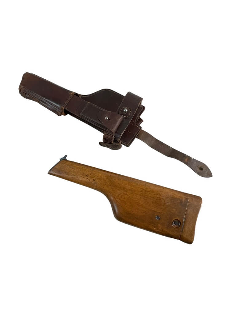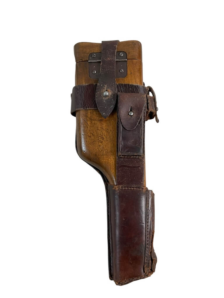 WW1 Imperial German C96 Broomhandle Mauser Wood Stock With Leather Holster Dated 1916