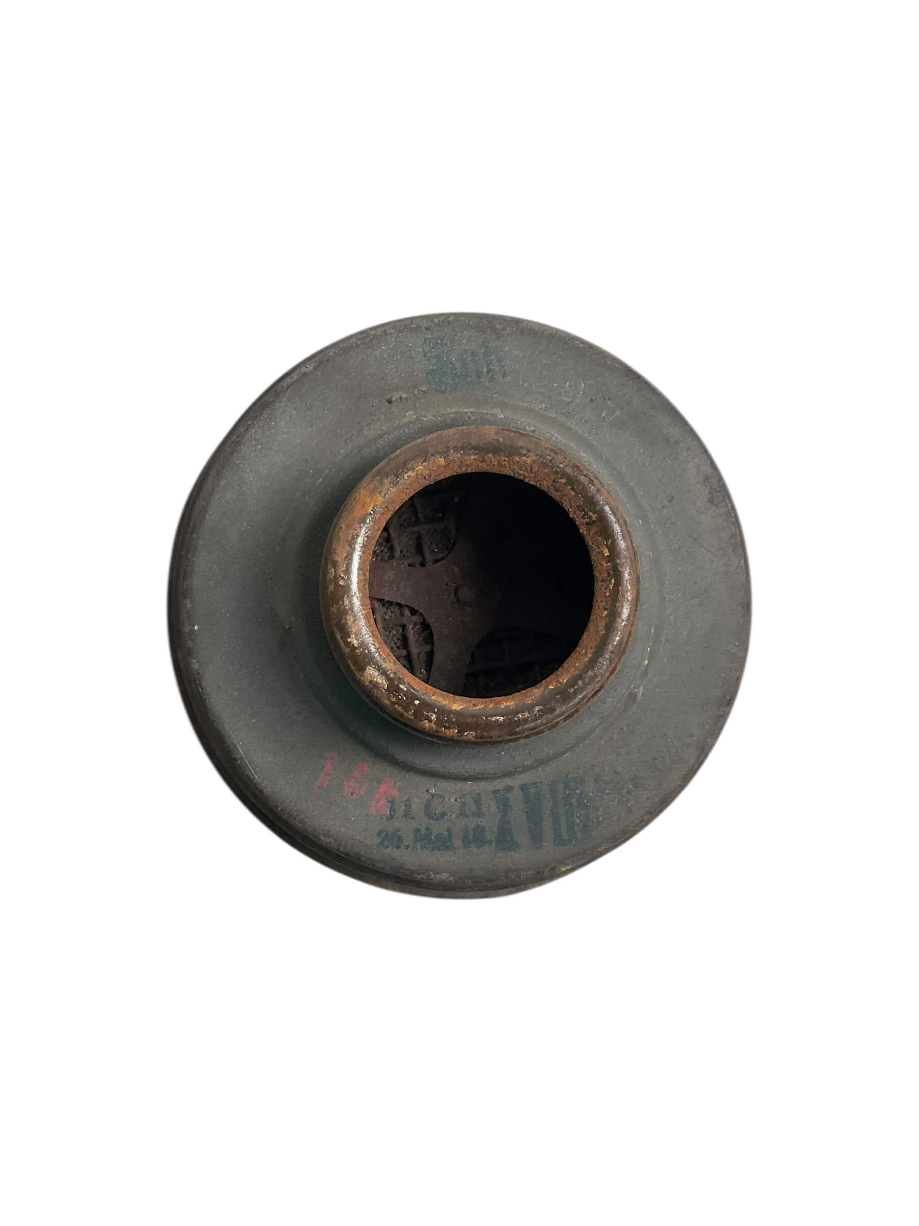 The WW1 Imperial German Gummiemaske Respirator In Tin Maker Drager is a historic artifact used in World War I. The Gummiemaske was a gas mask widely utilized by the Imperial German Army to protect against chemical warfare. Manufactured by the reputable Drager company, the mask is composed of rubber (hence the term ‘Gummiemaske’) and is housed in a durable metal tin for storage and transportation. Key features include large eye holes for visibility and a front facing filter for breathing. This type of respirator was essential to troops on the Western Front especially during the latter years of the conflict when poison gas warfare was most prevalent. This particular model gives an accurate impression of the challenges faced by soldiers during this period. It should be noted that this is an original piece and not a reproduction, adding significant value for collectors and historians alike.