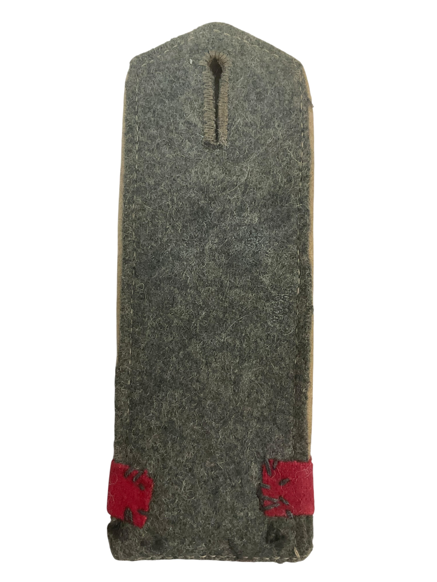The WW1 Imperial German Infantry Regiment 94 Musketier Shoulder Board Insignia is a single military uniform accessory used by enlisted personnel during the First World War. This specific shoulder board was worn by Musketeers—an enlisted rank within the Imperial German Army—serving in Infantry Regiment 94. The board typically features a fabric construction, often in a grey or field green base cloth, with red piping or numerals denoting the regiment number “94.” Attachments such as these were worn on the tunic’s shoulder to indicate the wearer’s regiment and rank, following standard German military dress regulations of the era. The design reflects the practical and hierarchical needs of early 20th-century military organization. Items of this type are often studied for their material composition and insignia style, which can vary depending on the period of issue and the manufacturer. Such insignia represent both the identity and structure of Imperial German Army units during World War I.