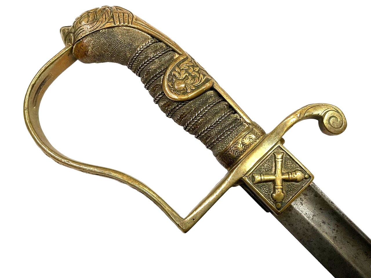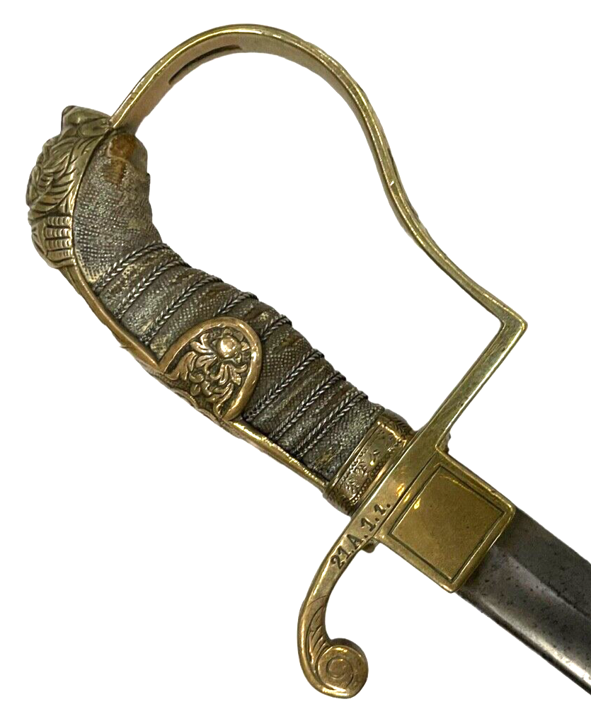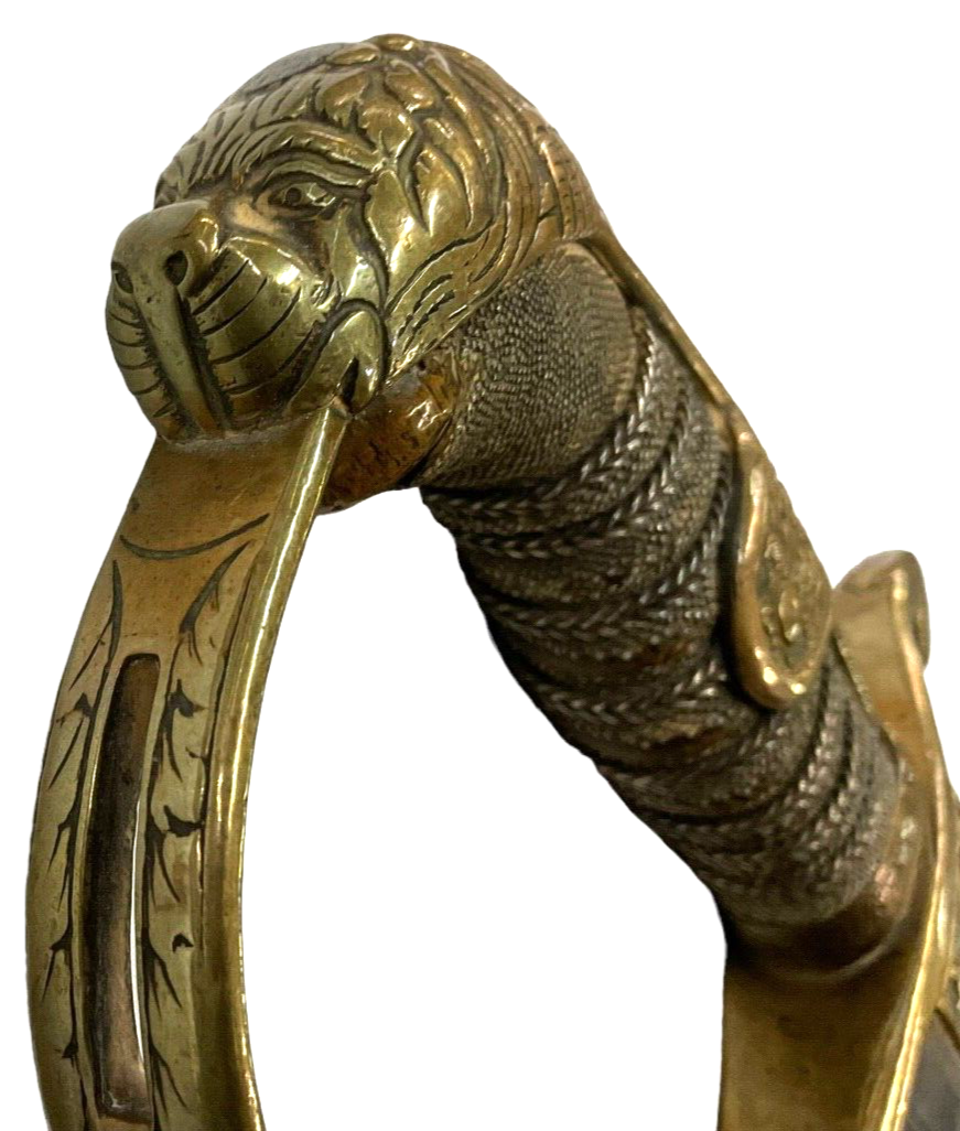 WW1 Imperial German Jawless Lion Head Artillery Officers Sword & Scabbard with Regimental Mark.