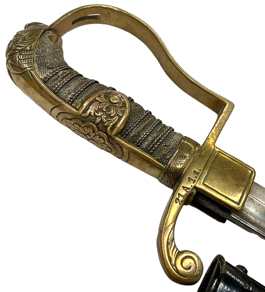 The WW1 Imperial German Jawless Lion Head Artillery Officers Sword & Scabbard Reg Mk is a remarkable piece of military history, reflecting the craftsmanship and ceremonial significance of early 20th-century weaponry. This distinguished sword was utilized by German artillery officers during the First World War, symbolizing both prestige and authority within the Imperial German Army. The sword features a unique jawless lion head on the pommel, showcasing intricate detailing and solid construction. The accompanying scabbard is equally impressive, providing protection and a polished appearance for the blade. Adding to its historical value, the sword bears regimental markings, providing a direct link to its original military unit. This artifact not only serves as a tangible connection to the past but also as a testament to the artistry and traditions of German military heritage. Whether for a collector or a history enthusiast, this sword and scabbard set is an invaluable and fascinating piece.