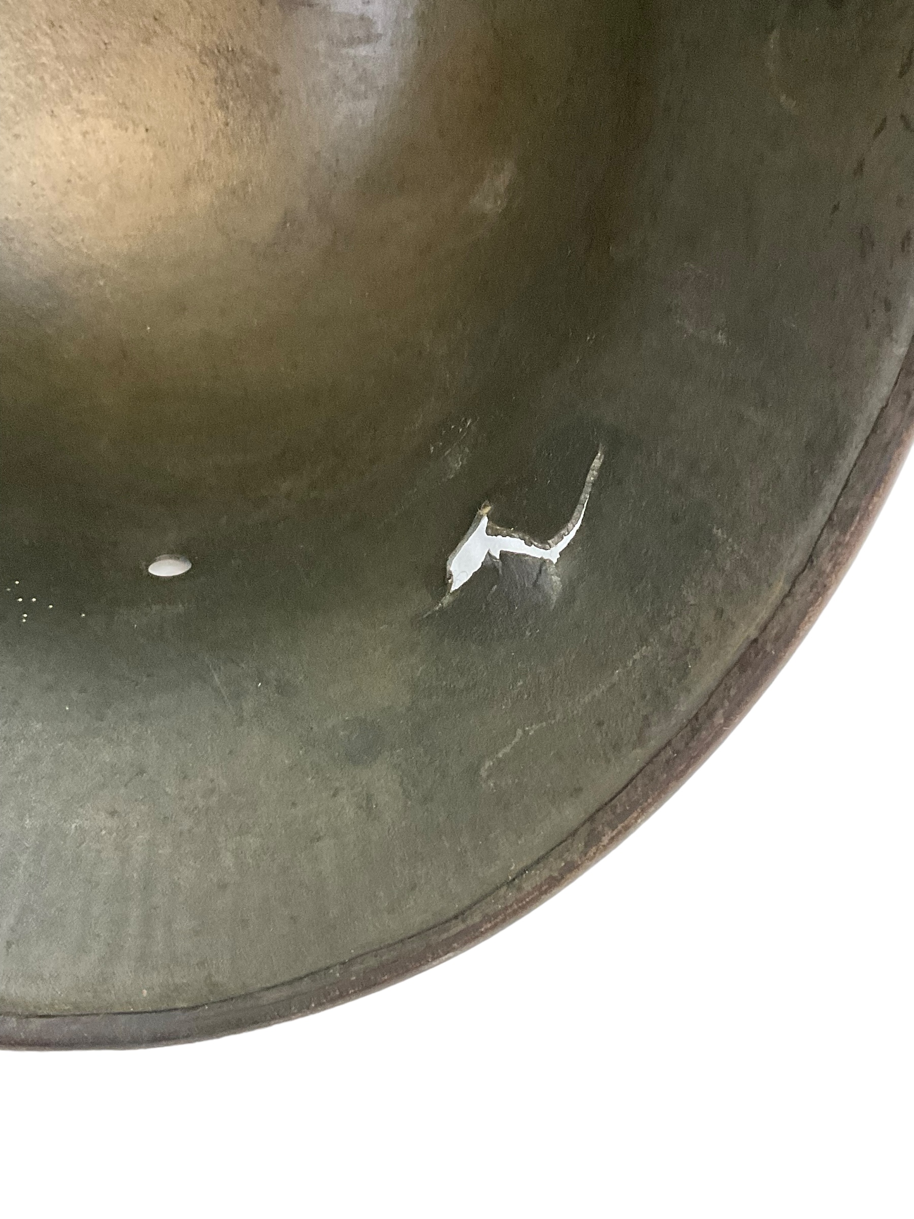 The WW1 Imperial German M16 Steel Helmet Battle Damaged George Jarrett Steel Pier represents a poignant artifact from the First World War. This M16 steel helmet, once worn by a German soldier, showcases the brutal realities of trench warfare with visible battle damage that tells a silent but powerful story of the past. The helmet’s sturdy design was revolutionary during its time, offering head protection against shrapnel and debris. Now, it stands as a somber reminder of the sacrifices made during the Great War. The helmet is authenticated and notably tied to George Jarrett, a name whose historical significance adds depth to this piece, hinting at the personal stories intertwined with broader military history. ‘Steel Pier’ might refer to either an artifact collection location or a symbolic resonance, linking the steel helmet’s strength to the resilience of those who wore it. This helmet is not only a collector’s item but a testament to human endurance and history.