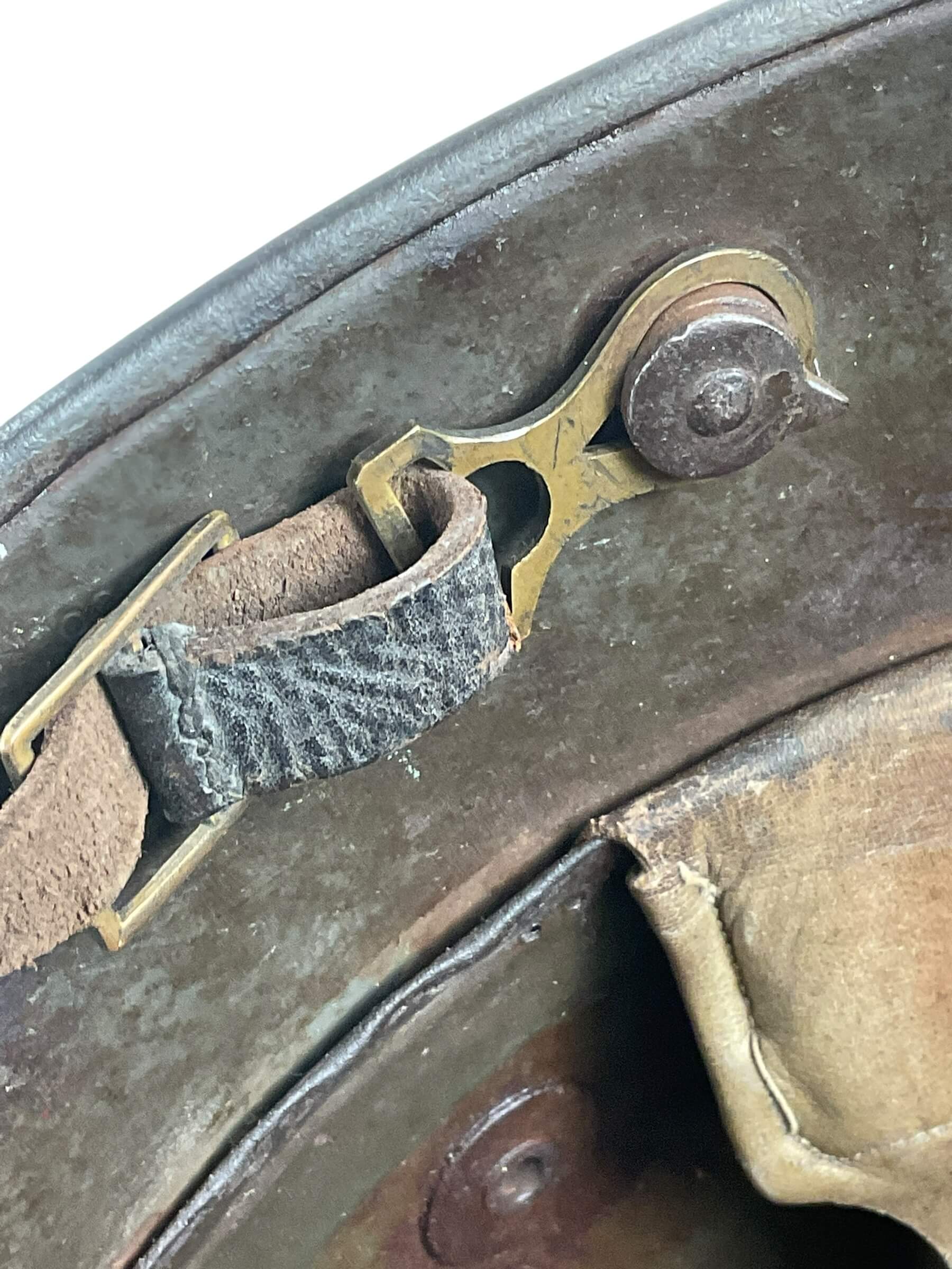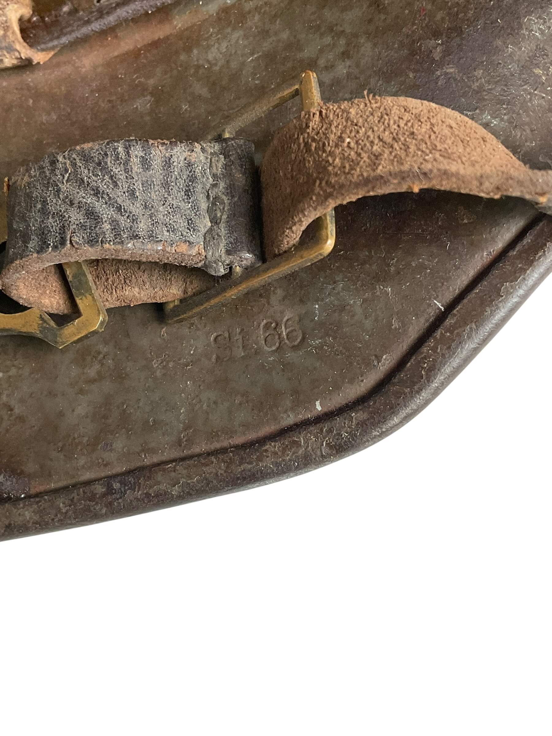 The ‘WW1 Imperial German M17 Steel Helmet SE66’ is an authentic piece of military history, offering you an opportunity to own a tangible part of the Great War. This helmet, made of hardened steel, was used by German soldiers during the First World War and bears the model number M17; SE66 indicates the manufacturer and the shell size. The M17 design includes a reinforced brow plate and a leather liner for comfort, reflecting the harsh conditions of trench warfare. The helmet’s exterior showcases a patina developed over a century, adding character and authenticity. It stands as a testament to the resilience and fortitude of the soldiers who wore it. This artifact is more than a collector’s item; it encapsulates a pivotal moment in world history, making it a unique and valuable addition to any historical collection.