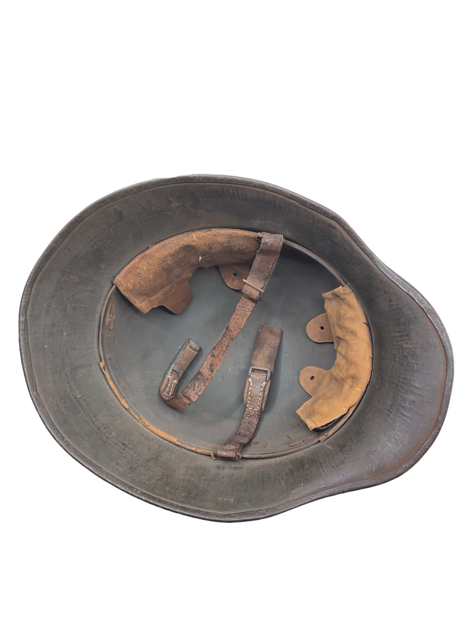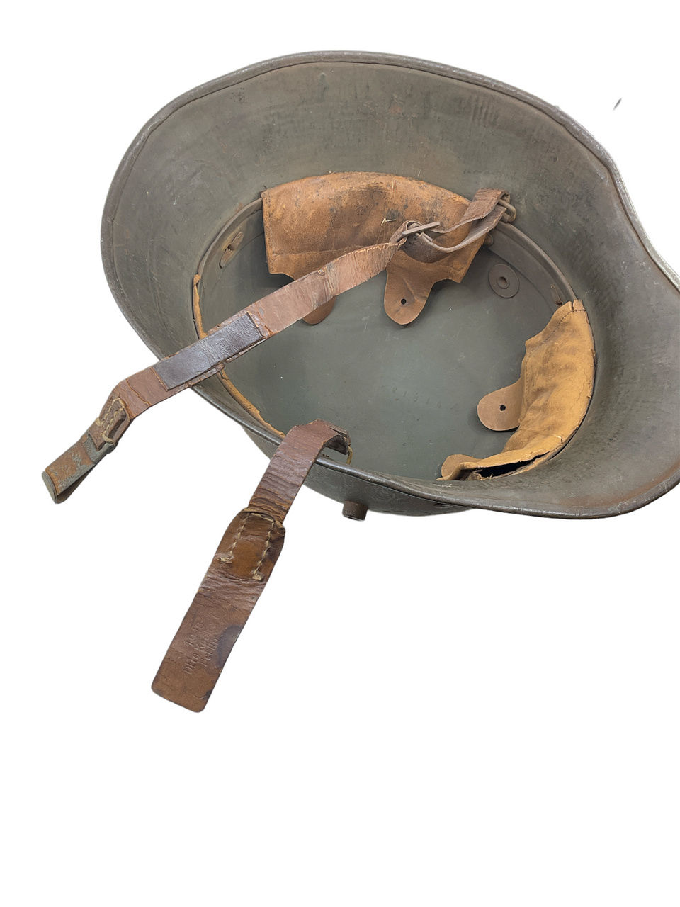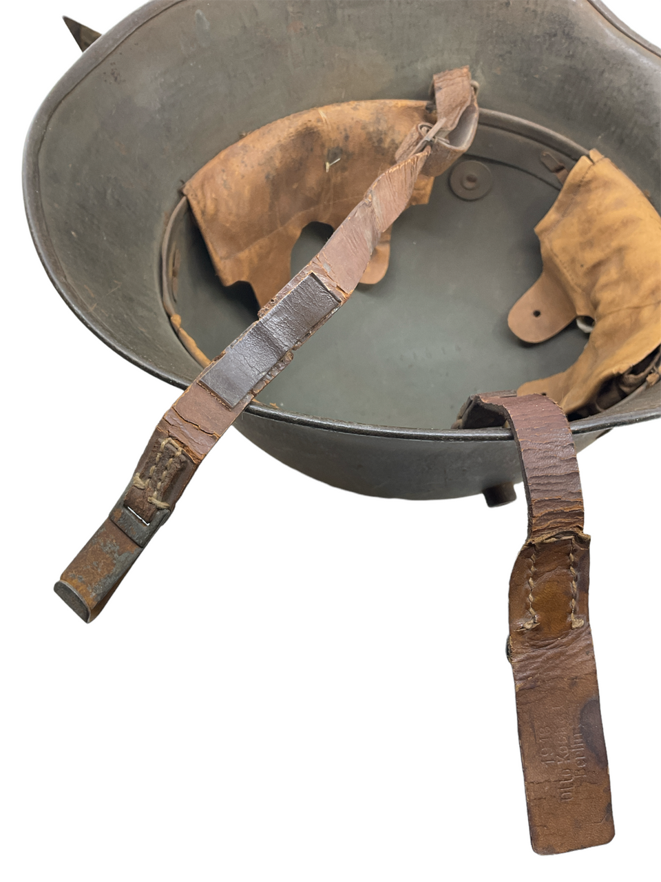 This WW1 Imperial German M18 Steel Combat Helmet is a piece of military equipment from the First World War. This helmet is maker and size marked TJ 66. Despite the passage of time, the helmet has retained much of its original form, though one of its liner pads is missing, a common occurrence in vintage military collectibles.