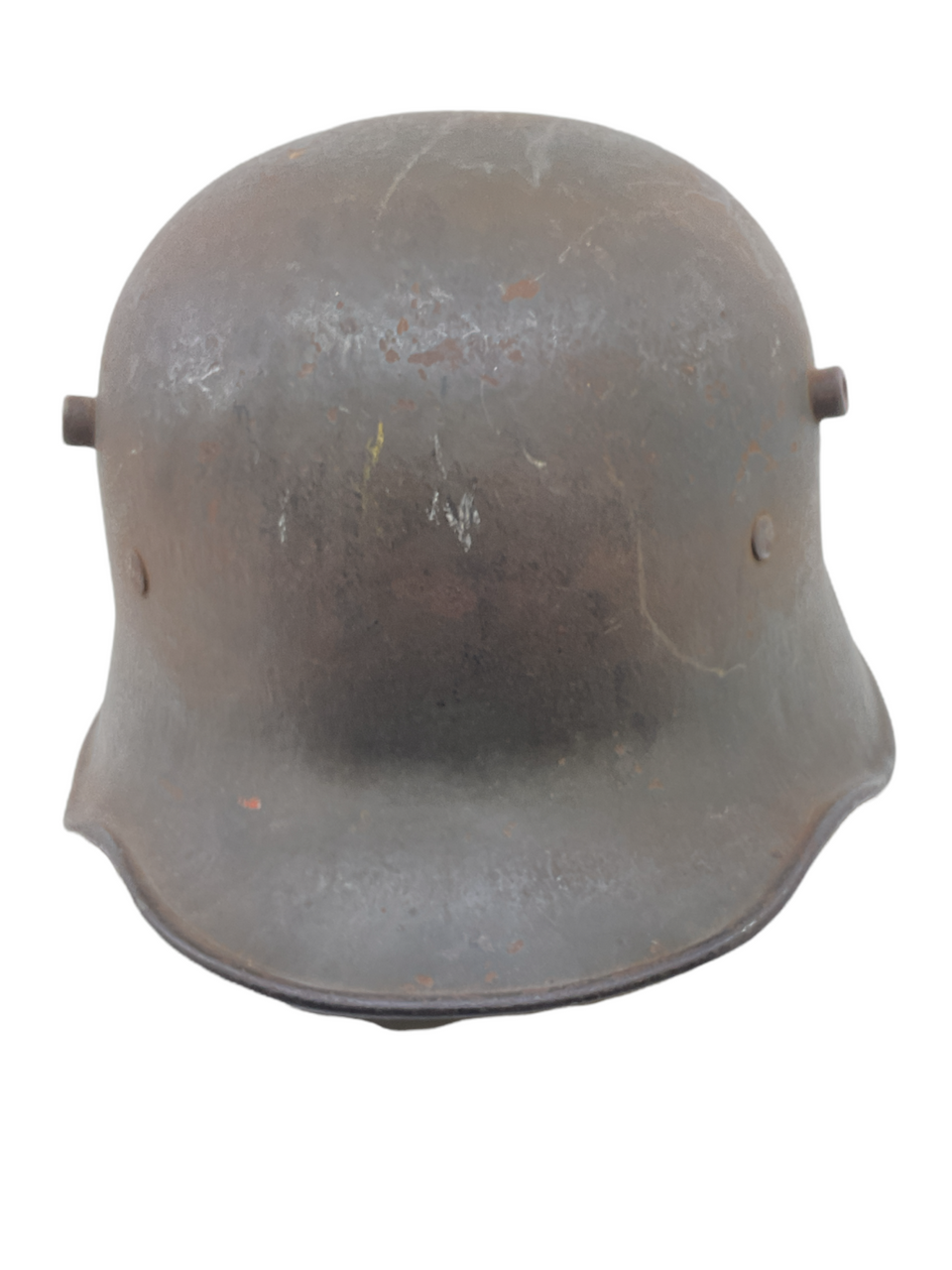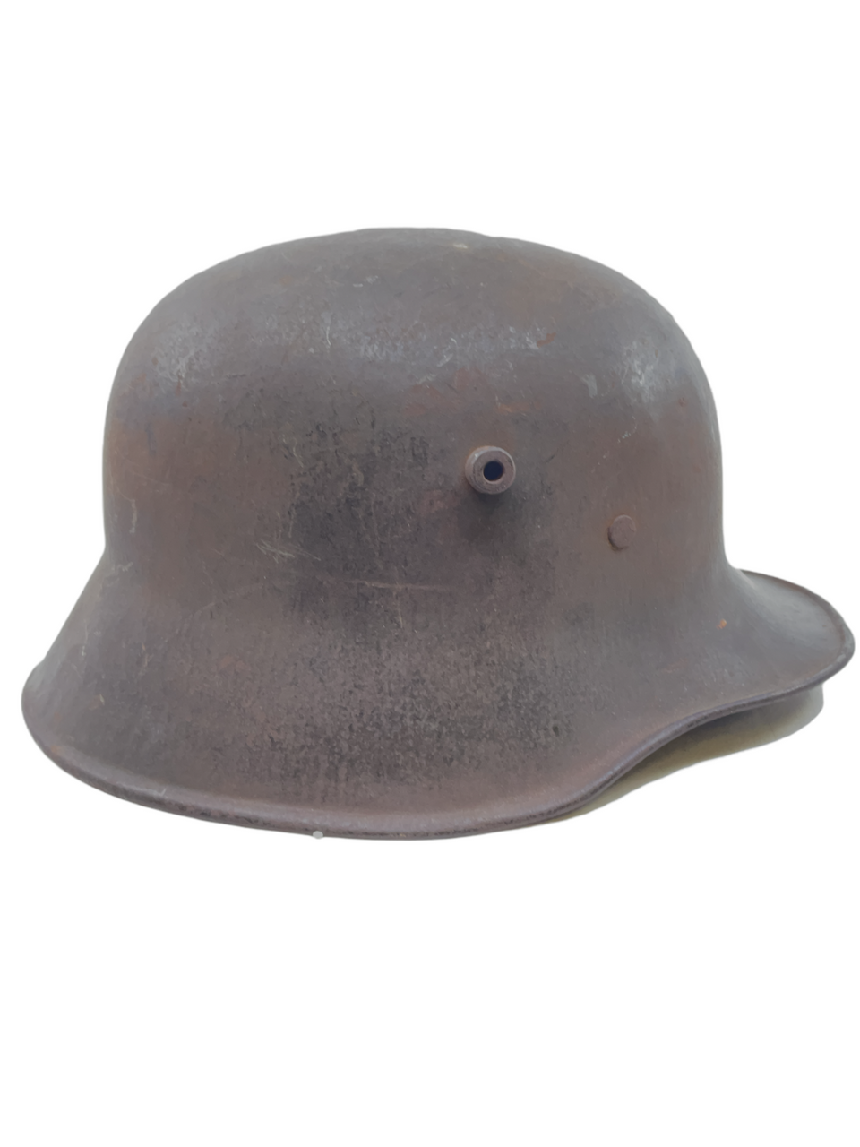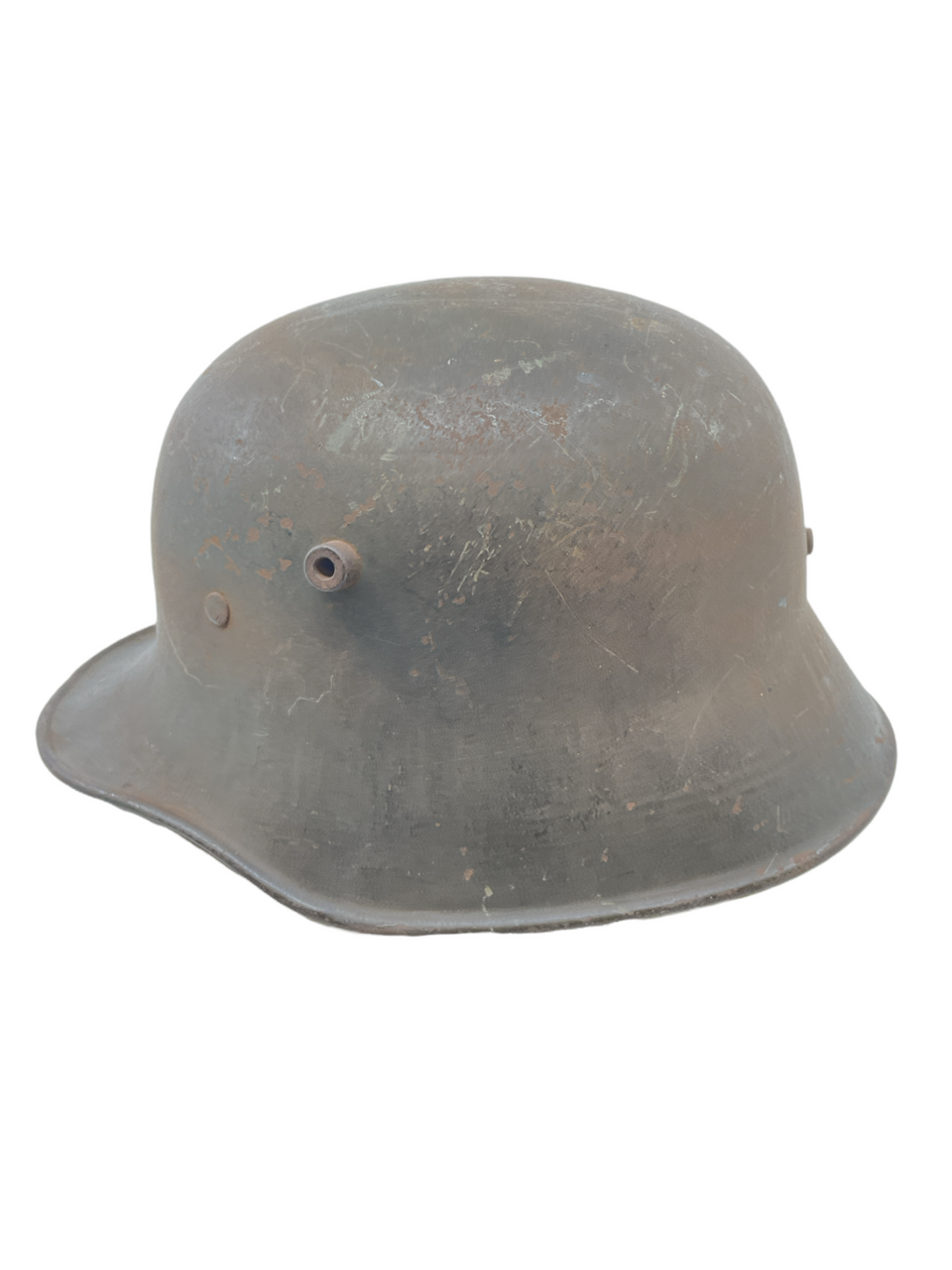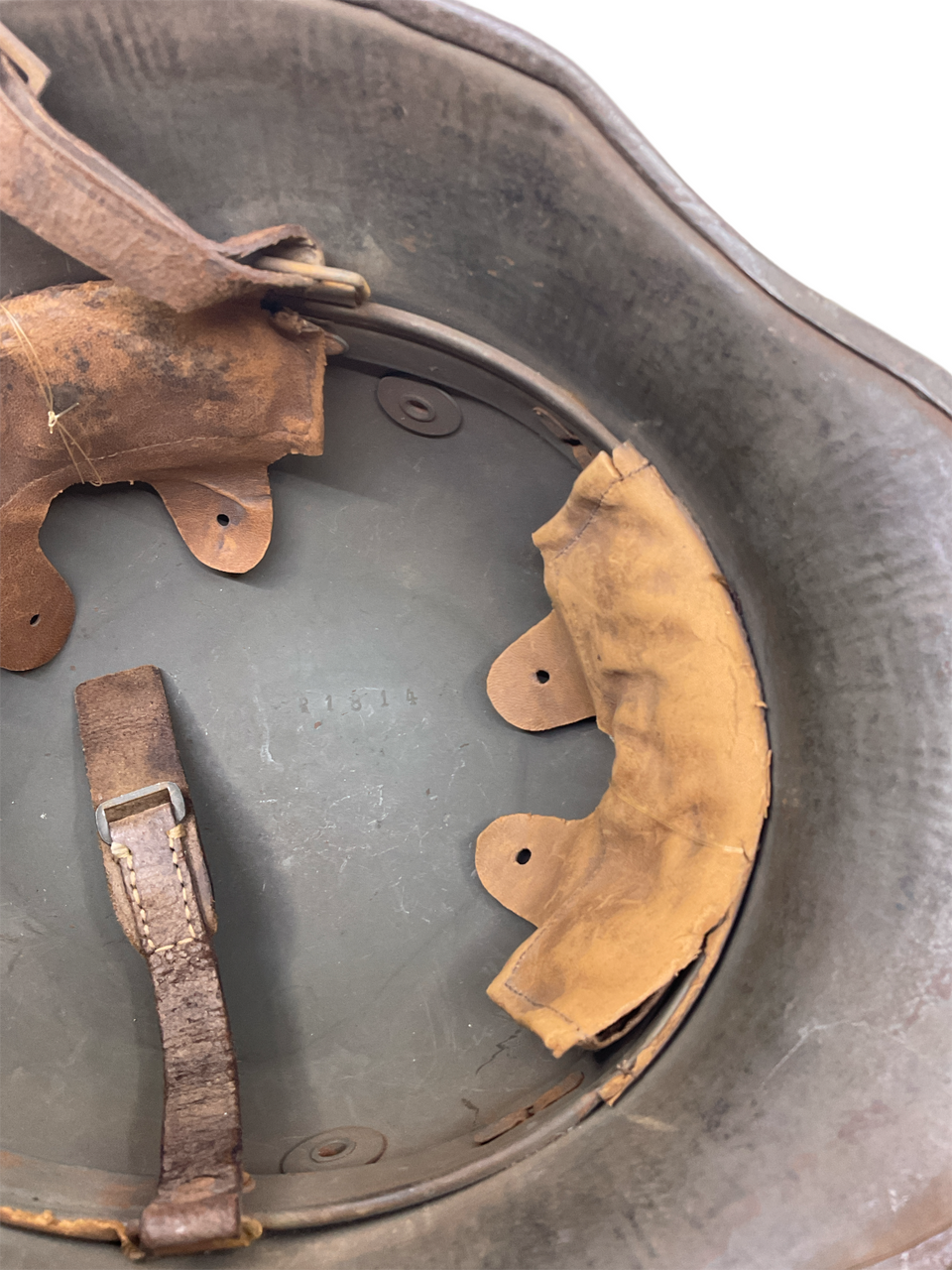 This WW1 Imperial German M18 Steel Combat Helmet is a piece of military equipment from the First World War. This helmet is maker and size marked TJ 66. Despite the passage of time, the helmet has retained much of its original form, though one of its liner pads is missing, a common occurrence in vintage military collectibles.