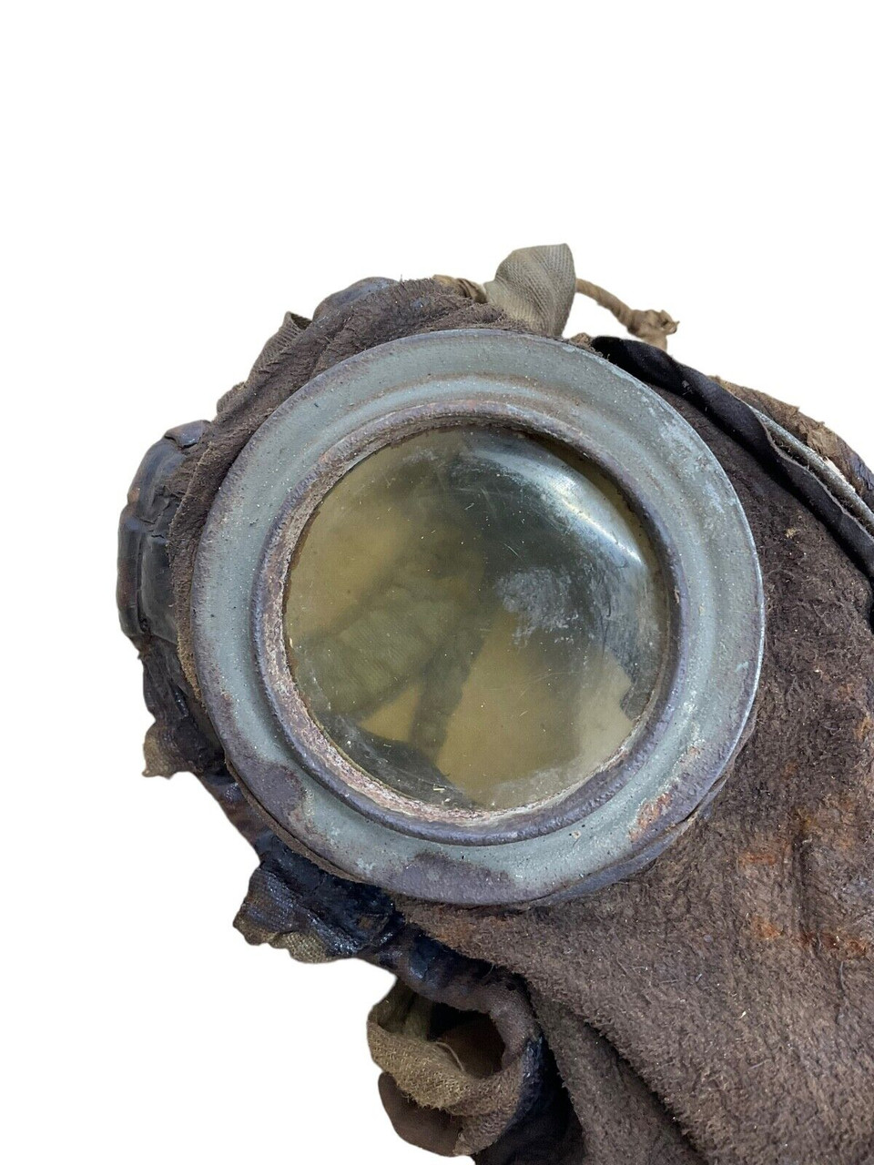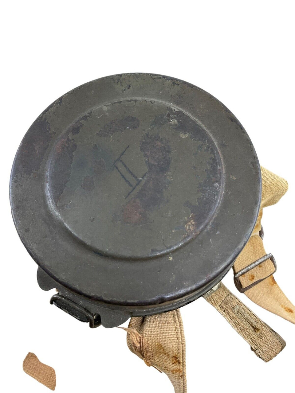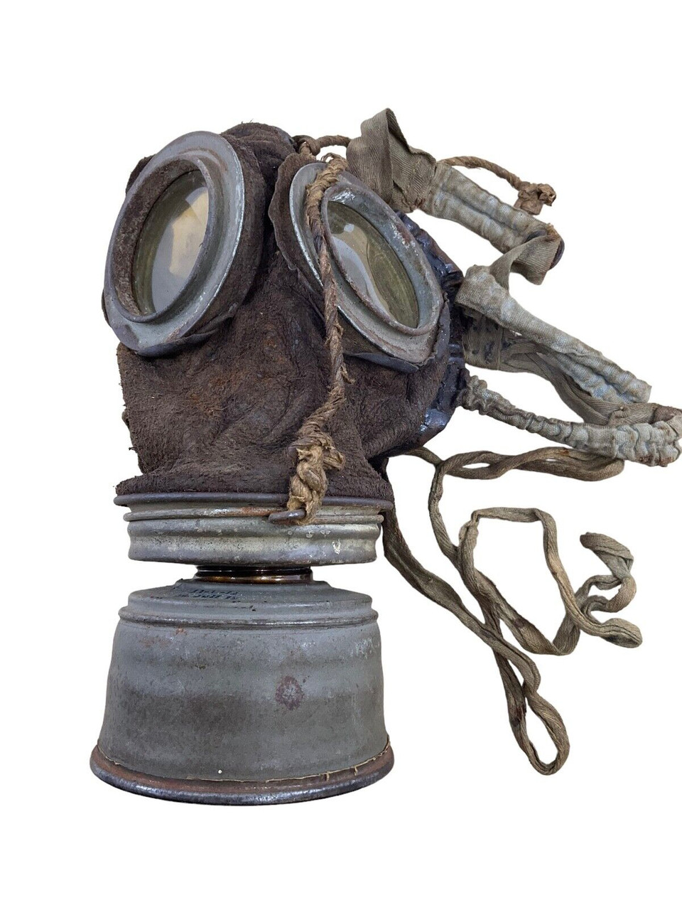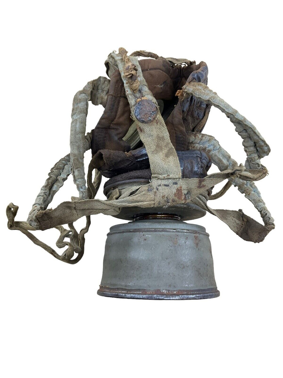 This historical artifact is a 1918-dated WW1 Imperial German gas mask, complete with its original carrying tin, straps, and an additional spare lens. A vital piece of equipment for soldiers in the trenches, this mask offers a rare glimpse into the life and conditions faced by German troops during the First World War. The carrying tin is designed to protect the mask from damage and ensure quick access during gas attacks. The presence of the spare lens highlights the meticulous care soldiers took to maintain their gear in dire circumstances. This well-preserved ensemble offers collectors and history enthusiasts a tangible connection to the past, embodying the technological advancements and the harsh realities of warfare from over a century ago.