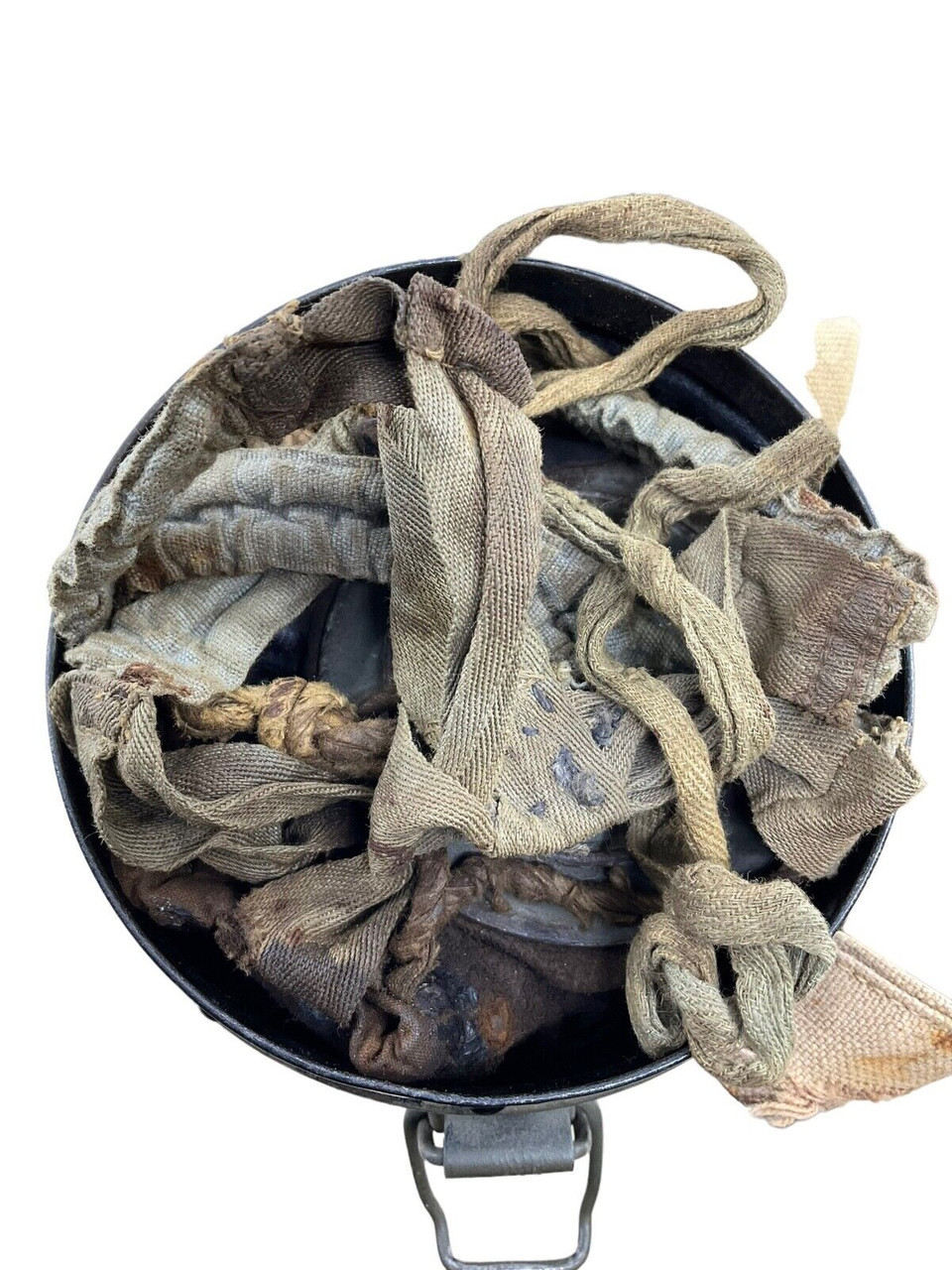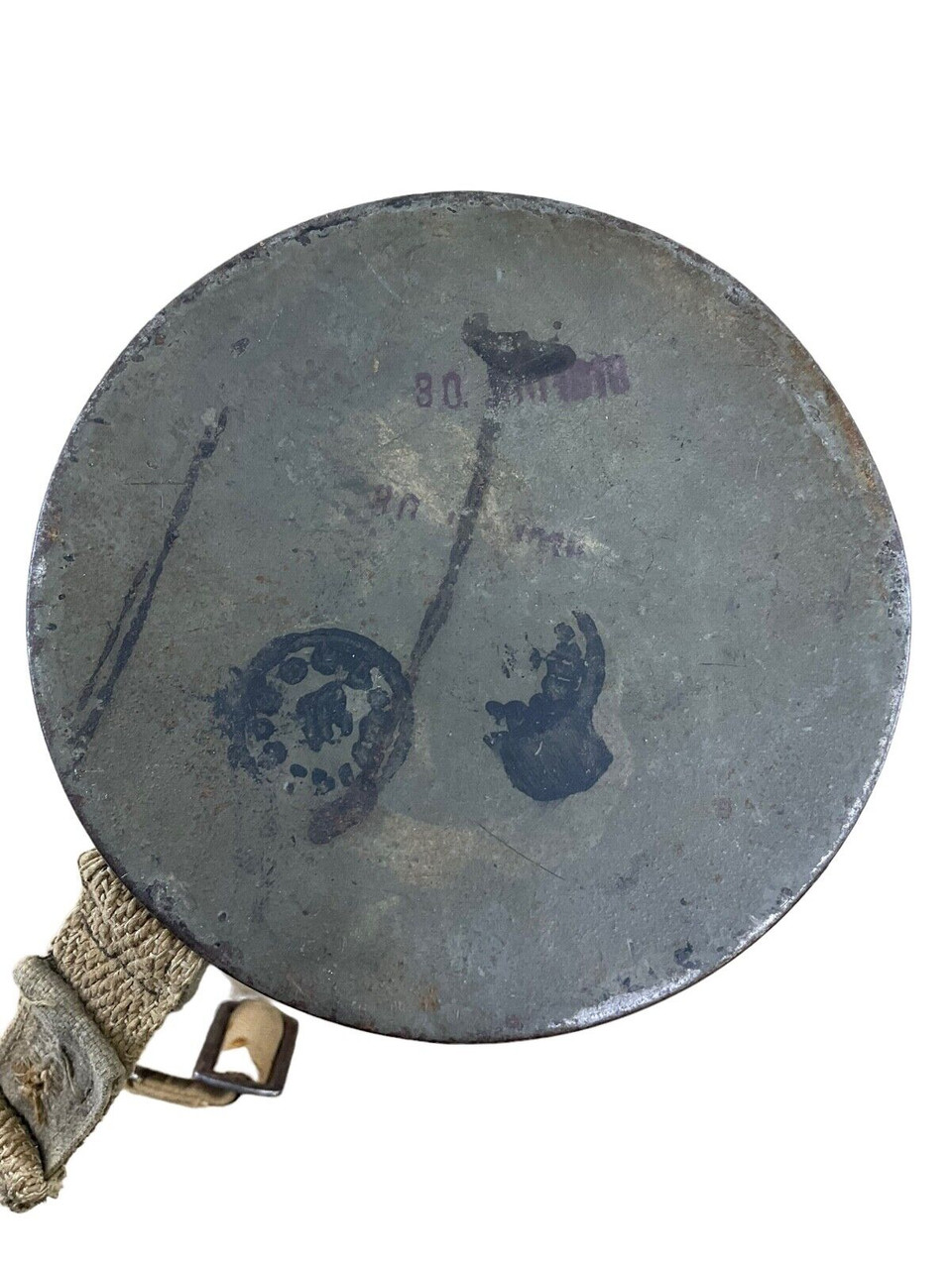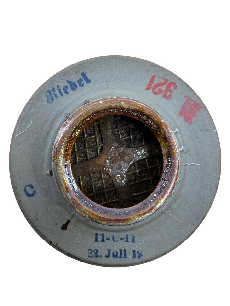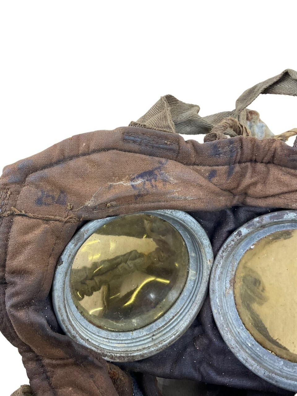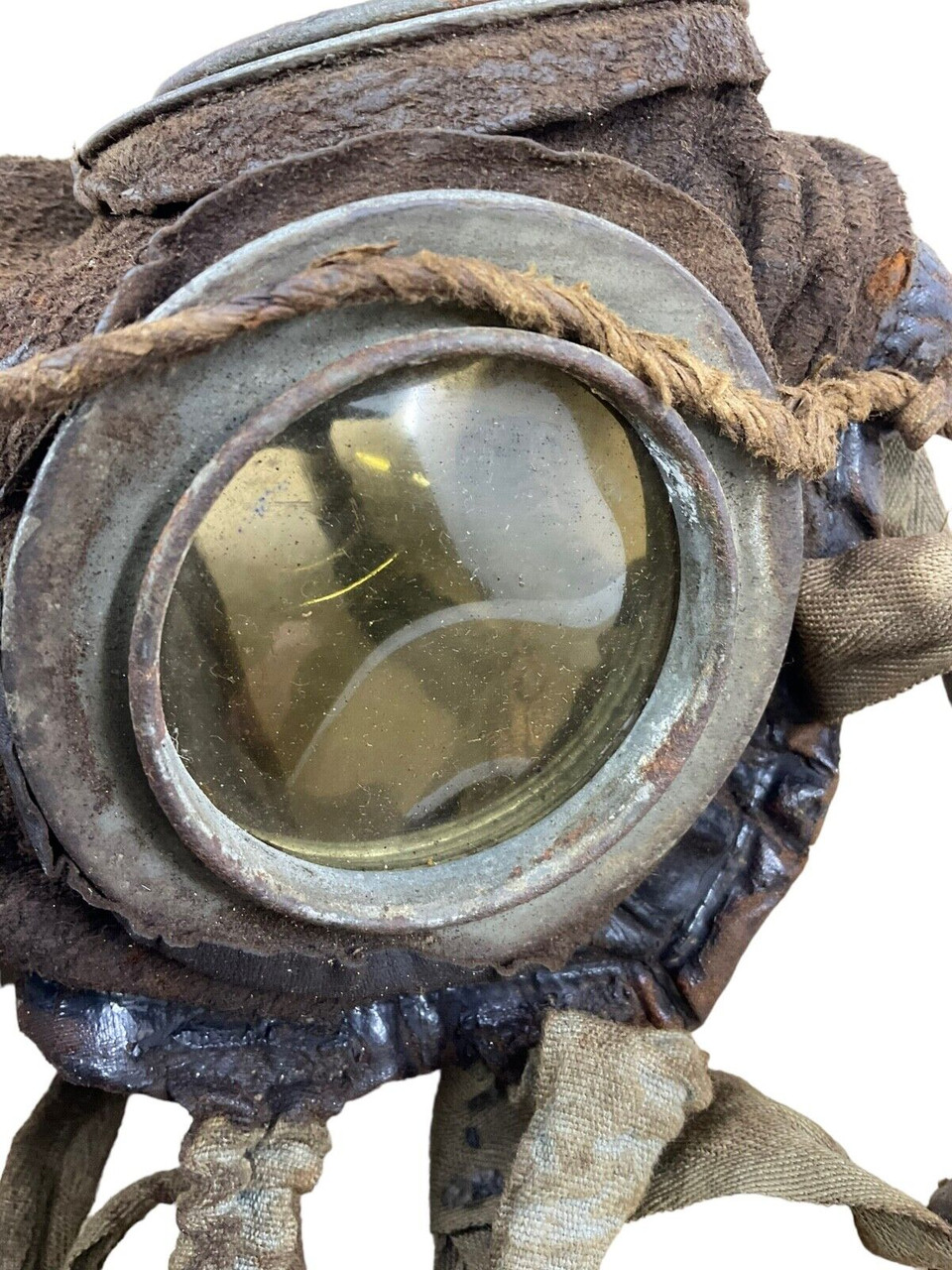 This historical artifact is a 1918-dated WW1 Imperial German gas mask, complete with its original carrying tin, straps, and an additional spare lens. A vital piece of equipment for soldiers in the trenches, this mask offers a rare glimpse into the life and conditions faced by German troops during the First World War. The carrying tin is designed to protect the mask from damage and ensure quick access during gas attacks. The presence of the spare lens highlights the meticulous care soldiers took to maintain their gear in dire circumstances. This well-preserved ensemble offers collectors and history enthusiasts a tangible connection to the past, embodying the technological advancements and the harsh realities of warfare from over a century ago.