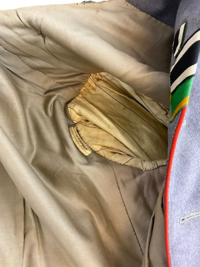 This WW1 Imperial German Medical Officers Litewka Dress Uniform is a fascinating, unnamed piece of military history. The uniform showcases the distinctive elements of early 20th-century German military attire, crafted with meticulous attention to detail and quality. The Litewka dress jacket, characterized by its elegant simplicity and functional design, was an essential part of an officer’s wardrobe. It features the traditional insignia and markings associated with medical officers, reflecting their vital role on the battlefields of World War I. The uniform is a testament to the highly disciplined and professional nature of the Imperial German Army’s medical corps. Despite its age, the Litewka remains an impressive example of historical military fashion, offering a unique glimpse into the past. Ideal for collectors, historians, and enthusiasts, this dress uniform stands as a tribute to the medical officers who served during one of the most tumultuous periods in world history.