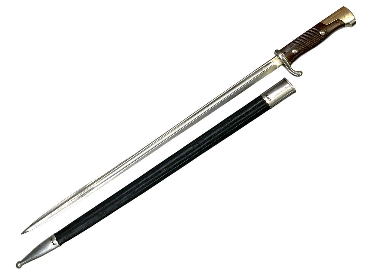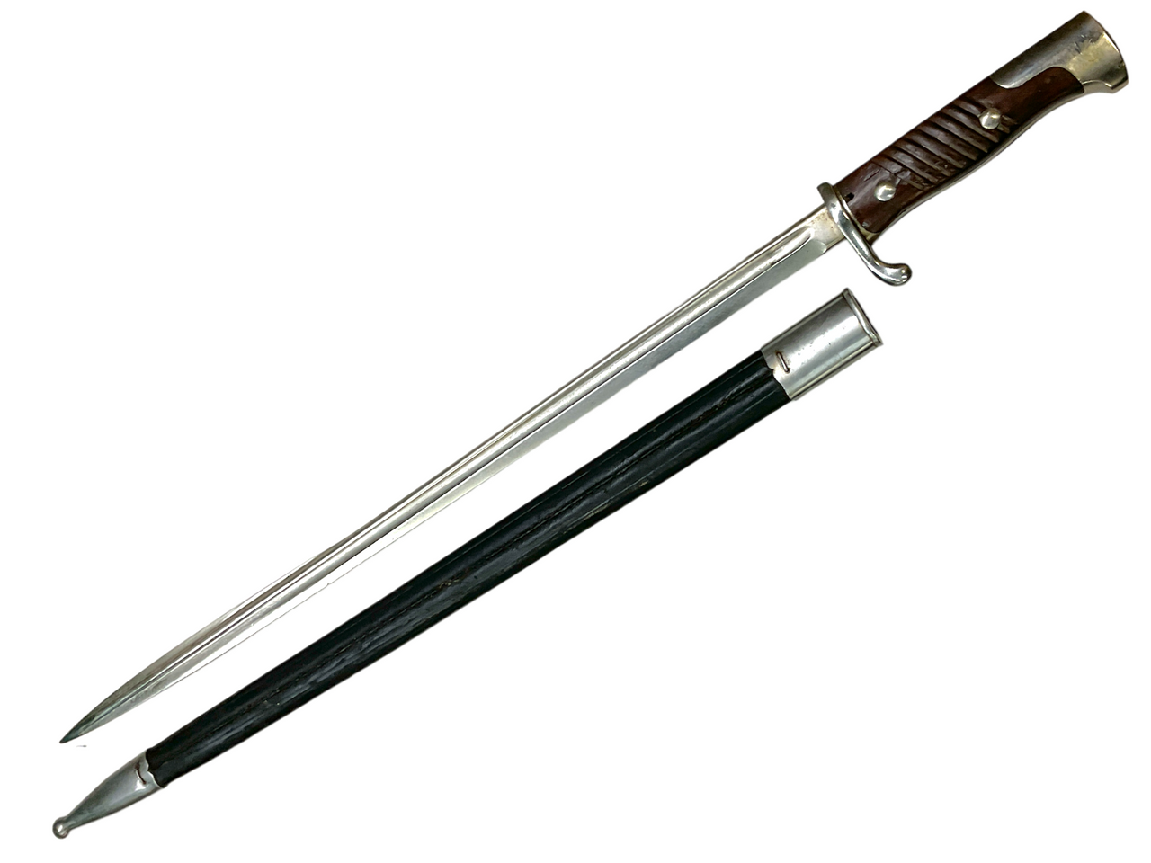 WW1 Imperial German Model 1898 Peruvian Pipe Back Bayonet and Leather Scabbard