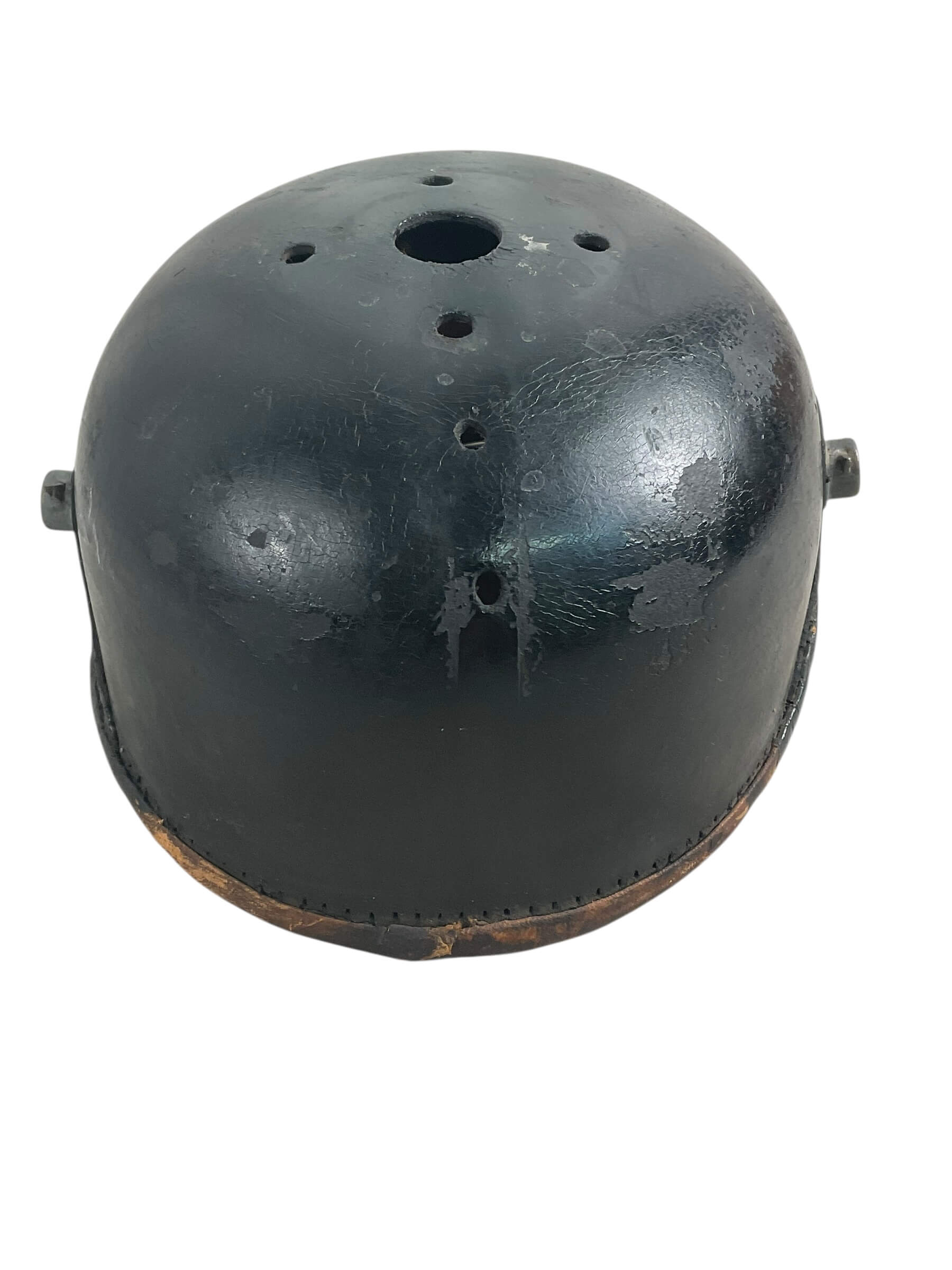The WW1 Imperial German Pickelhaube Helmet Shell is an authentic piece of military history from the era of World War I. As the standard issue helmet for most German Imperial forces from the mid-19th century to the end of World War I, the Pickelhaube is instantly recognizable for its pointed spike (or ‘pickel’) on top. Crafted from thick, durable leather, this helmet shell has a glossy, black finish that is typical of original Pickelhaube helmets. The model does not include the iconic metal front plate, enabling customization in keeping with specific unit or regimental insignia. Importantly, the Pickelhaube Helmet Shell represents a landmark in military fashion design, having been broadly imitated by other nations. As a standalone artifact or a component of a broader collection, it offers direct insight into the equipment used in one of history’s most significant periods. Please note that the product is the helmet shell only, additional hardware or insignia are not included.