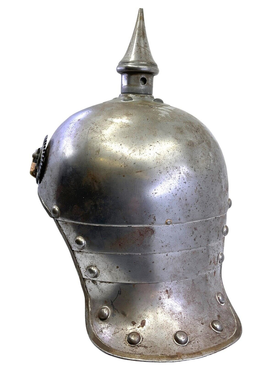 The “WW1 Imperial German Prussian Cavalry Steel Helmet Dated 1916 CE Junker Complete” is a fascinating and authentic piece of military history. This helmet, originating from 1916 during World War I, exemplifies the craftsmanship and design of Imperial Germany’s Prussian cavalry. Despite some minor imperfections, including a missing eagle head and cross on the orb, the helmet retains its historical integrity and allure. These elements can be easily replaced to restore its full grandeur. Sourced directly from the family of a veteran, its authenticity is undeniable, making it a valuable artifact for collectors and historians alike. This 120% original piece not only represents the bravery and tradition of the Prussian cavalry but also serves as a tangible connection to the past, reflecting the tumultuous era of the Great War.