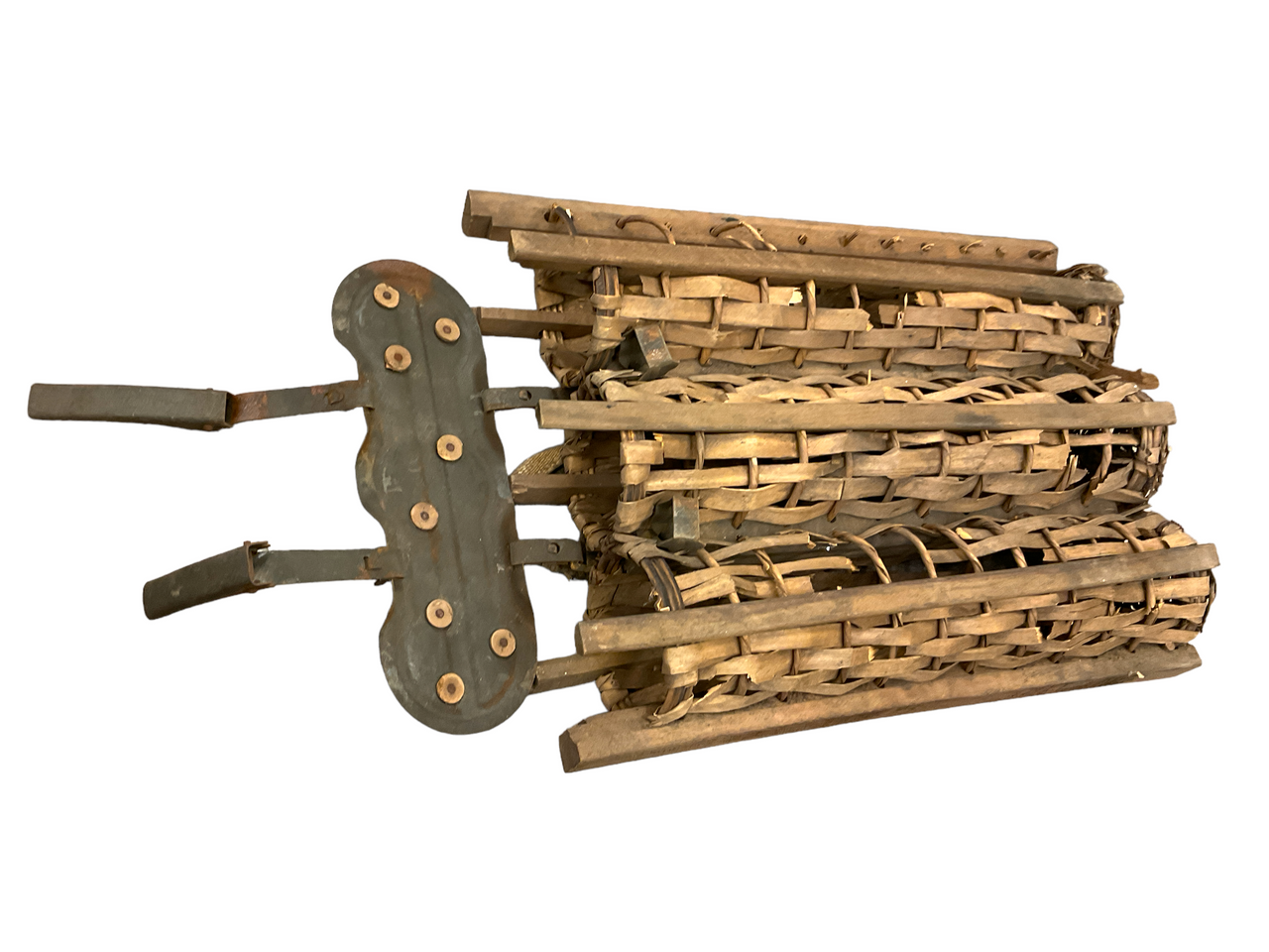 The WW1 Imperial German Wicker Shell Carrier is a remarkable artifact from the early 20th century, reflecting the innovative logistics solutions employed during the First World War. Measuring 20 x 15 inches, these carriers were meticulously crafted from durable wicker, designed to transport artillery shells safely and efficiently to the battlefield. Despite the rigors of wartime use, the carrier has largely retained its structure, though it does exhibit some damage on one side, a testament to its historical authenticity and the harsh conditions of war. The weave and construction of the piece highlight the resourcefulness and craftsmanship of the era. This carrier not only served a crucial practical function but also now stands as an evocative piece of military history, offering insights into the daily operations and material culture of the Imperial German forces during WW1. Its presence in a collection is sure to provoke reflection and discussion on the complexities of wartime logistics.