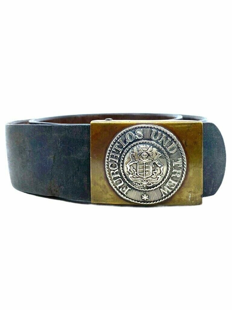The ‘WW1 Imperial German Wurttemberg 124th Regiment Unit Marked Belt and Buckle’ is a remarkable artifact from the First World War, reflecting the history and heritage of the Imperial German forces. This belt and buckle set, uniquely marked with the insignia of the Wurttemberg 124th Regiment, exhibits authenticity and attention to detail characteristic of military gear from that era. Made from durable materials to withstand the rigors of war, the belt and buckle not only served as functional pieces of a soldier’s uniform but also as symbols of their allegiance and honor. Collectors and historians alike value such items for their connection to the soldiers who wore them and the stories they carry from the tumultuous times of WW1. The meticulous craftsmanship and the regiment-specific marking make this belt and buckle a significant and highly desirable addition to any collection of military memorabilia.