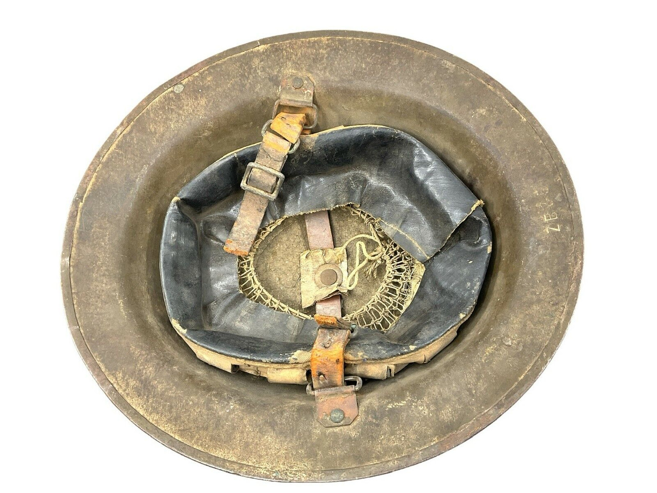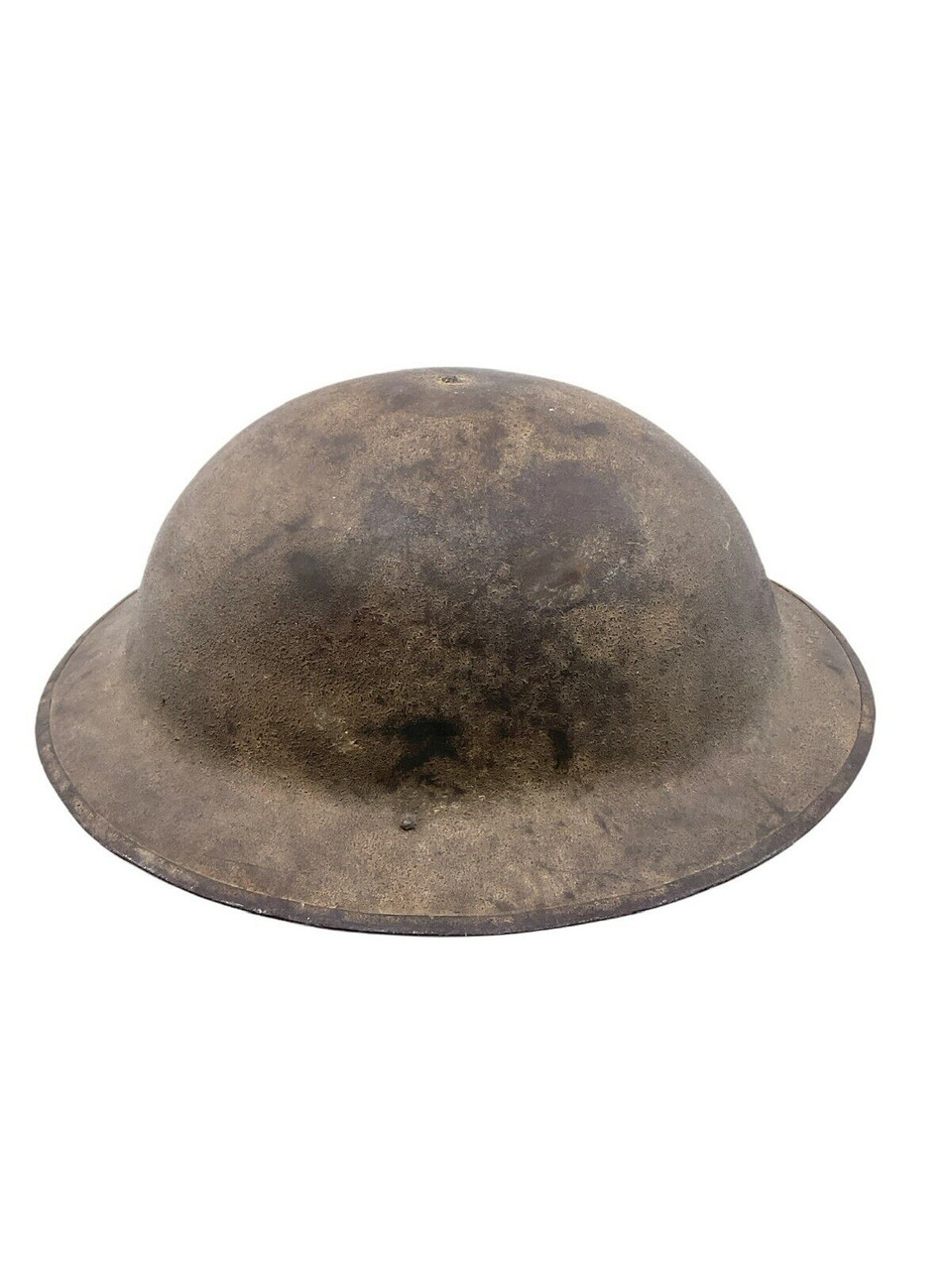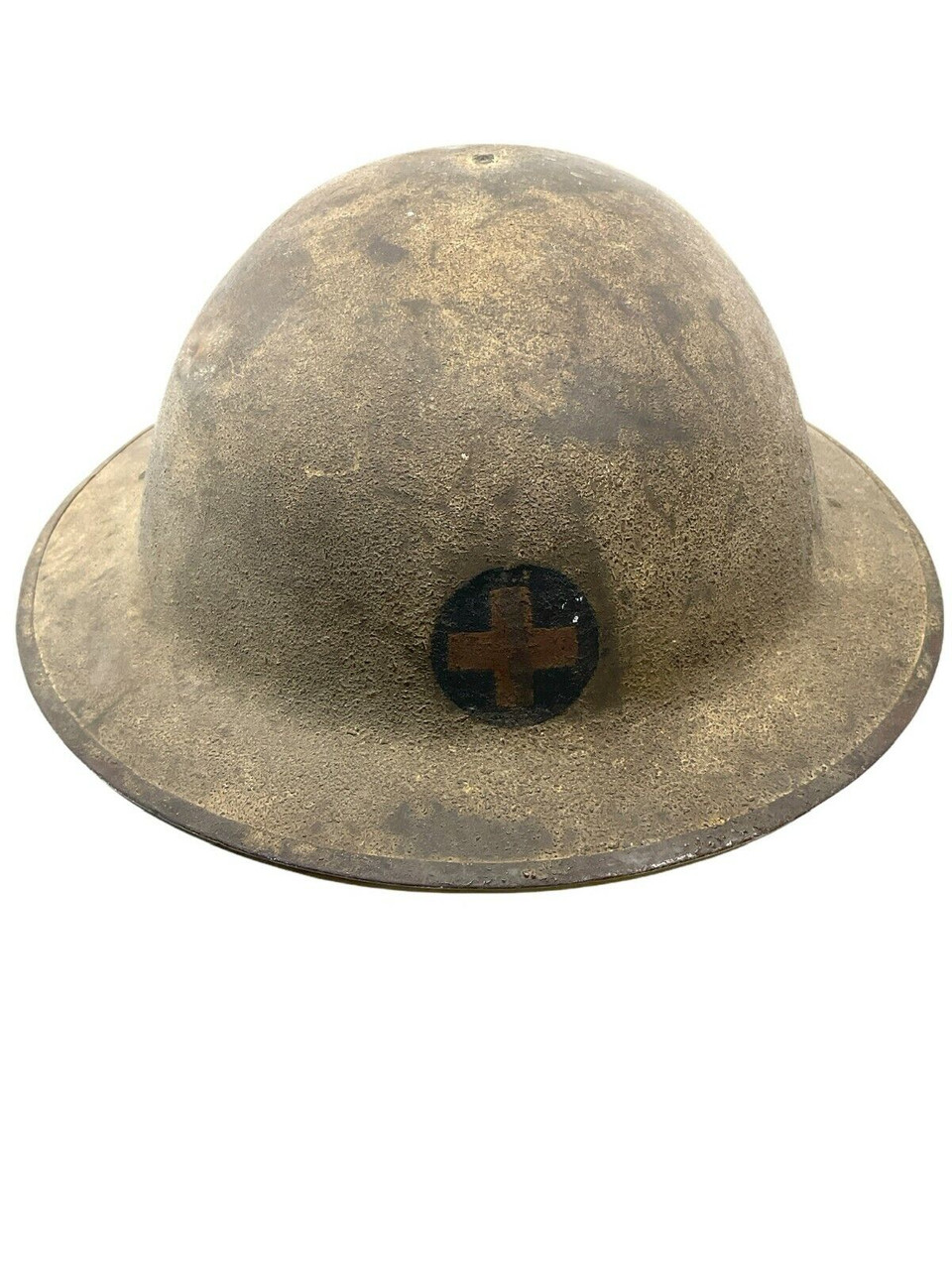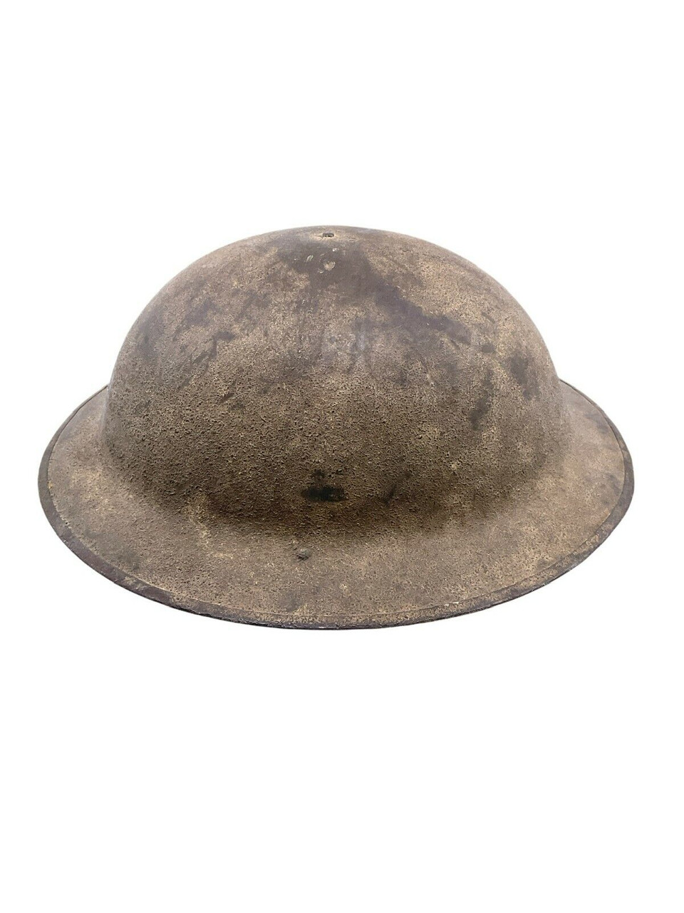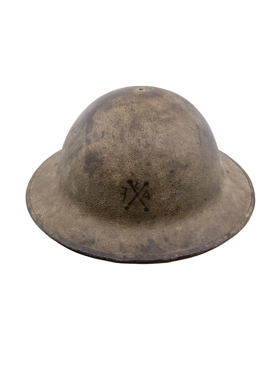 This historical artifact, titled ‘WW1 US AEF 33rd Division Patch Painted Brodie Camouflage Helmet,’ is a remarkable piece of military history from the First World War. The helmet is a Brodie, a steel combat helmet widely used by British, Commonwealth, and U.S. troops during the conflict. What sets this helmet apart is its unique hand-painted camouflage pattern, designed to offer soldiers improved concealment on the battlefield. Adding to its historical significance is the painted insignia of the 33rd Division of the American Expeditionary Forces (AEF), a unit known for its bravery and pivotal role in several key battles. This detailed patch signifies the wearer’s allegiance and division, making the helmet a poignant reminder of the individual stories and sacrifices behind the larger military operations. This carefully preserved artifact is a rare and valuable piece, offering insightful connections to the personal and divisional histories of World War I.