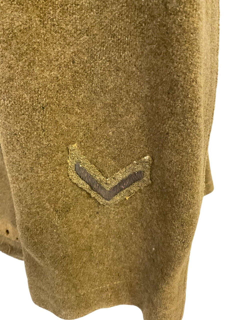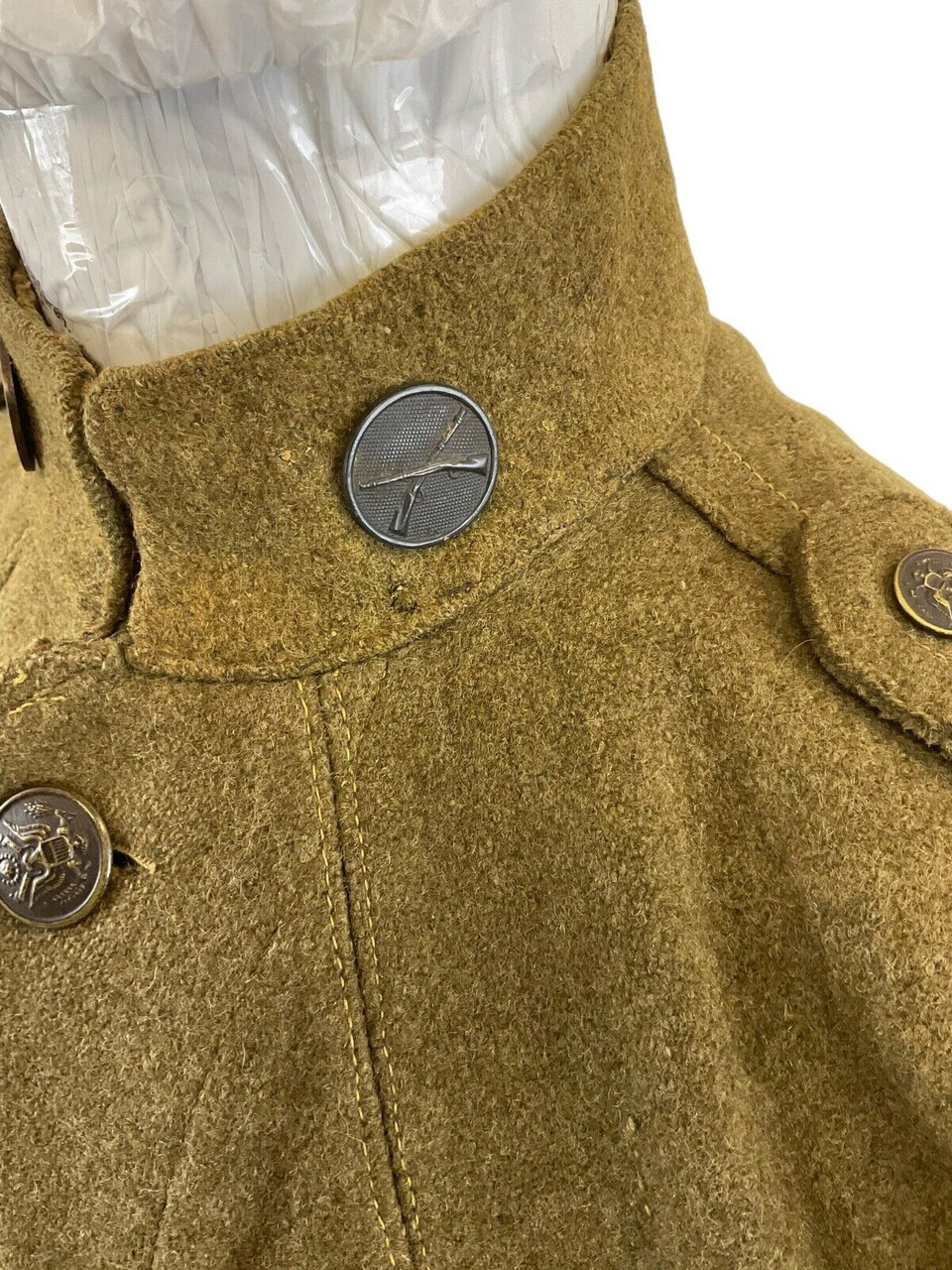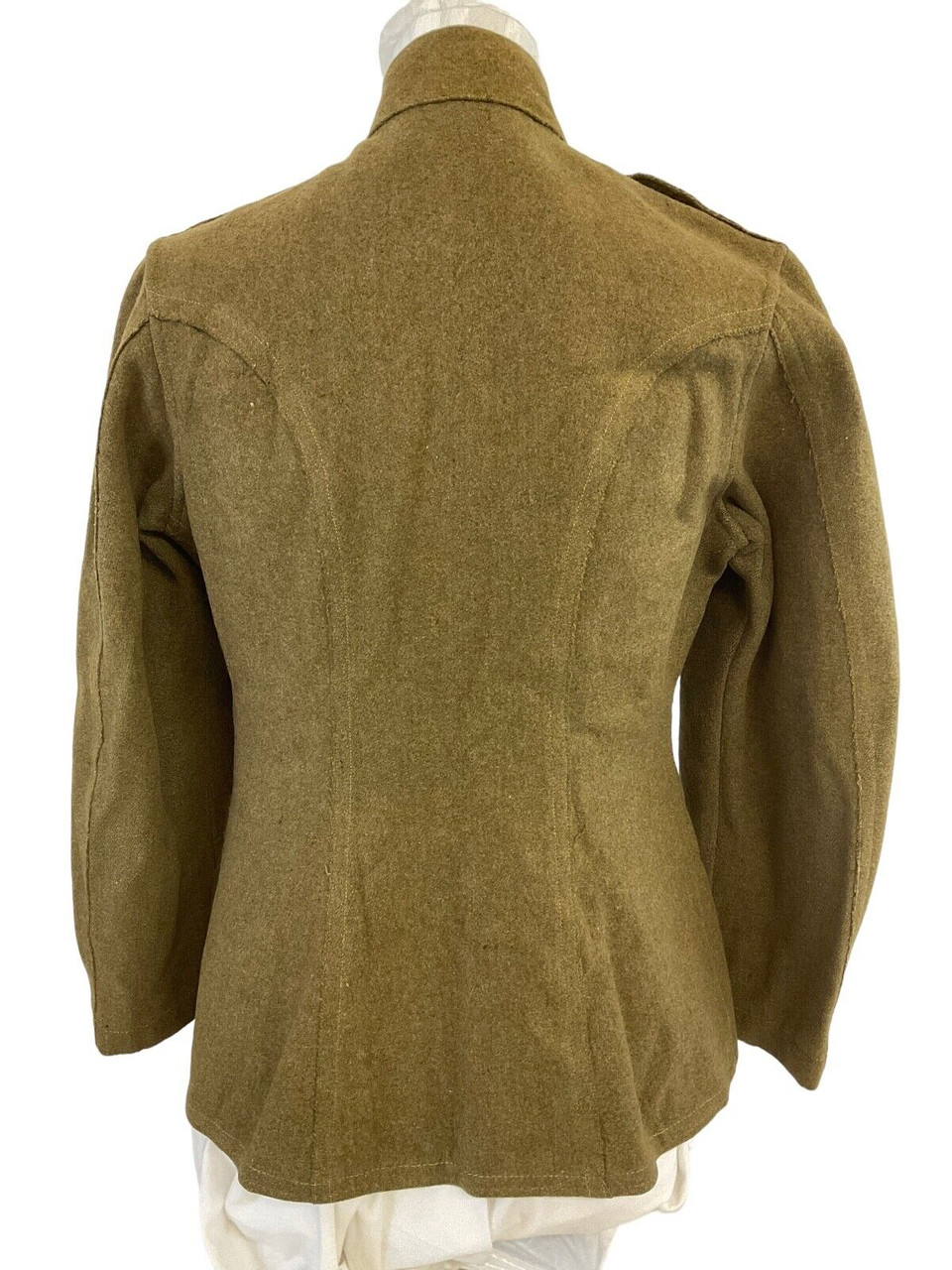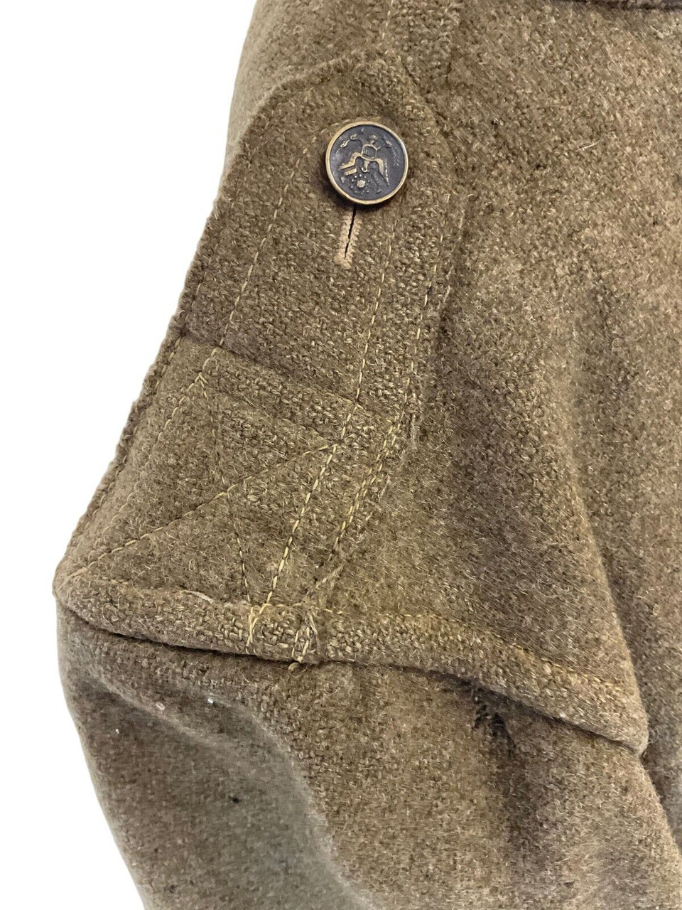 WW1 US AEF 5th Corps Pioneer Corporal Infantry Collar Disc Other Ranks Tunic This authentic World War I artifact is a tunic belonging to a Corporal of the Pioneers within the US Army Expeditionary Forces (AEF), specifically from the 5th Corps Infantry. The garment features an Infantry collar disc, signifying the rank and specialty of the wearer. Made from durable wool, the tunic displays the standard design used by other ranks, reflecting the historical military fashion of the era. The unique unit insignia and markings give insight into the divisional alignment and duties of the Pioneer Corporal, who would have been responsible for engineering tasks such as fortifications and trench constructions. This tunic not only represents the practical military attire of the Great War but also serves as a tribute to the bravery and industrious spirit of the men who served in one of the most significant conflicts in history. An excellent piece for collectors and historians alike, it provides a tangible connection to the lives of WWI soldiers.