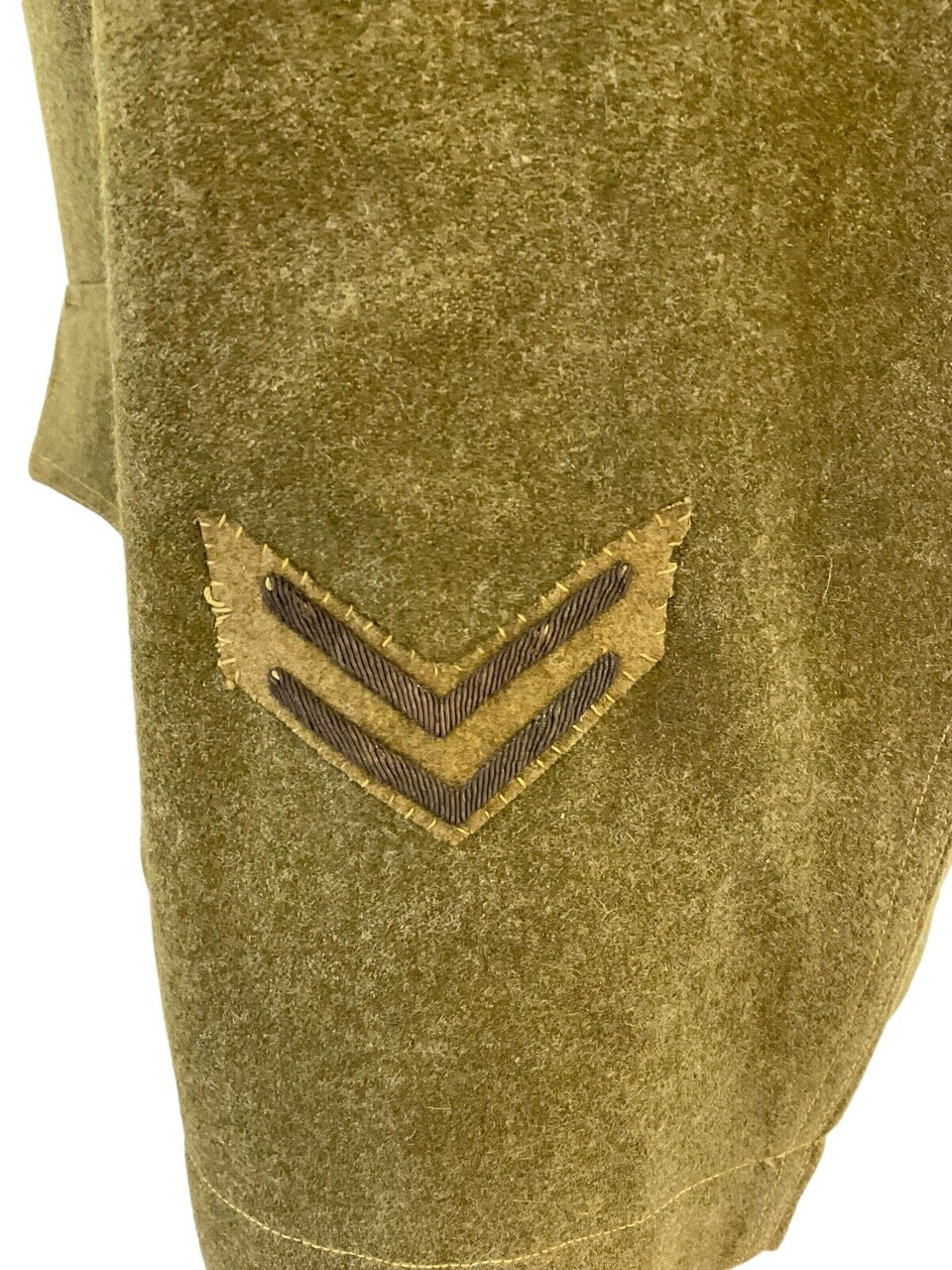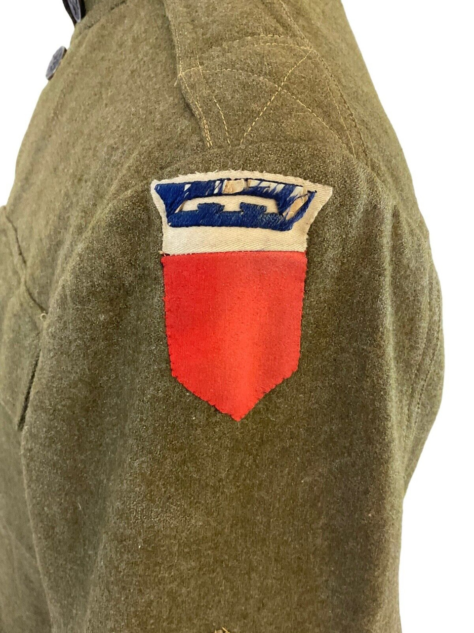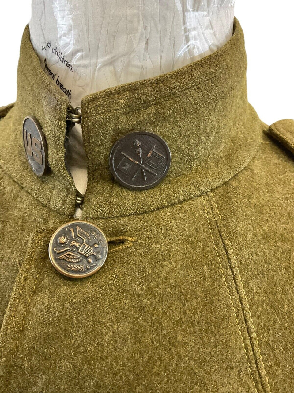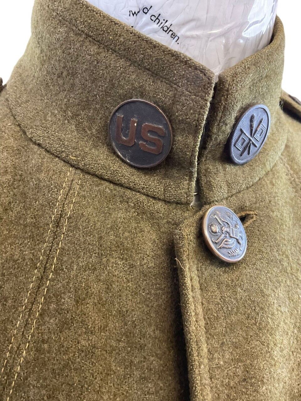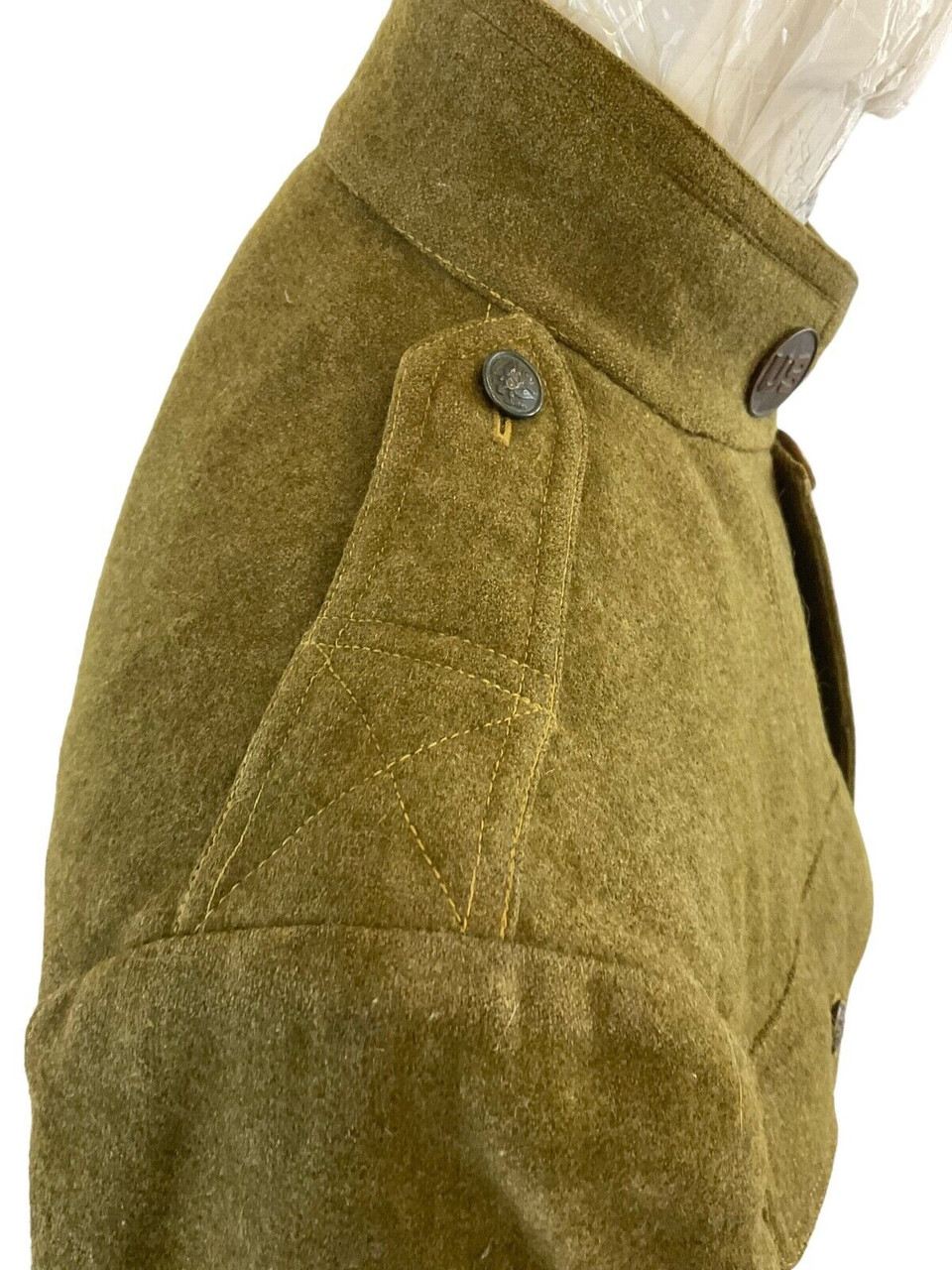 WW1 US AEF 76th Division Corporal Signals Collar Disc Other Ranks Tunic The WW1 US AEF 76th Division Corporal Signals Collar Disc Other Ranks Tunic is a remarkable piece of military history from the First World War. This authentic tunic belonged to a corporal in the Signals Corps of the 76th Division, a unit of the American Expeditionary Forces (AEF). The tunic, crafted for other ranks, features distinct collar discs that signify the wearer’s role in communications and signal operations, a critical function in the war effort. The 76th Division was activated in 1917 and played a pivotal role in various operations, making this garment a treasured artifact. Meticulously preserved, the tunic showcases period-specific design and materials, reflecting the storied past of those who served in the AEF. Collectors and historians alike will appreciate the tunic’s authenticity and the glimpse it offers into the life of a World War I signalman.