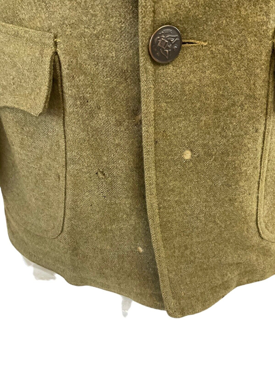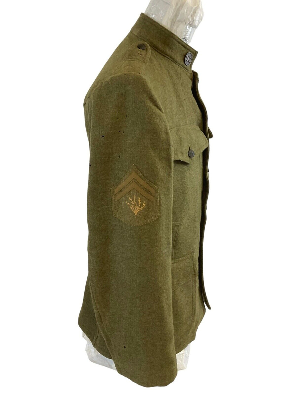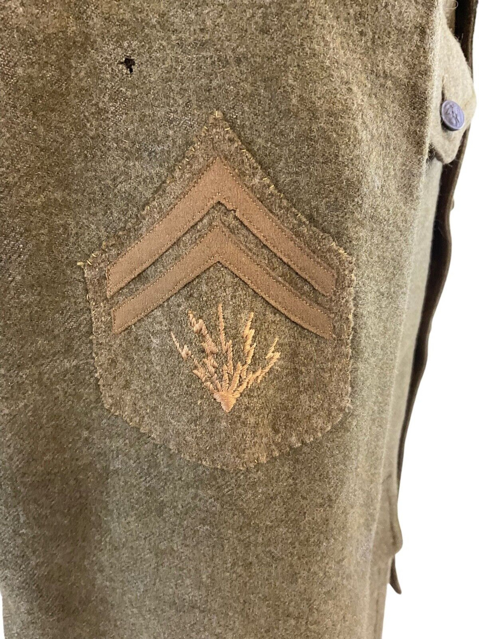 This authentic World War I era tunic is a remarkable piece of military history, specifically from the United States Army Expeditionary Forces (AEF). It belonged to an enlisted soldier in the 7th Corps of the 3rd Army Signals. Crafted with attention to detail, the tunic features the distinctive collar disc emblem representing the Signals unit, a key division responsible for communications. The sturdy fabric reflects the practical design intended for the rigors of wartime conditions, while the insignia affirms its wearer’s vital role in maintaining communication lines during the Great War. Ideal for collectors or history enthusiasts, this tunic encapsulates the bravery and dedication of the soldiers in the trenches, highlighting the important and often perilous roles undertaken by the Signals Corps to ensure successful operations and coordination. Owning this tunic offers a tangible connection to the storied past of the AEF and the soldiers who served with honor and distinction.