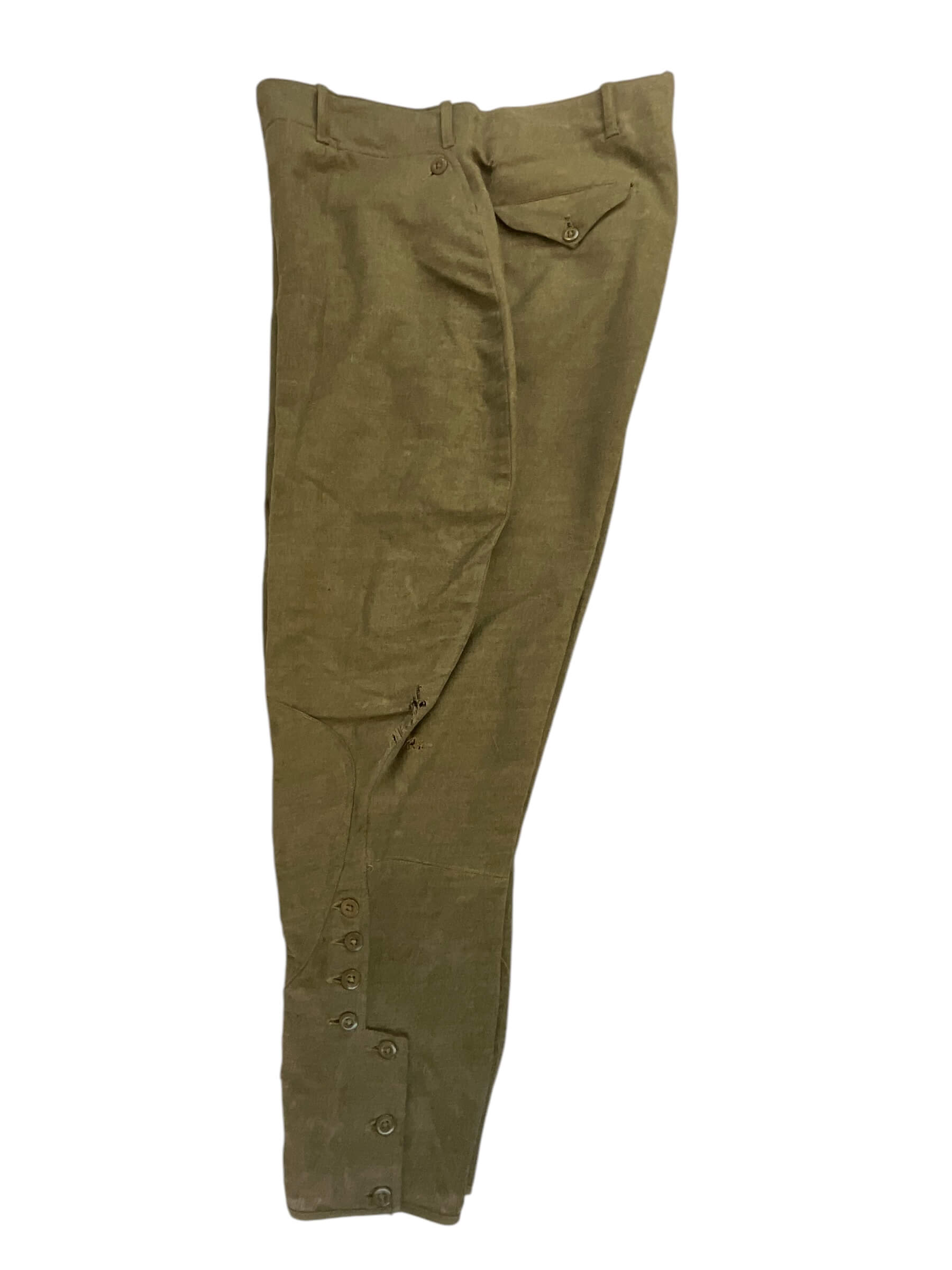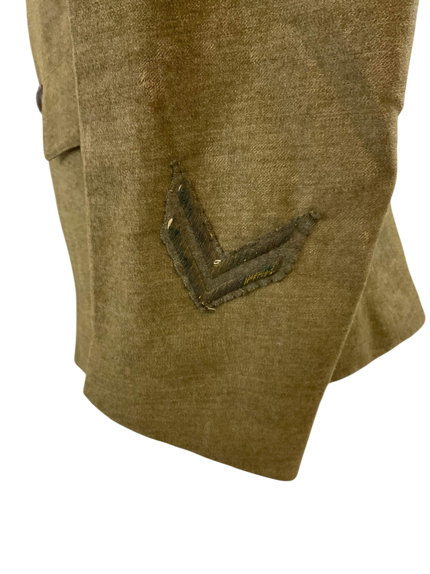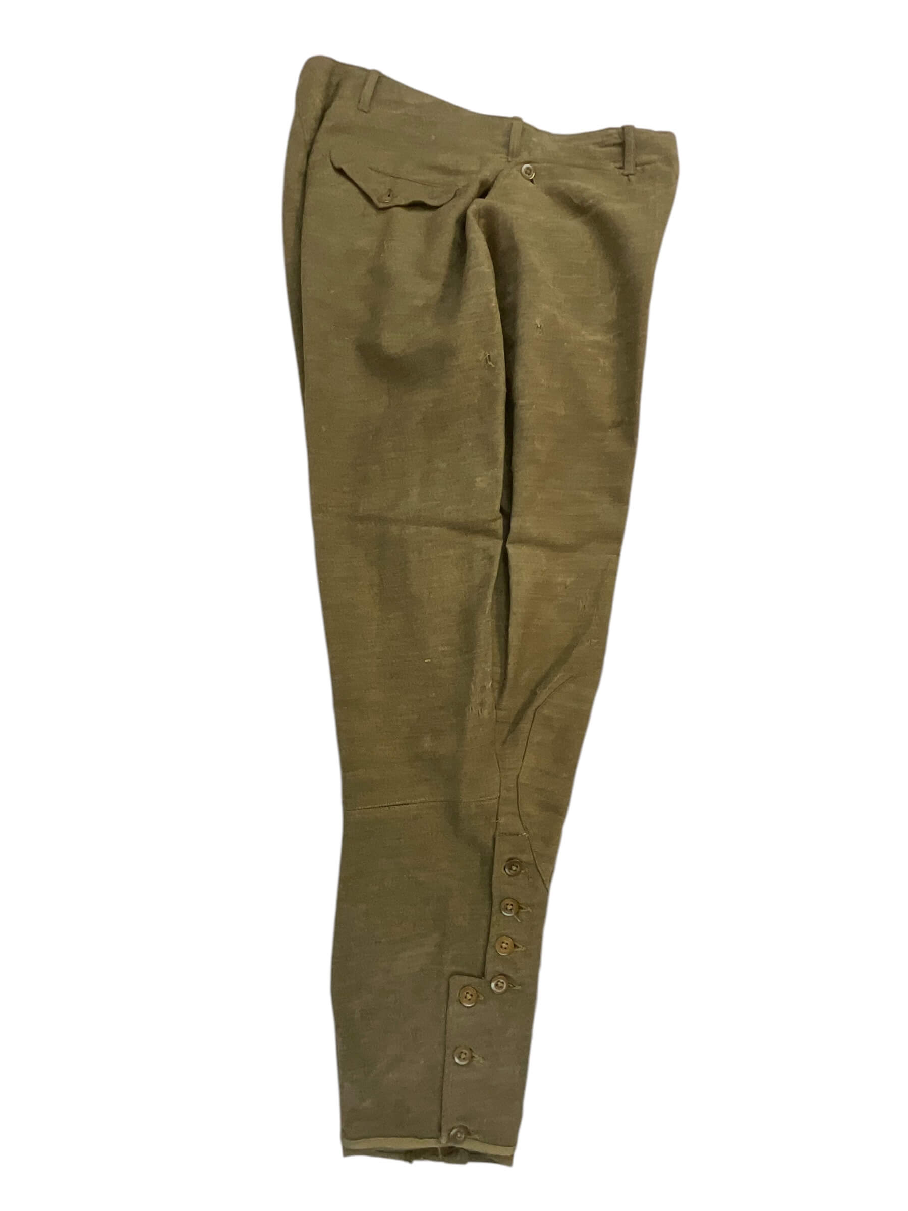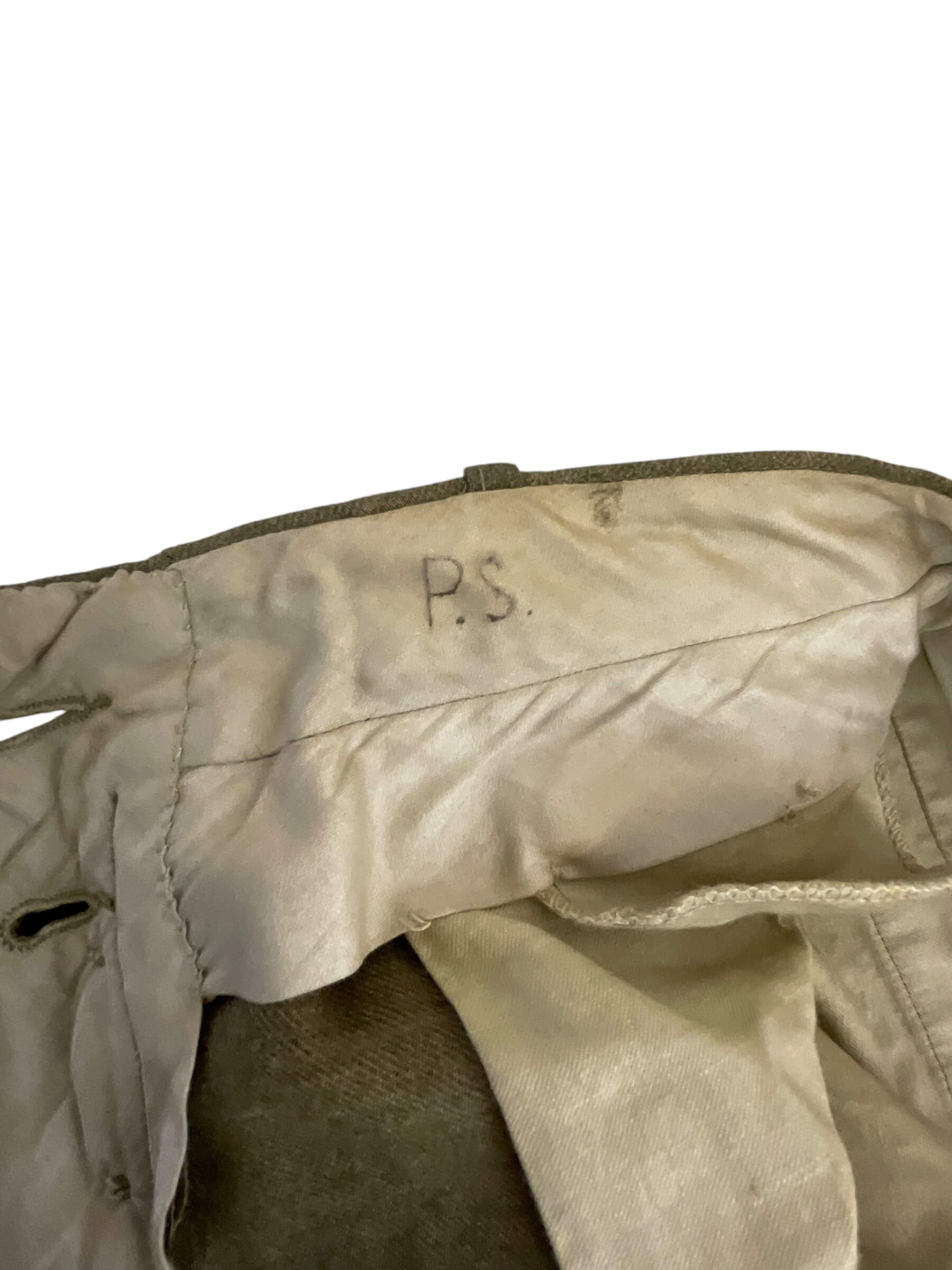This is a vintage WW1 US AEF 80th Division Motor Transport Corps Jacket and Trousers set, named and distinctively representative of the American military history. The uniform, preserved in exceptional condition, is made of a sturdy, high-quality fabric, tailored to meet the specifications of military attire during World War 1. The jacket bears the iconic insignia of the 80th Division Motor Transport Corps, highlighting its historical significance. The trousers, matching the jacket, are cut in a classic military style of the era. The set is named, indicating it was once possessed and worn by a soldier who served in the US Army Expeditionary Forces in the Great War. This is not just a piece of clothing, but a tangible relic of a pivotal time in world history, an embodiment of the courage and dedication of the men who served in the armed forces.