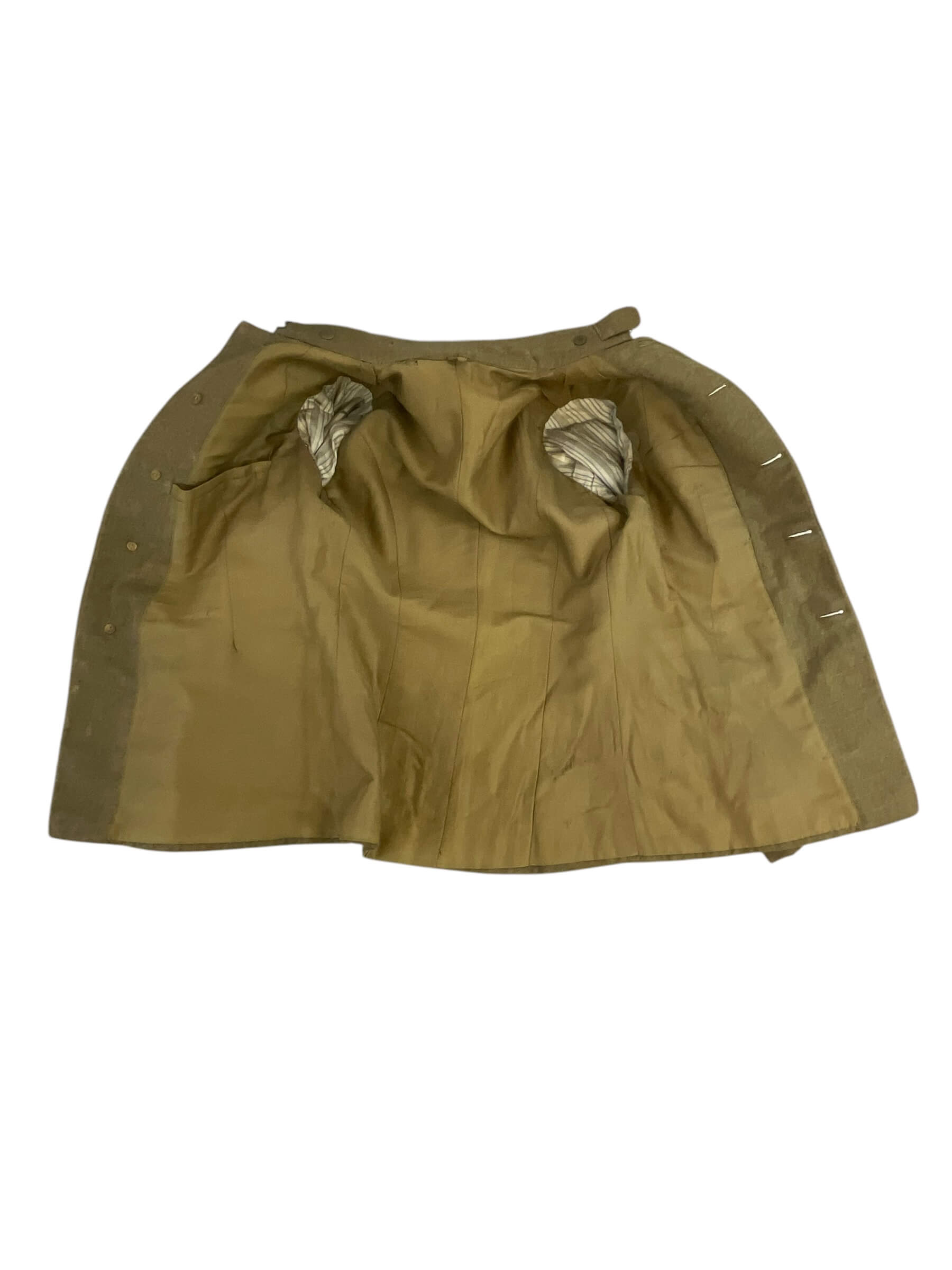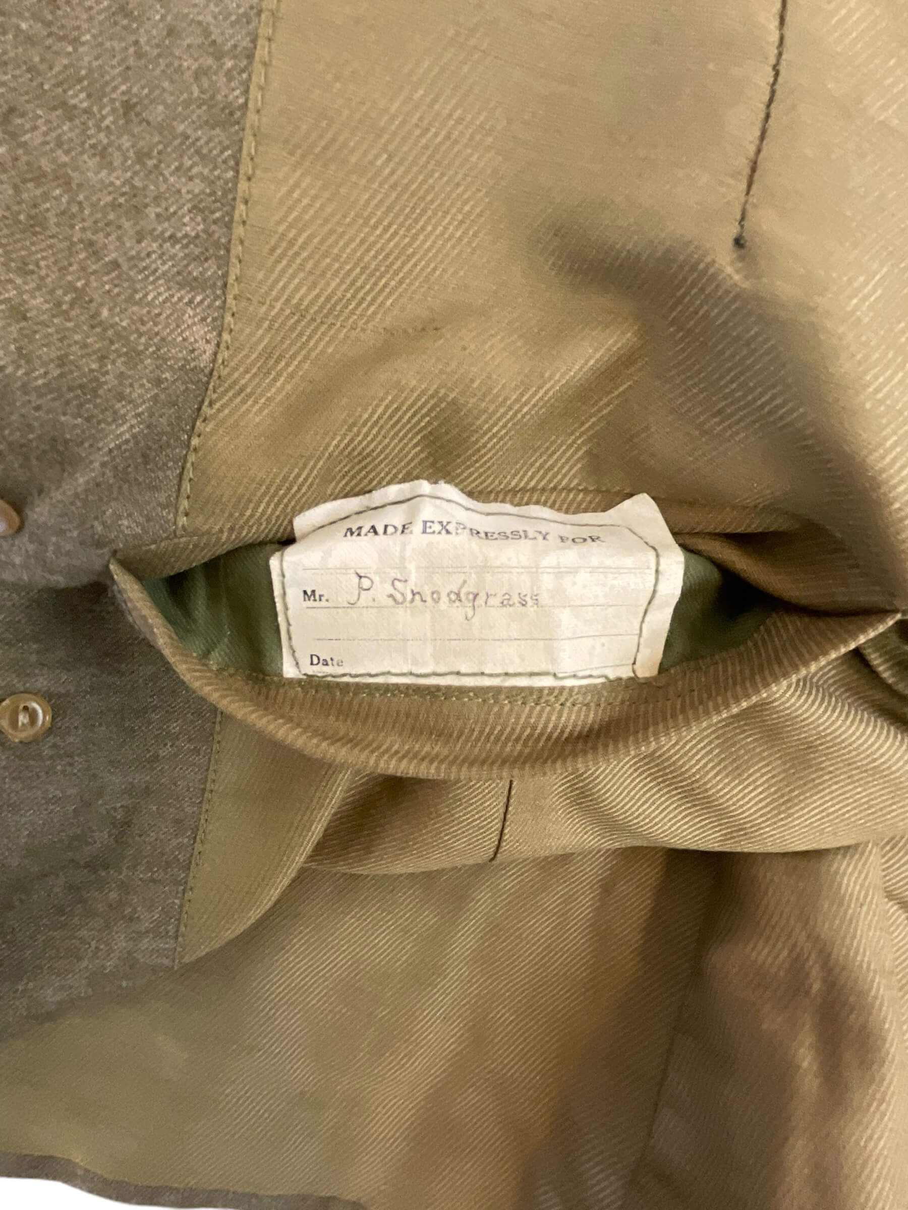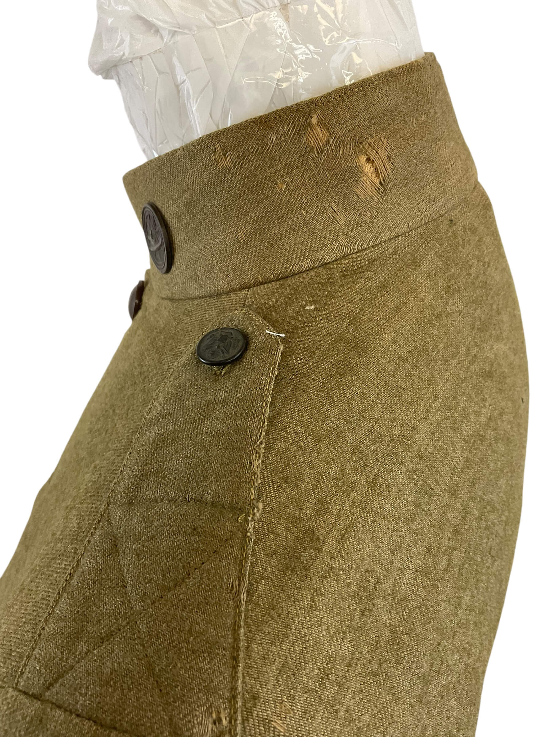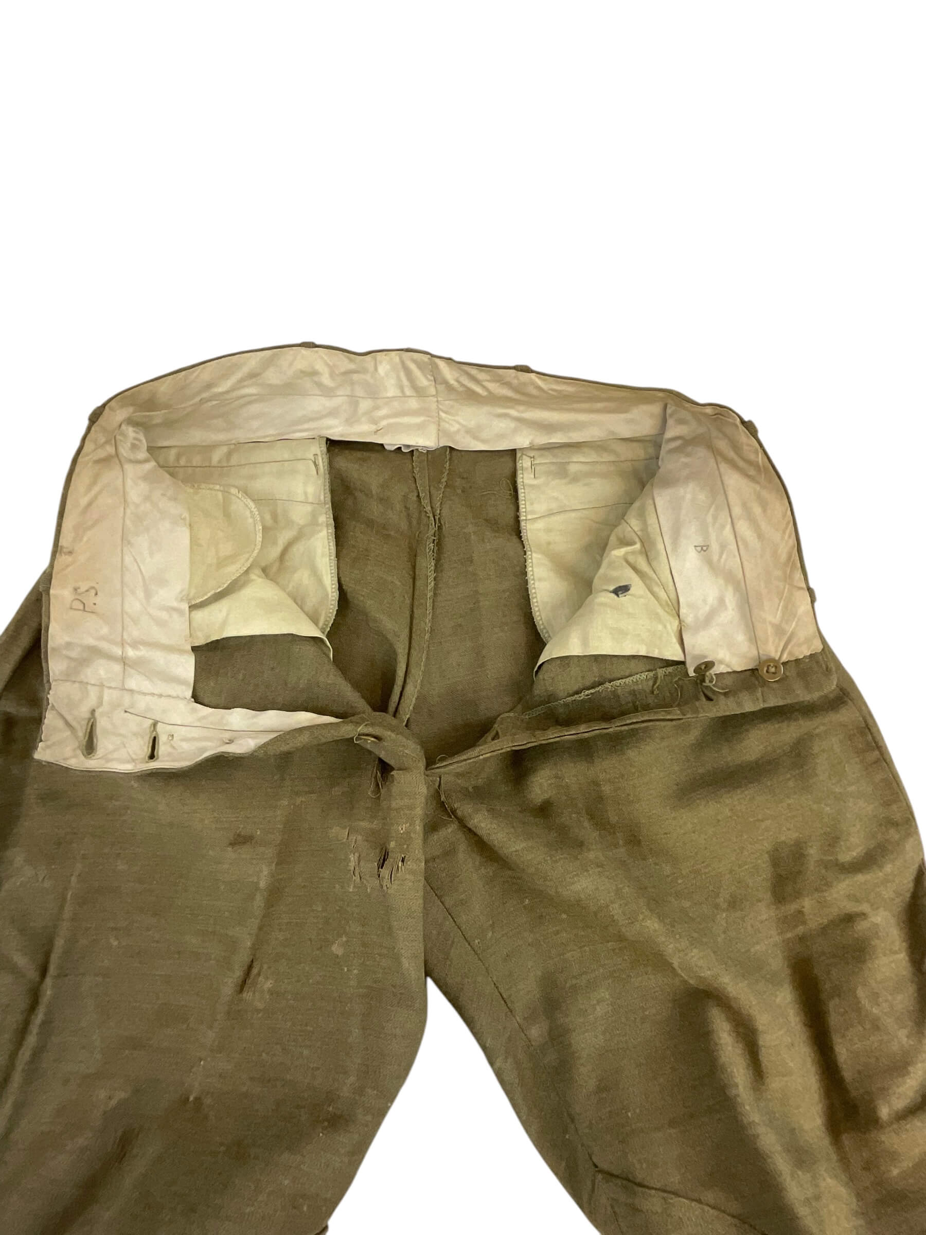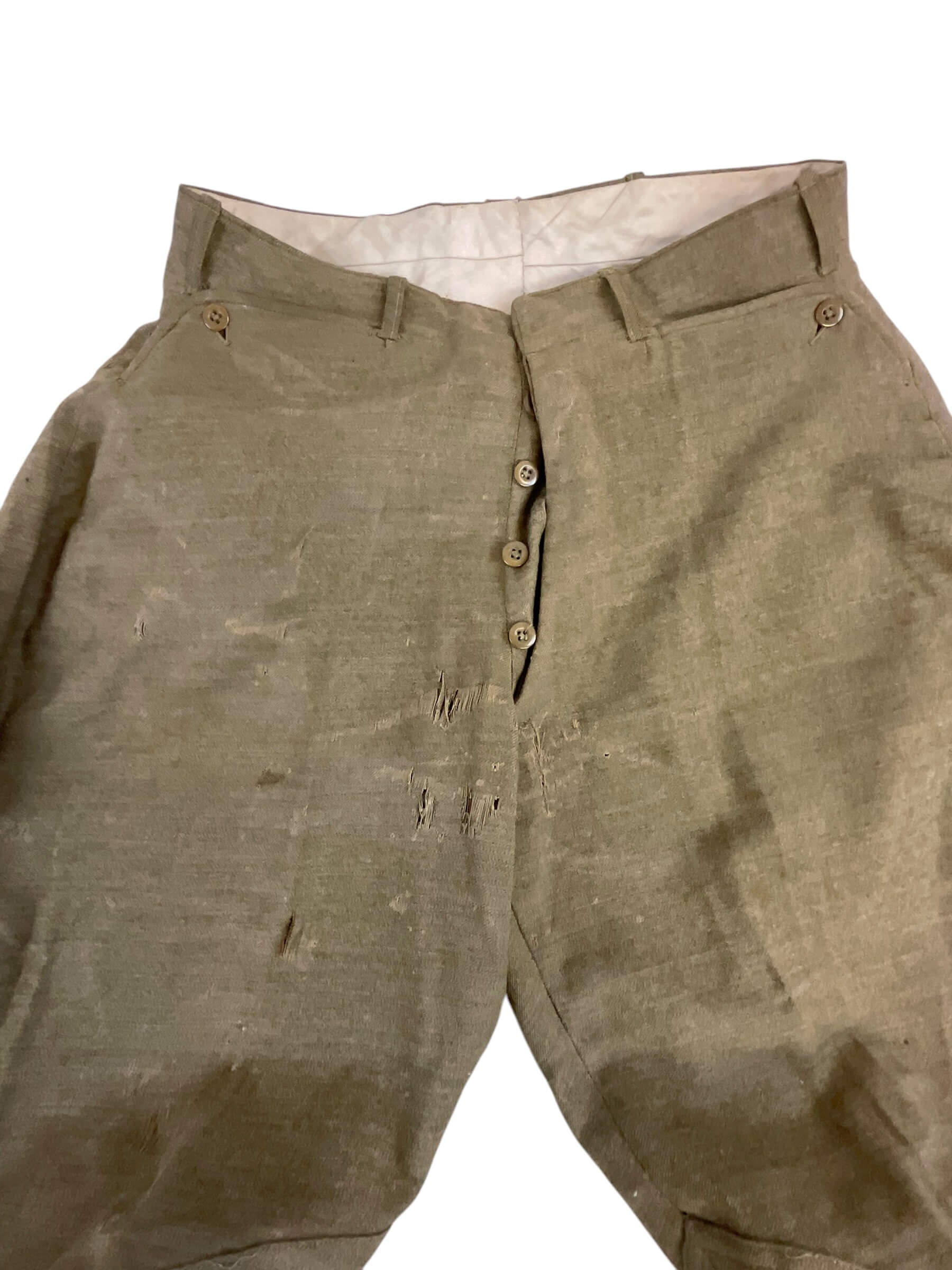 This is a vintage WW1 US AEF 80th Division Motor Transport Corps Jacket and Trousers set, named and distinctively representative of the American military history. The uniform, preserved in exceptional condition, is made of a sturdy, high-quality fabric, tailored to meet the specifications of military attire during World War 1. The jacket bears the iconic insignia of the 80th Division Motor Transport Corps, highlighting its historical significance. The trousers, matching the jacket, are cut in a classic military style of the era. The set is named, indicating it was once possessed and worn by a soldier who served in the US Army Expeditionary Forces in the Great War. This is not just a piece of clothing, but a tangible relic of a pivotal time in world history, an embodiment of the courage and dedication of the men who served in the armed forces.