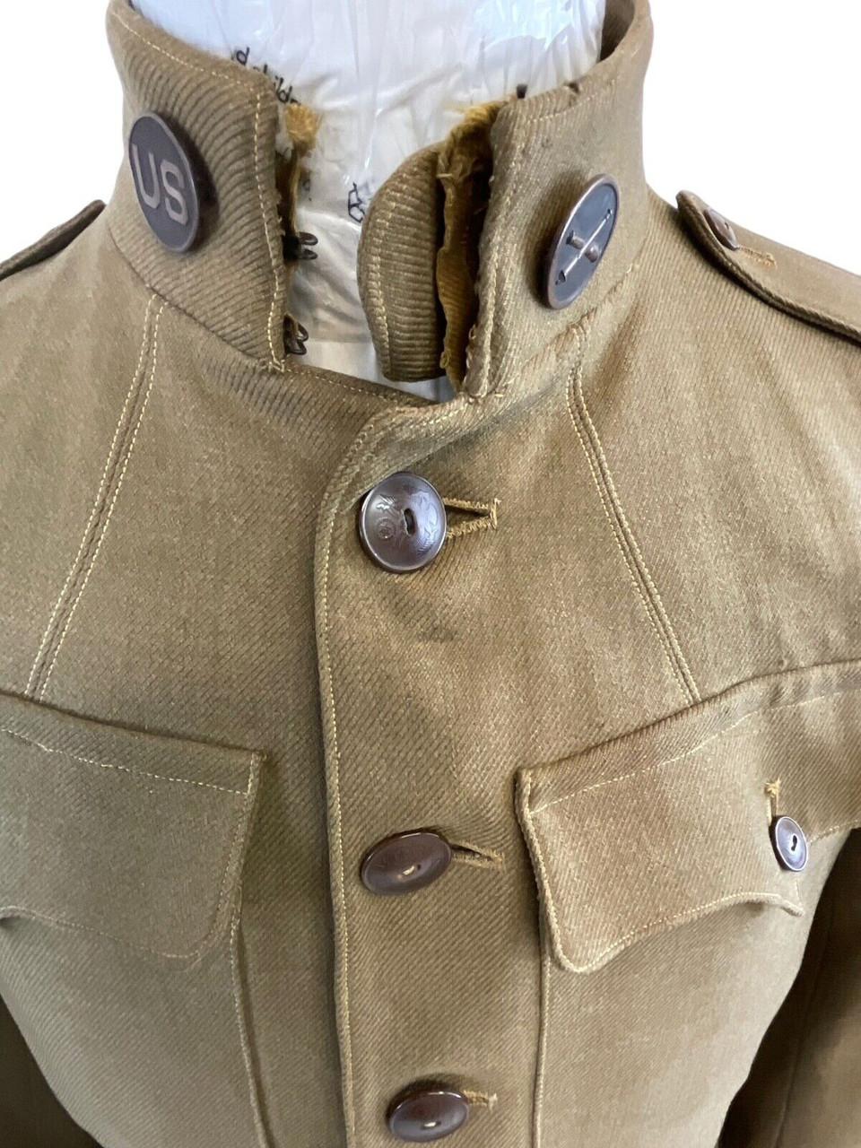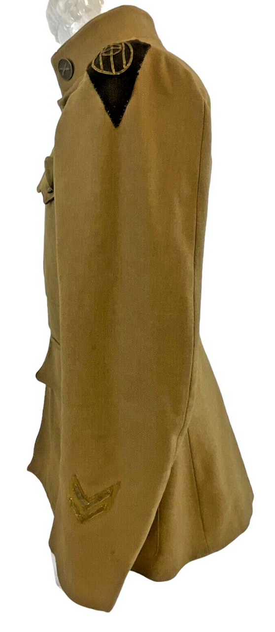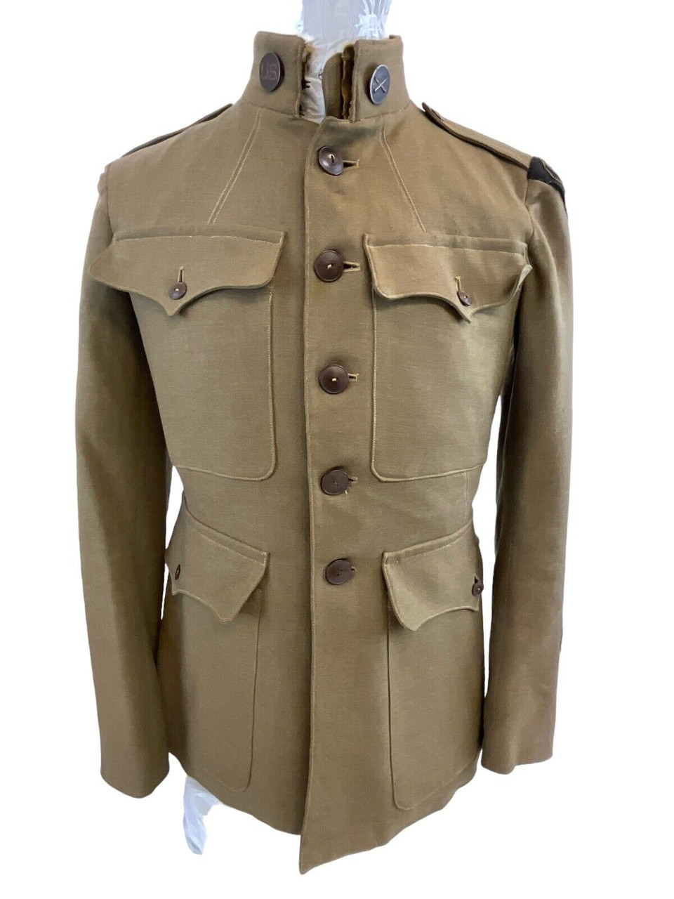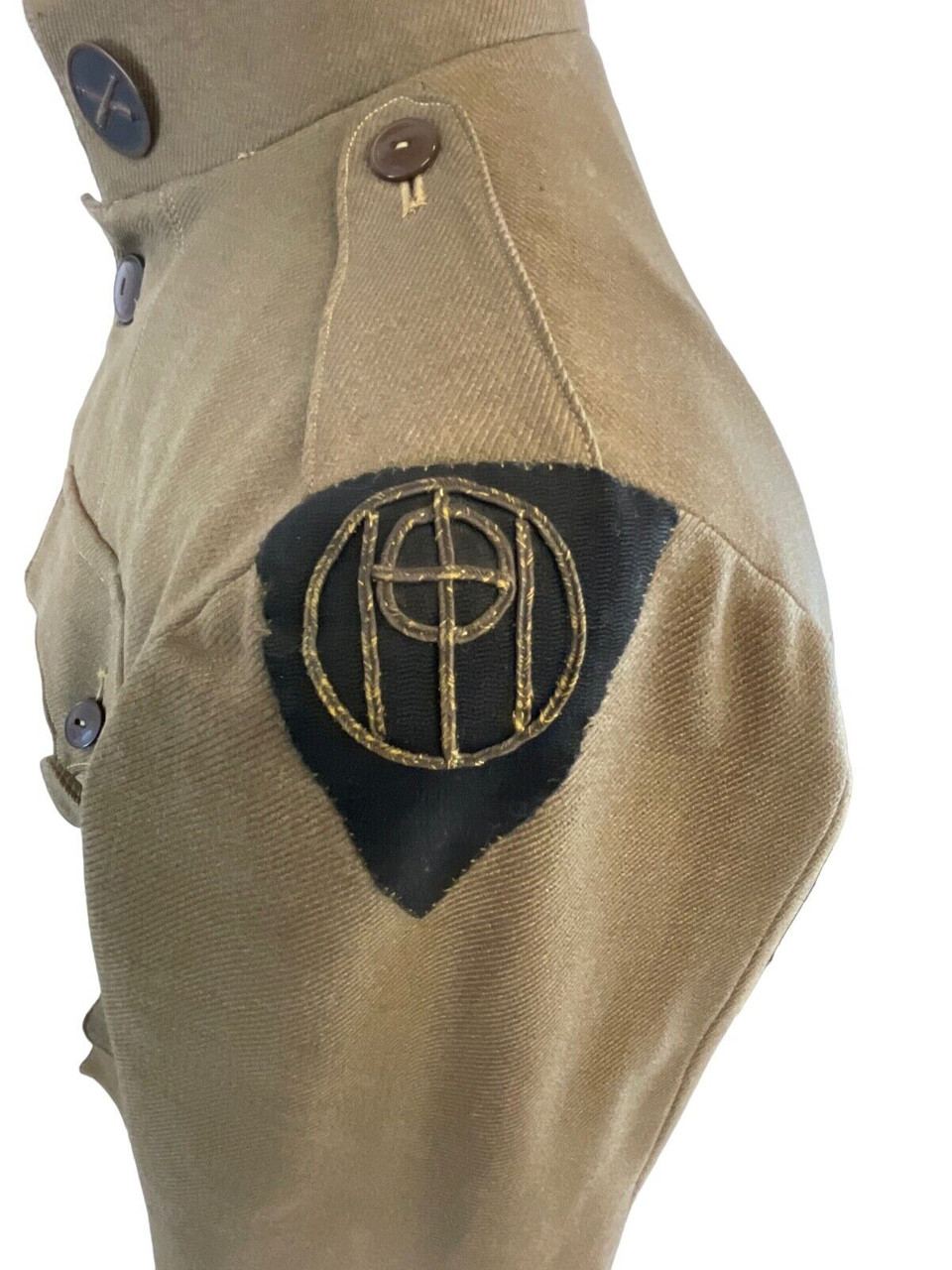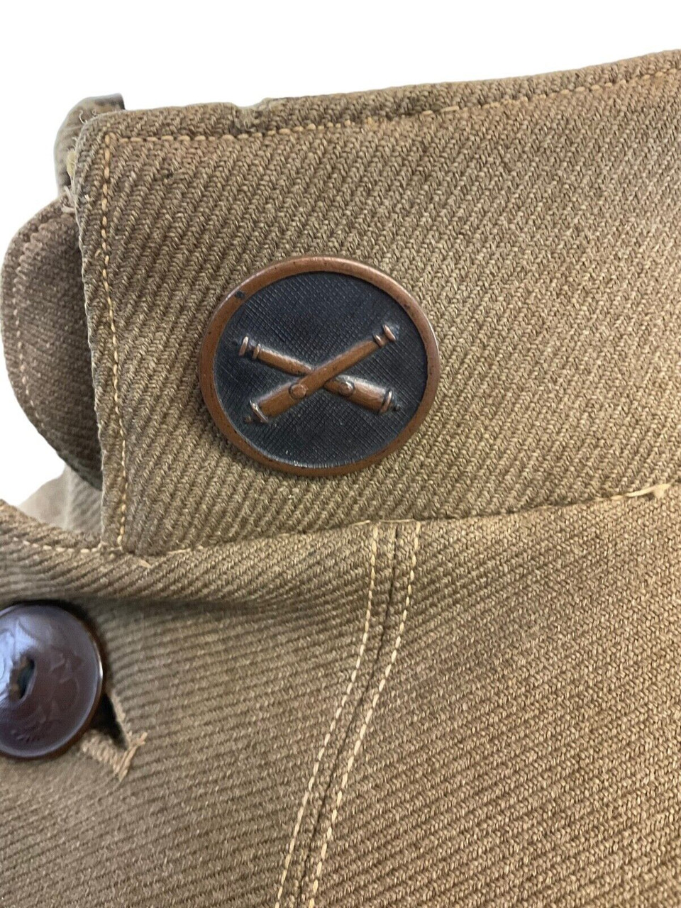 This historically significant WW1 U.S. AEF 83rd Infantry Artillery Collar Disc Other Ranks Tunic offers a rare glimpse into the bravery and heritage of American Expeditionary Forces. Made in France during the First World War, this tunic, adorned with the original artillery collar disc, epitomizes the dedication and valor of the soldiers from the 83rd Infantry Division. Crafted for other ranks, the tunic highlights meticulous French tailoring, reflecting the collaboration between the U.S. and France during the tumultuous war period. The collar disc is an authentic piece, symbolizing the artillery unit’s critical role in the battlefield. This tunic not only serves as a tribute to the servicemen of the past but also stands as a valuable collectible for history enthusiasts, militaria collectors, and anyone captivated by WW1 relics. Its preservation allows us to honor and remember the sacrifices made by these brave soldiers.