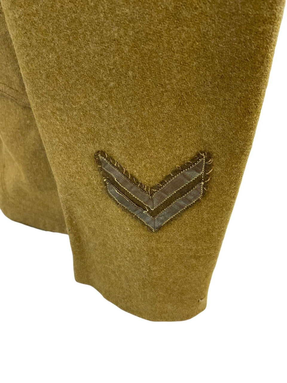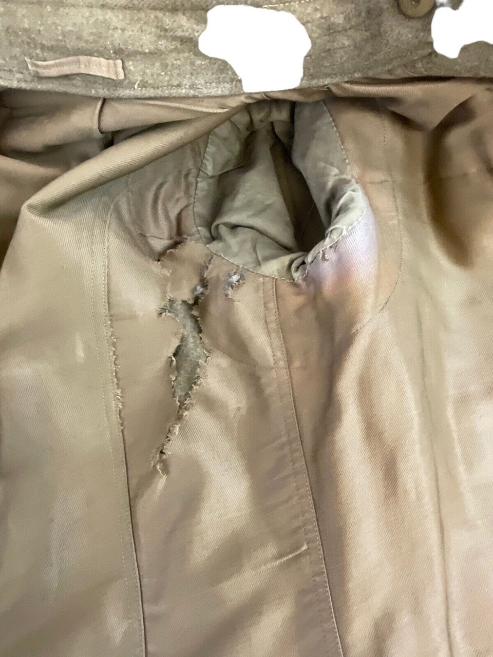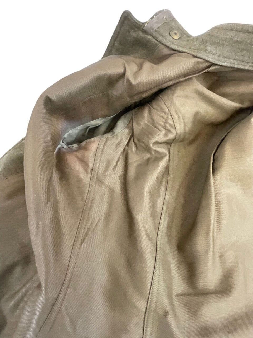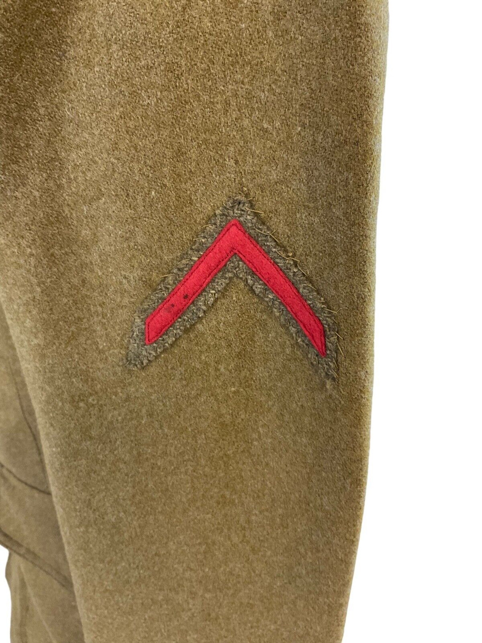 The “WW1 US AEF 91st Infantry Division H Collar Disc Other Ranks Wool Tunic” is a historic military garment from World War I, epitomizing the brave service of the American Expeditionary Forces. This original wool tunic was worn by enlisted personnel of the 91st Infantry Division, renowned as the “Wild West Division.” The tunic features an “H” collar disc, signifying the unit designation, and is constructed from durable wool, reflecting the practicality and ruggedness required for trench warfare. Intricately preserved, it showcases period-specific design and craftsmanship, offering a tangible connection to the soldiers’ experiences during the Great War. This tunic not only holds historical significance but also serves as an authentic piece for collectors and history enthusiasts, offering a glimpse into the attire of American troops who served valiantly in key battles on the Western Front. Its condition and authenticity make it a valuable addition to any military memorabilia collection.