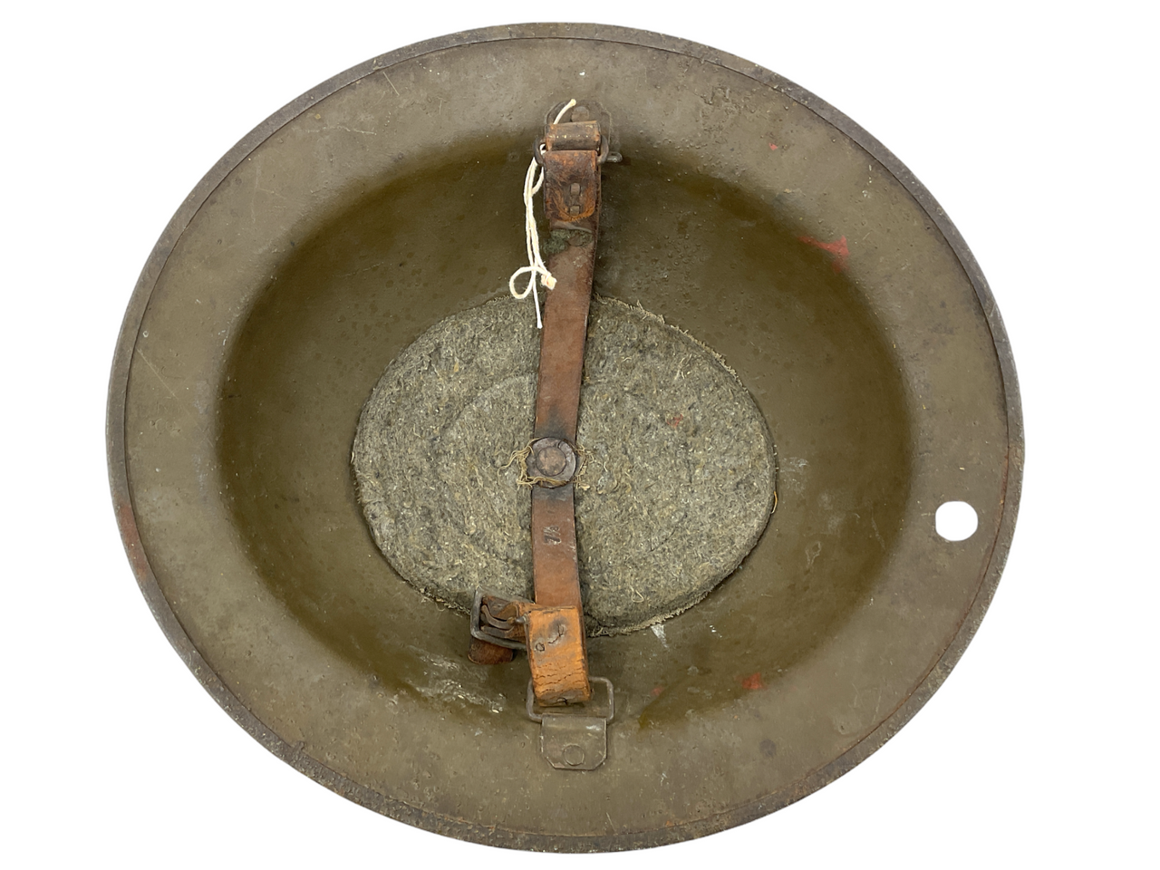 This WW1 US AEF Corps Patch Painted Brodie Helmet is a rare and historically significant piece of military memorabilia from the Great War. The helmet features a meticulously hand-painted corps patch, reflecting the distinctive insignia of the American Expeditionary Forces (AEF) that served in various corps during World War I. The iconic Brodie helmet, known for its bowl shape and sturdy steel construction, provided essential protection to soldiers in the trenches. This particular helmet bears the patina and wear consistent with its age and use, adding to its authenticity and charm. Collectors and history enthusiasts alike will appreciate the craftsmanship and the stories this helmet could tell from the front lines. Perfect for display in a collection or as a conversation piece, this helmet is a testament to the bravery and resilience of the soldiers who wore it in the pursuit of victory and peace.