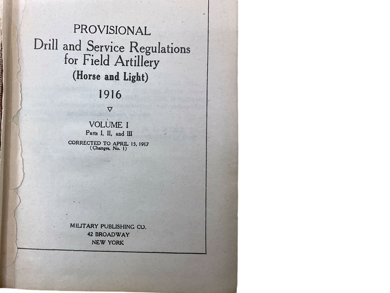 WW1 US AEF Drill & Service Regulations For Field Artillery Horse & Light Book, total no of pages 176, with lots of information, facing page torn