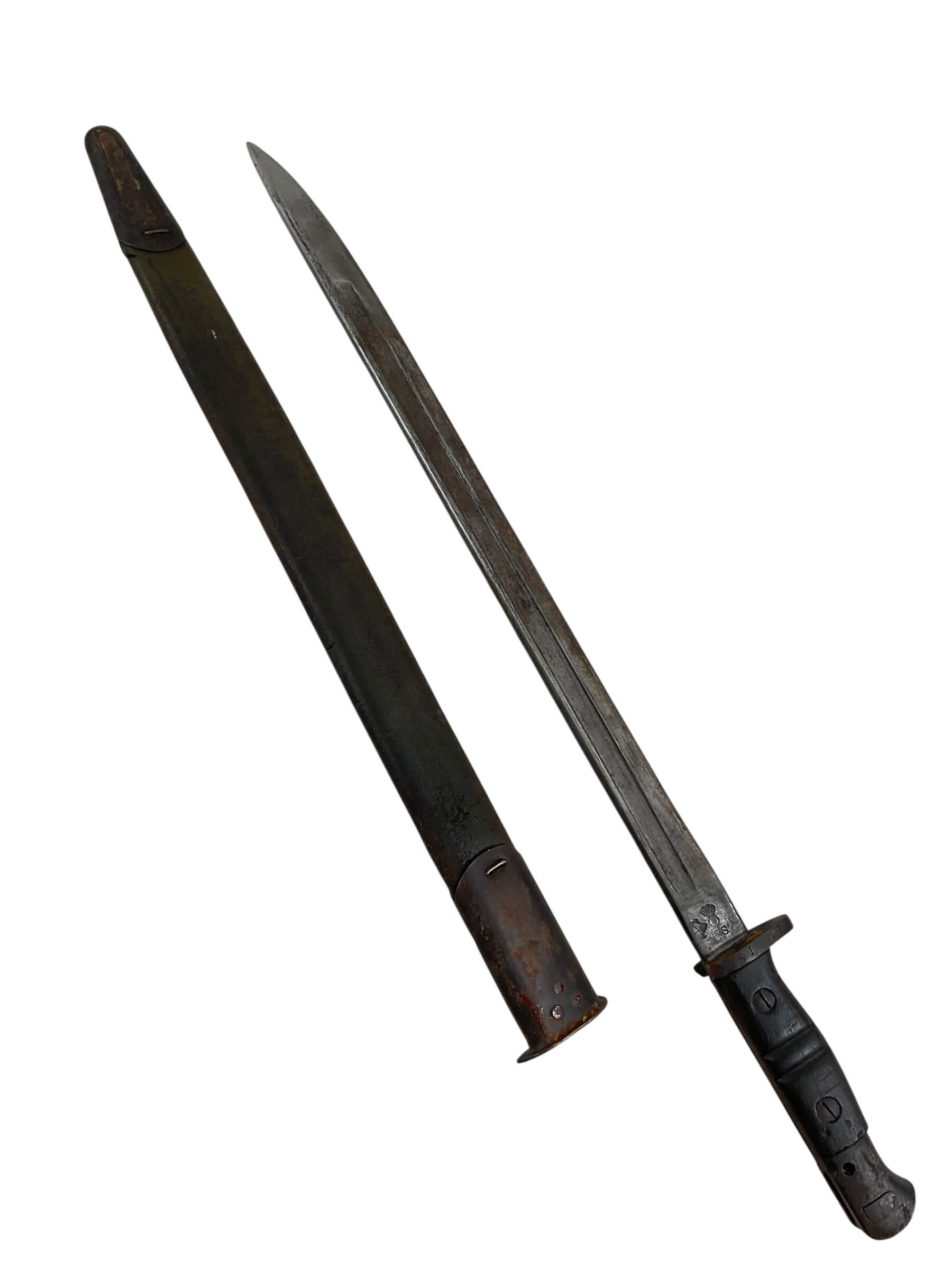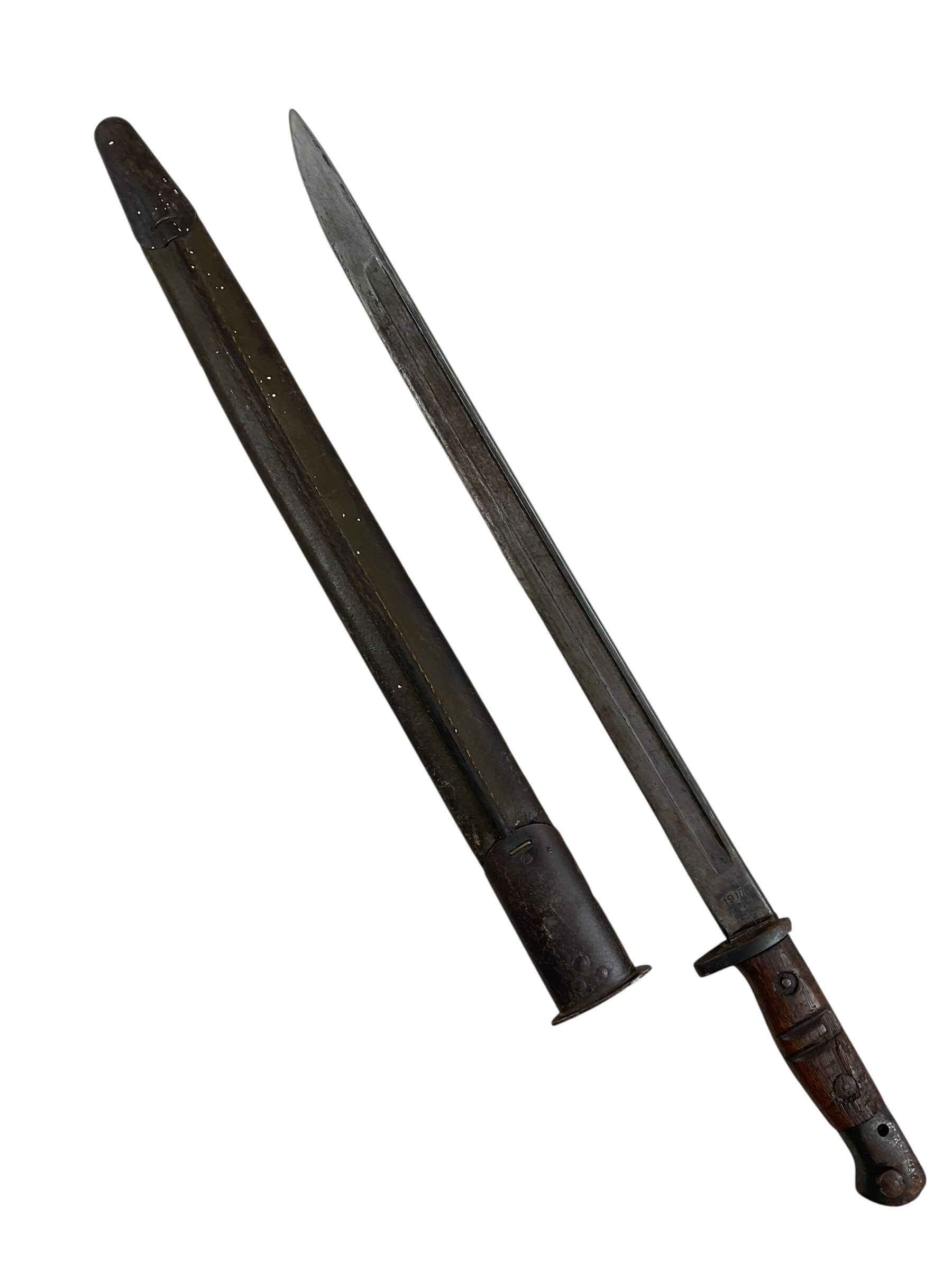 This title refers to a WW1 US AEF P17 Bayonet with Scabbard, manufactured by Remington in 1917. This wartime relic is highly sought-after by collectors and history enthusiasts alike. Notably, this particular model was issued to members of the American Expeditionary Forces (AEF) during World War I. The P17 designation refers to the Pattern 1917 Enfield, a rifle used extensively by US forces. The bayonet, made to fit this rifle, is a testament to the rugged and robust design of the era. Remington, a trusted name in firearm manufacturing, is known for its quality and durability, and this bayonet is no exception. The inclusion of the original scabbard adds to its historical value. With its storied past, this artifact serves as a tangible link to the brave men who served in the Great War.