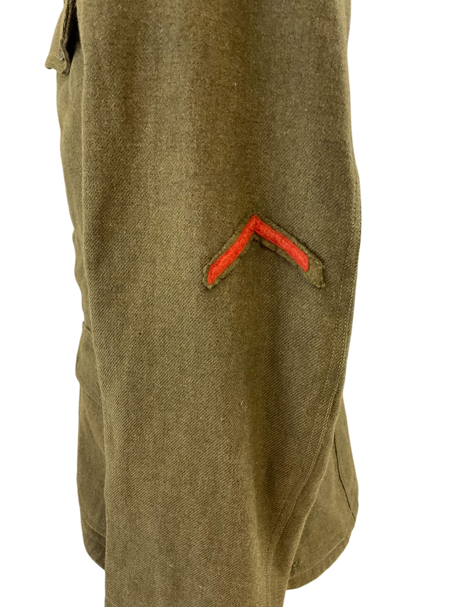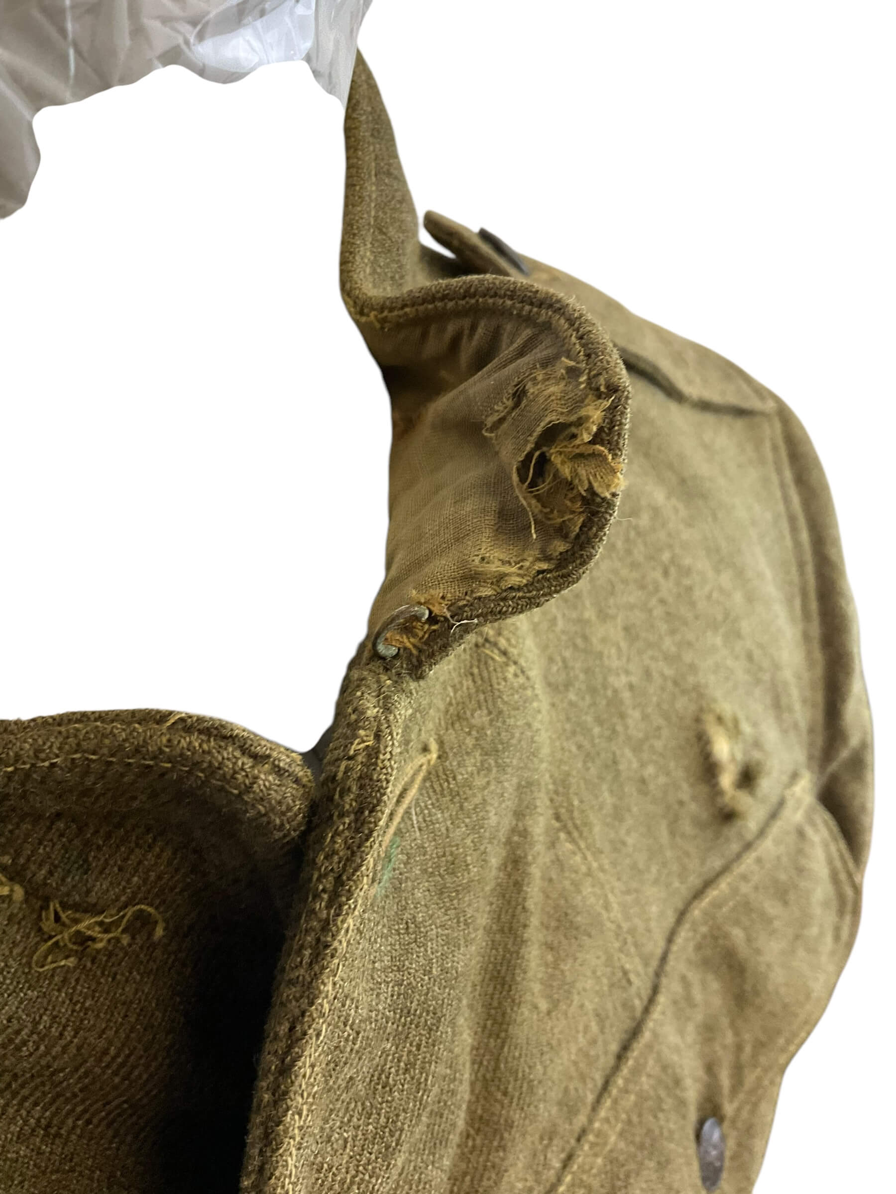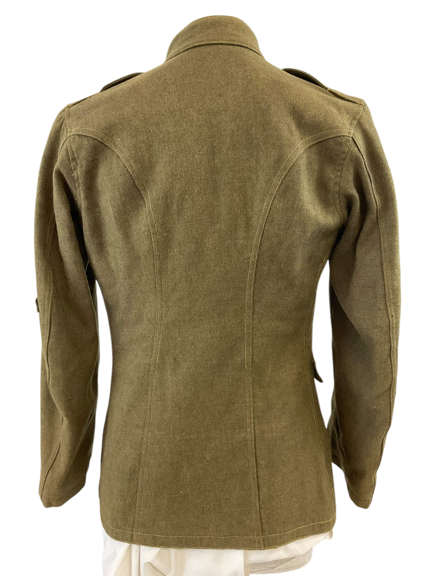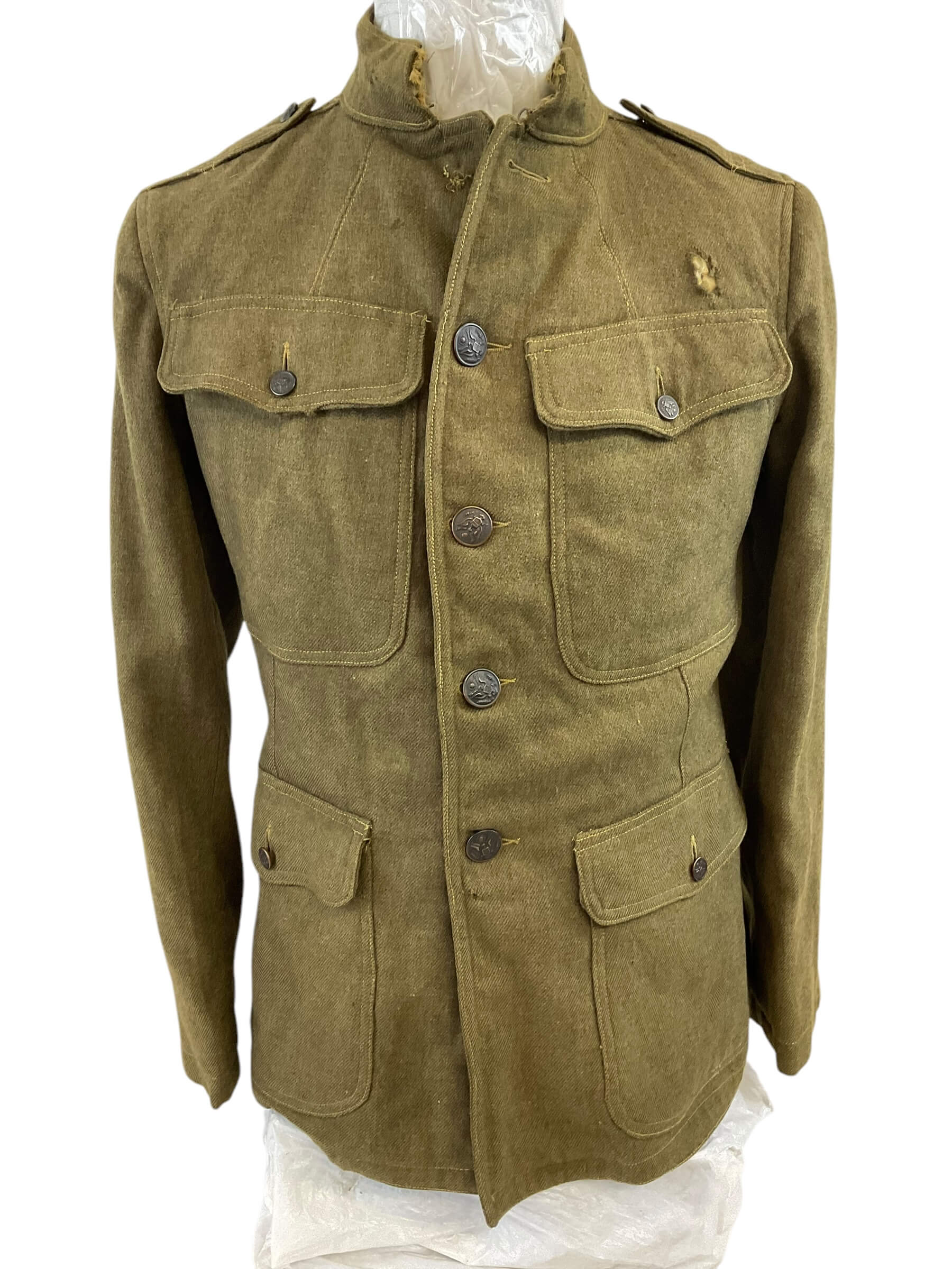 This item is a detailed replica of the WW1 US AEF Wool Other Ranks Tunic Jacket, commonly worn by American Expeditionary Forces during World War I. Made from high-quality wool, the tunic jacket is meticulously designed to match the original uniforms in color, cut, and style, providing an authentic look. It features a five-button front, stand-up collar, and four pockets – two on the chest and two at the waist. The interior is fully lined for comfort, and there is an internal pocket for added convenience. It also includes the iconic US Army eagle buttons. This tunic is not only perfect for reenactments and history enthusiasts but also serves as a tribute to the bravery and sacrifice of the soldiers who served in the Great War.