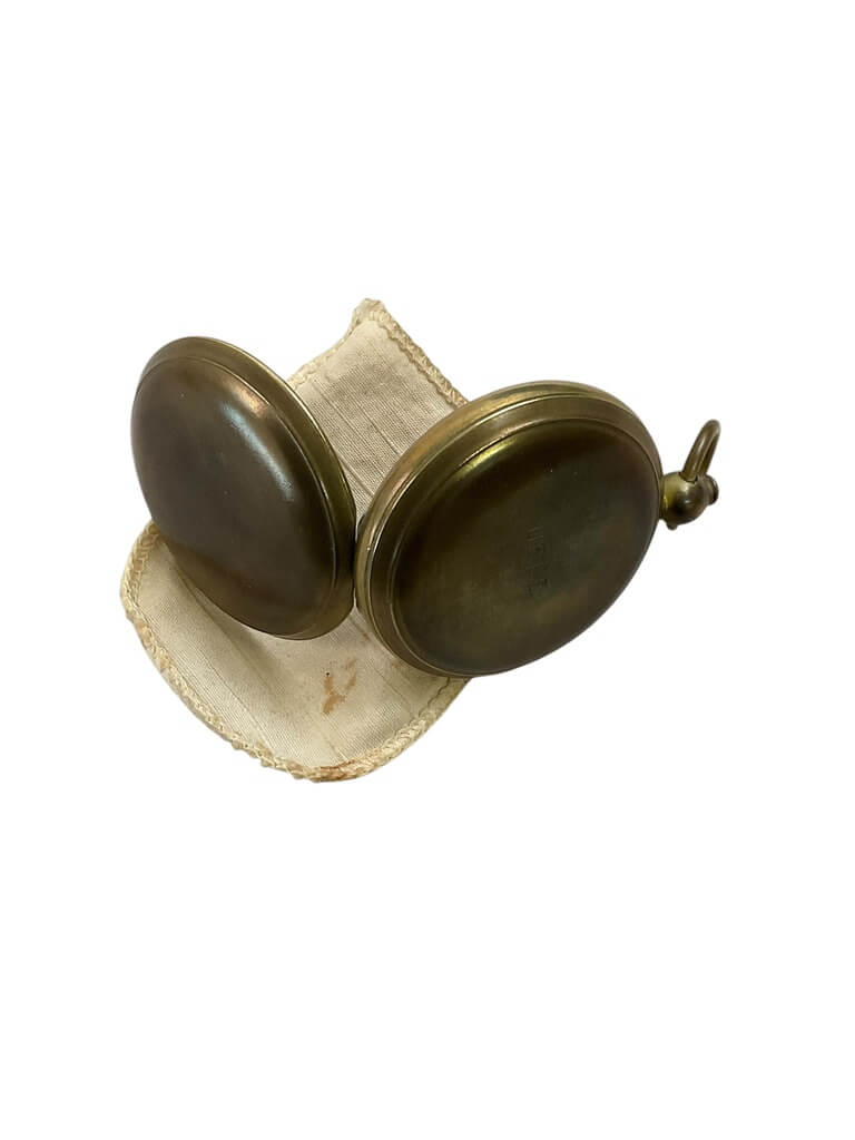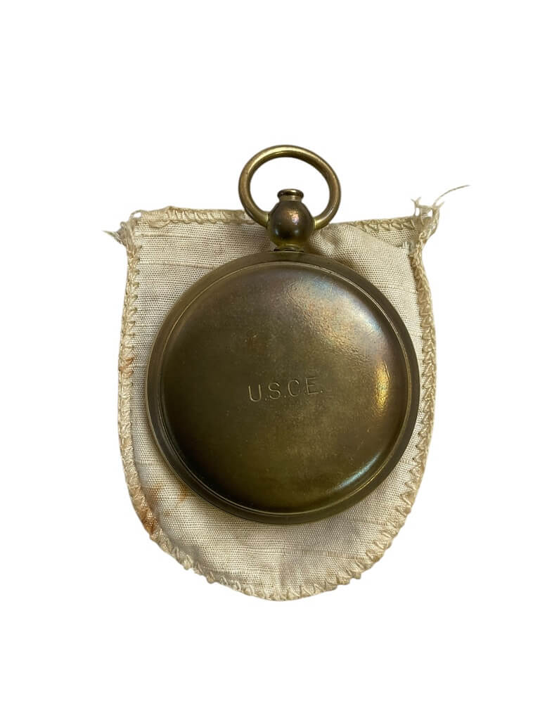 This WW1 US USCE USANITE Brass Folding Compass is a fascinating piece of history, dating back to the era of World War I. Crafted by the United States Army Corps of Engineers (USCE), this compass embodies the meticulous craftsmanship and technical precision of that time. Its durable brass body unfolds to reveal an intricate compass face, demonstrating the sophistication of early 20th-century navigational tools. The compass is etched with the name ‘USANITE’, signifying its authenticity and historical significance. It is in excellent condition, with the brass retaining its original sheen and luster. The compass comes with its original pouch, offering a protective casing for this precious artifact. The pouch, made of robust leather, has been well-preserved over the years, adding to the overall vintage appeal of the set. This compass is more than just a navigational tool; it’s a tangible piece of history that holds immense value for collectors and history enthusiasts alike.