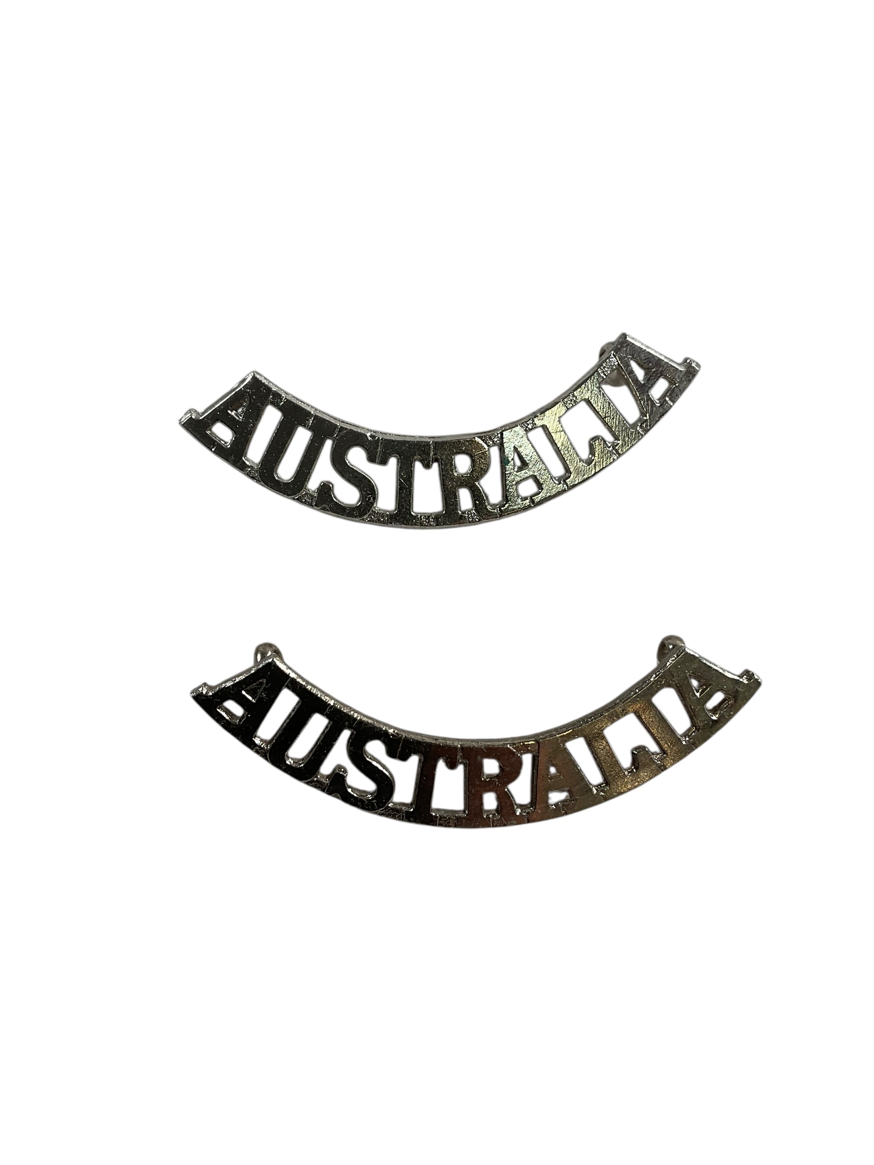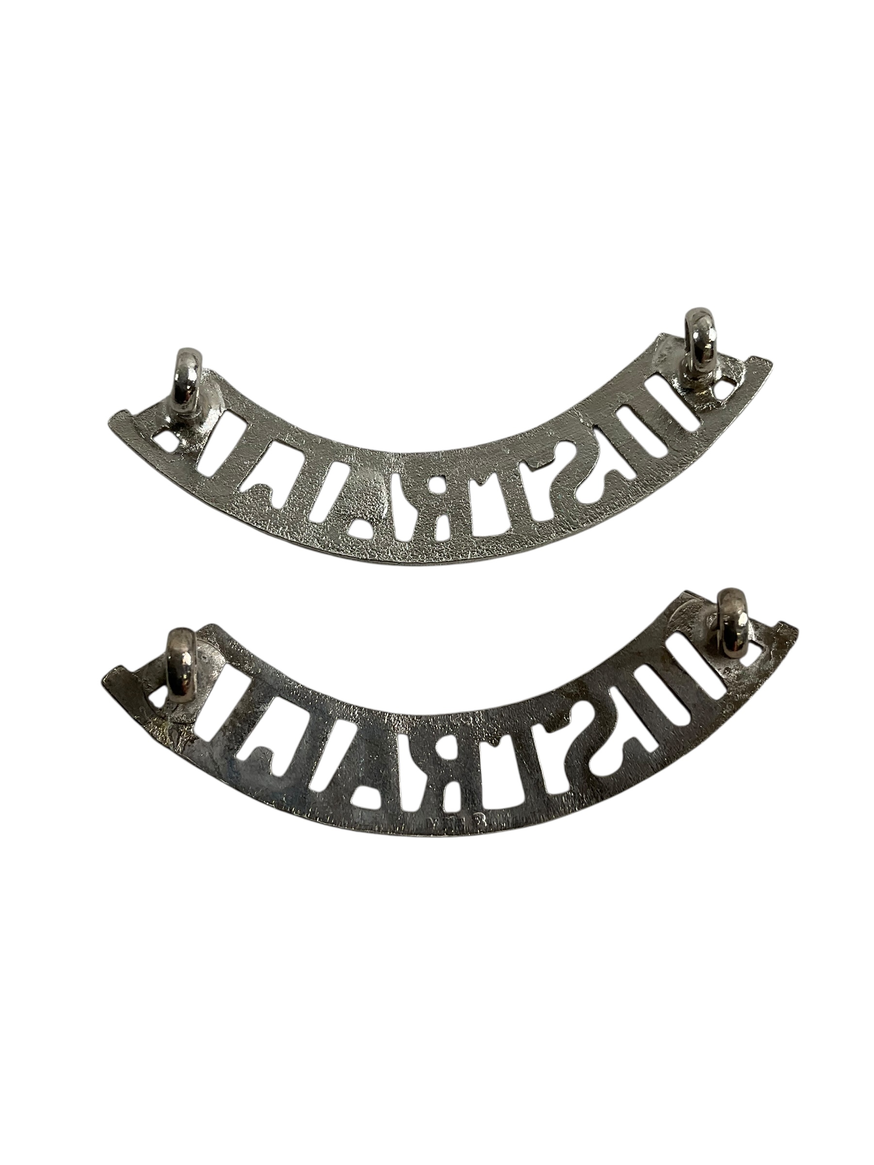 WW2 Australian Australia Shoulder Title Insignia Pair Chromed