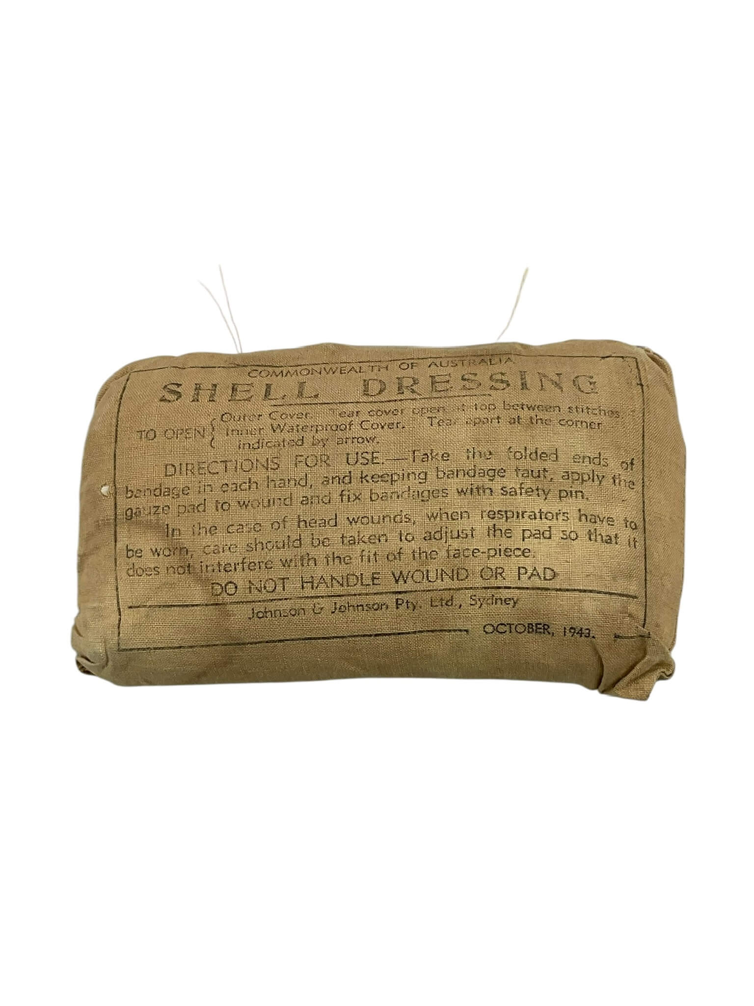 This product is a WW2 Australian Field Shell Dressing Bandage Medical, a historical artifact representing the medical tools used during World War II by the Australian military. It is an authentic, unopened field shell dressing bandage, used to treat wounds on the battlefield. These bandages were designed for immediate use, often under difficult conditions, providing essential first aid to injured soldiers. The bandage comes in its original packaging, featuring a label with instructions for use, making it an excellent piece for history buffs, medical professionals, or war memorabilia collectors. It not only offers an insight into the challenges faced by wartime medics but also reflects the resilience and innovation of that era. Own a piece of history with this WW2 Australian Field Shell Dressing Bandage Medical.