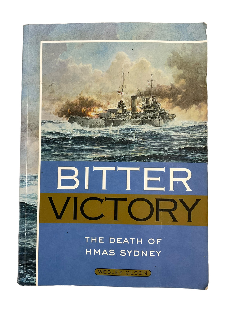 This is a used softcover WW2 Australian RAN Navy Bitter Victory The Death of HMAS Sydney Reference Book.  Total of 437 pages with lots of pictures and information.  Please note there is some water damage to book.