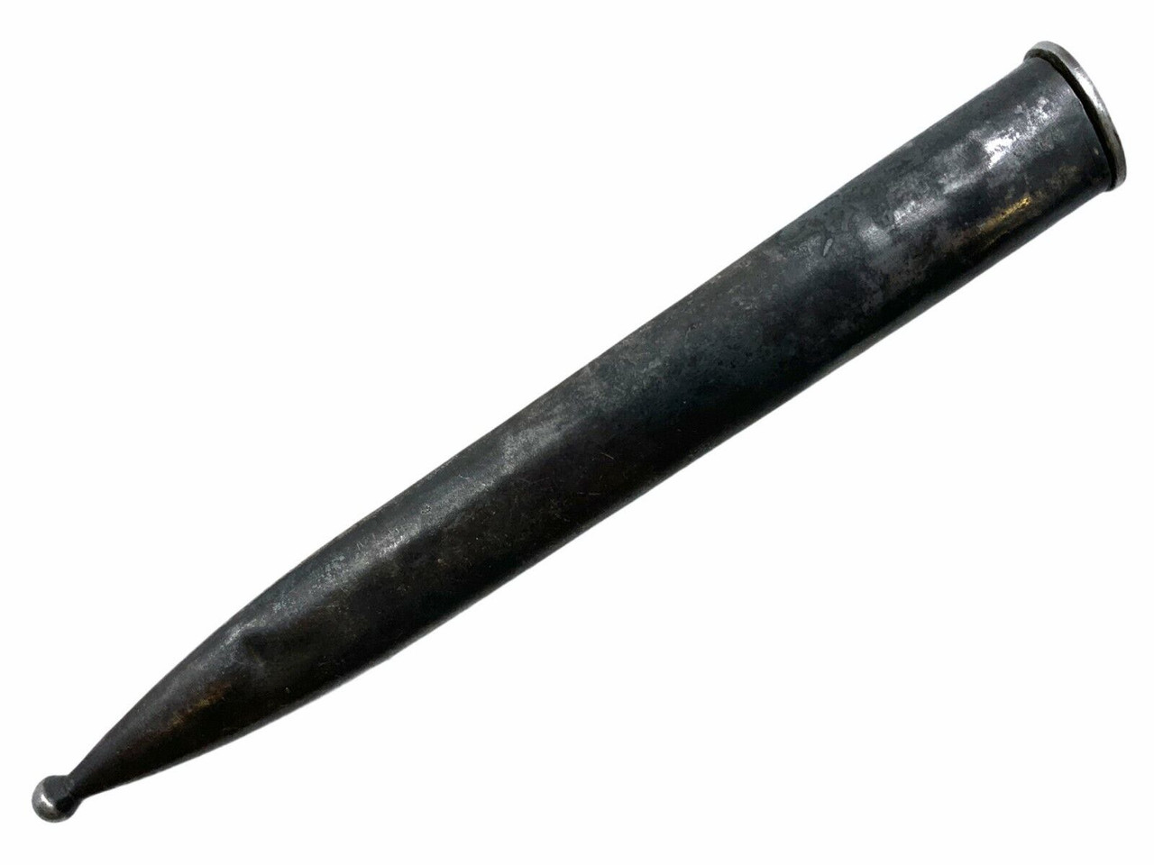 The ‘WW2 Austrian German Steyr Scabbard’ is a remarkable artifact from the tumultuous era of World War II, reflecting the craftsmanship and design of Austrian and German military equipment of the time. This scabbard, specifically designed to house the Steyr bayonet, was utilized by soldiers for both protection and practicality in the field. Made from durable materials, it showcases the robust engineering characteristic of the era. The metal casing is typically paired with leather strappings, ensuring a secure fit and easy accessibility. The design balances functionality with a degree of elegance, indicative of the meticulous attention to detail common in military gear of the period. Collectors and historians value this scabbard not only for its historical significance but also for its representation of wartime innovations in weaponry. Owning a Steyr scabbard provides a tangible connection to the past, embodying the resilience and resourcefulness of soldiers during World War II.