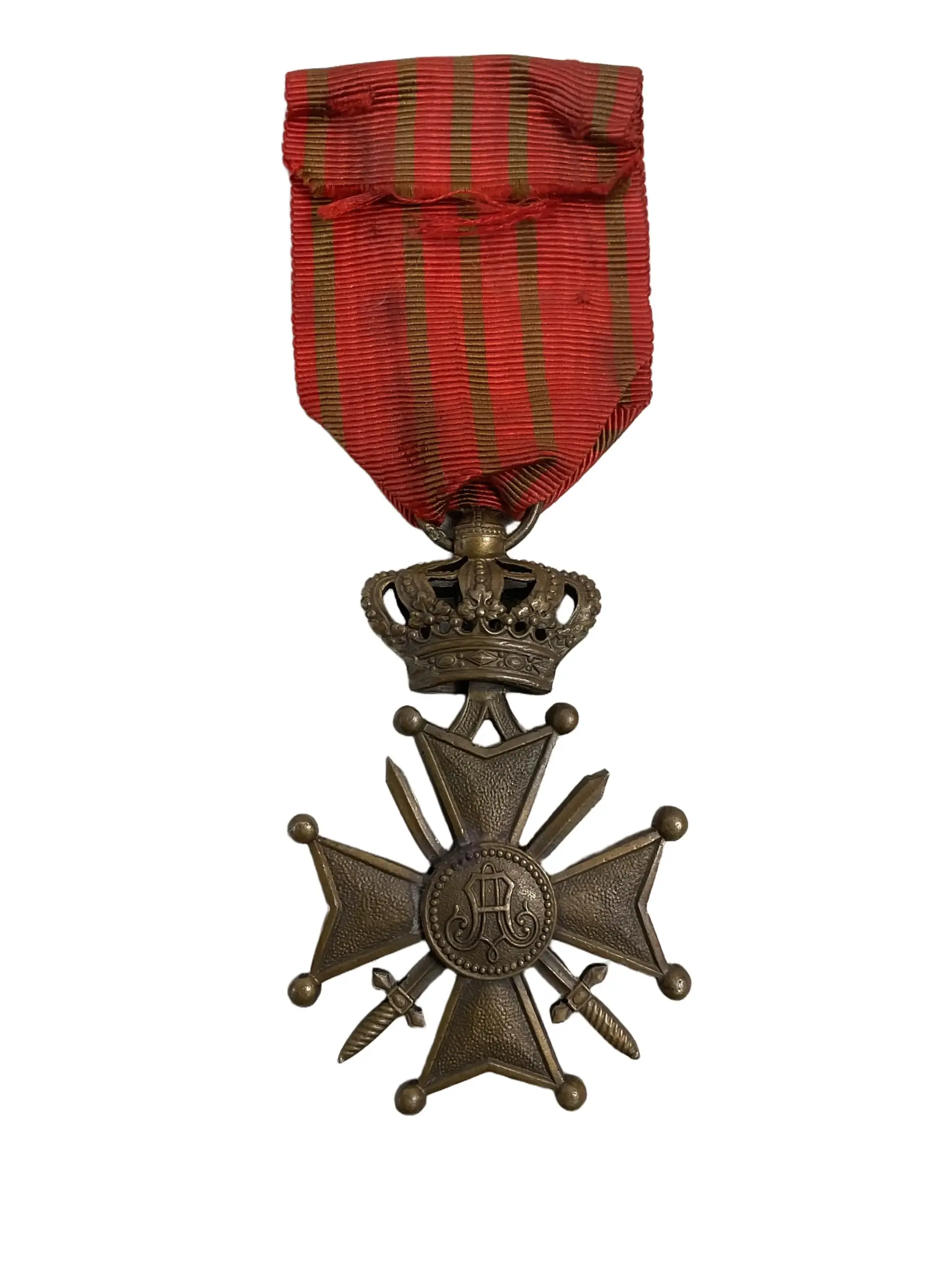 The WW2 Belgian Croix de Guerre Full Size is a military decoration awarded by Belgium during the Second World War. Instituted in 1940, the Croix de Guerre recognized acts of bravery, leadership, or distinguished service on the battlefield by Belgian soldiers and allied military personnel. The decoration features a bronze cross with crossed swords and a central medallion bearing the image of the Belgian lion. The reverse typically includes the royal cypher of the reigning monarch at the time of issue. The medal is suspended from a red ribbon with narrow green stripes, which may include additional devices such as palms or stars to indicate multiple awards or higher levels of distinction. The WW2 Belgian Croix de Guerre serves as a tangible record of valor and military merit. Its design mirrors that of the original 1914–1918 Croix de Guerre, with notable distinctions relating to the period of award.