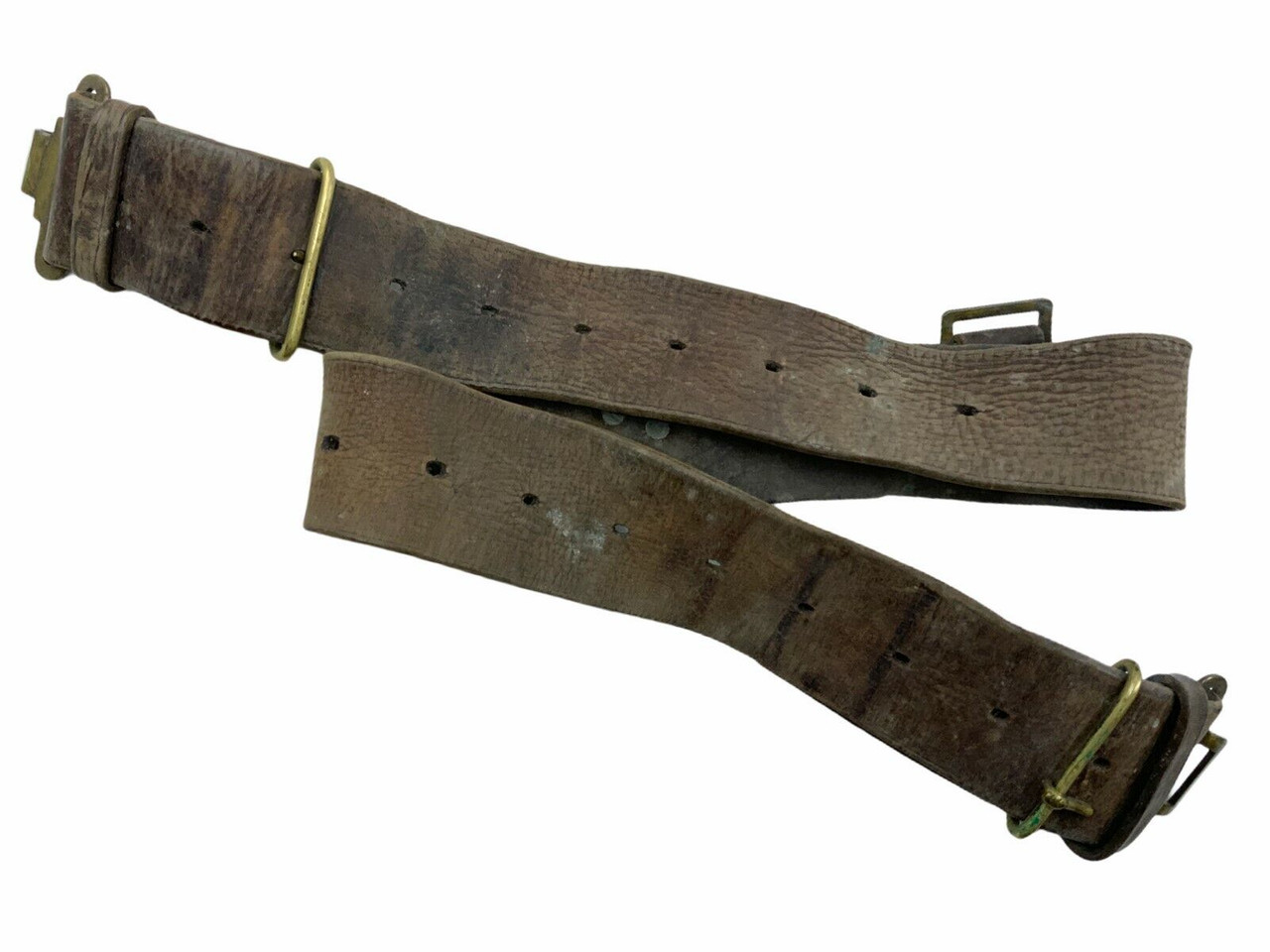 The ‘WW2 British 1939 Pattern Leather Belt’ is a notable piece of military history, reflecting the practical and robust design ethos of the British Army during World War II. Crafted from high-quality leather, this belt was introduced as part of the 1939 Pattern Web Equipment, which sought to enhance the durability and functionality of soldiers’ gear. The leather belt features a simple yet sturdy buckle, ensuring a secure fit, and is designed to accommodate various attachments and pouches essential for soldiers in the field. It exemplifies the period’s focus on utility and resilience, having been issued to numerous servicemen who required reliable equipment under harsh wartime conditions. Collectors and history enthusiasts value this piece for its authentic representation of British military gear and its significant role in the everyday lives of soldiers during one of the most impactful periods of the 20th century.