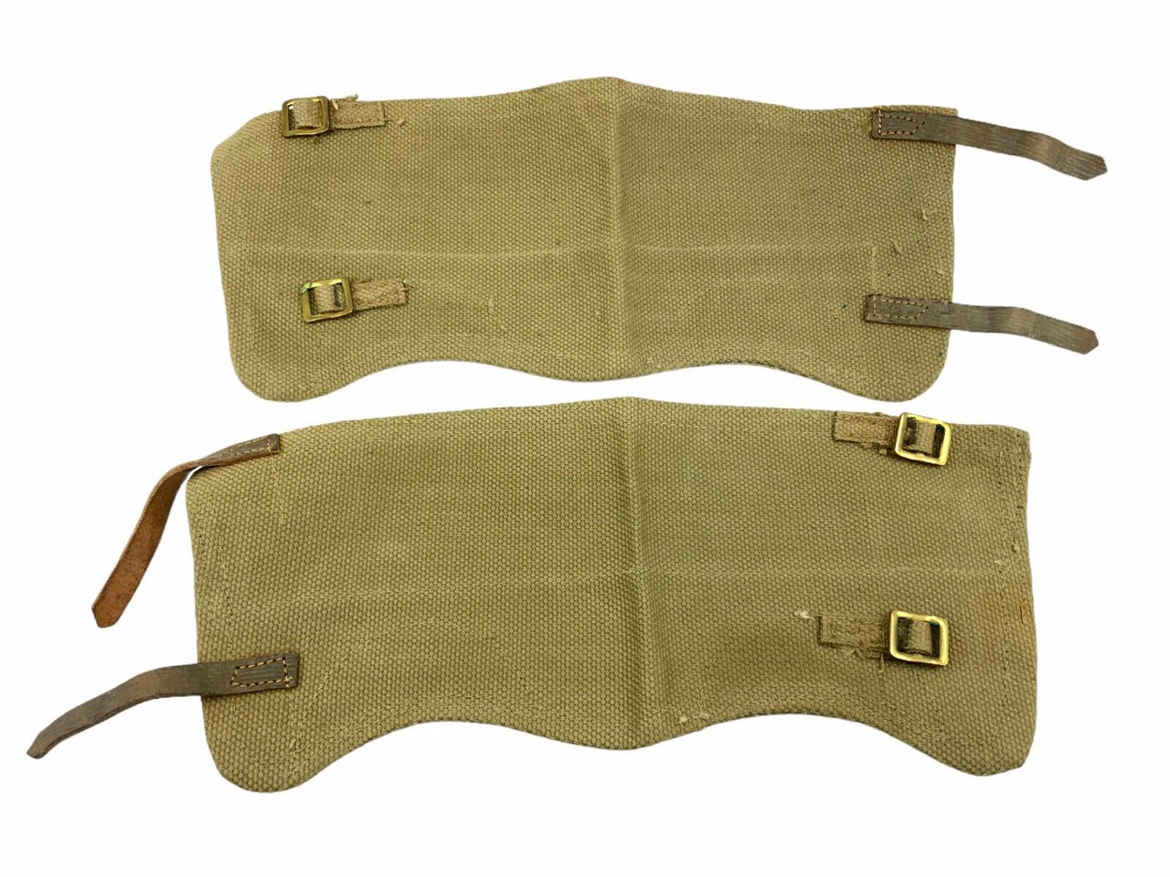 The WW2 British 1945 Dated Pair of Gaiters are authentic military accessories used by British soldiers towards the end of World War II. Crafted in 1945, these gaiters symbolize an era of resilience and tactical precision. Made from durable materials, they would have been worn to protect soldiers’ lower legs and ankles against debris, mud, and weather conditions in various combat zones. The pair showcases the typical design elements and construction quality of wartime gear. They feature sturdy straps and buckles, ensuring a secure fit over boots, and would have been essential in maintaining mobility and comfort during arduous marches and operations. Collectors and history enthusiasts will appreciate their historical significance and craftsmanship, making them a valuable addition to any WWII memorabilia collection. These gaiters provide a tangible connection to the brave soldiers who served in one of history’s most significant conflicts.
