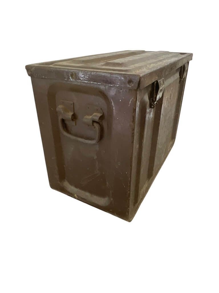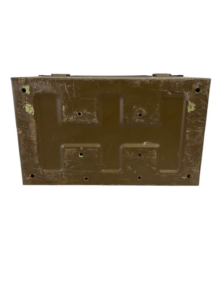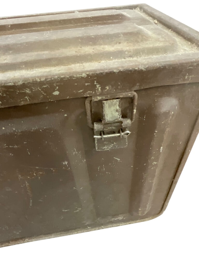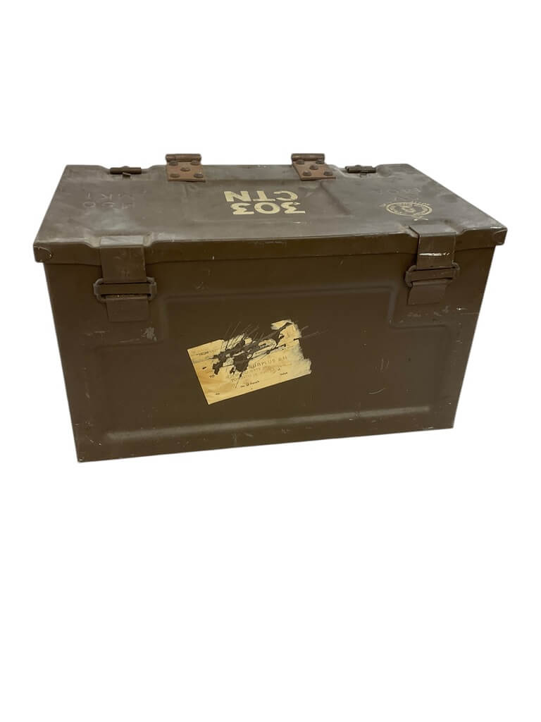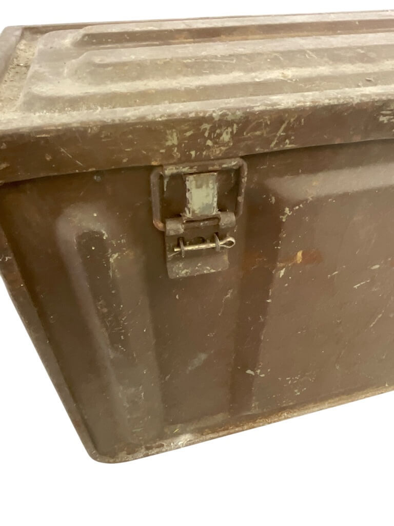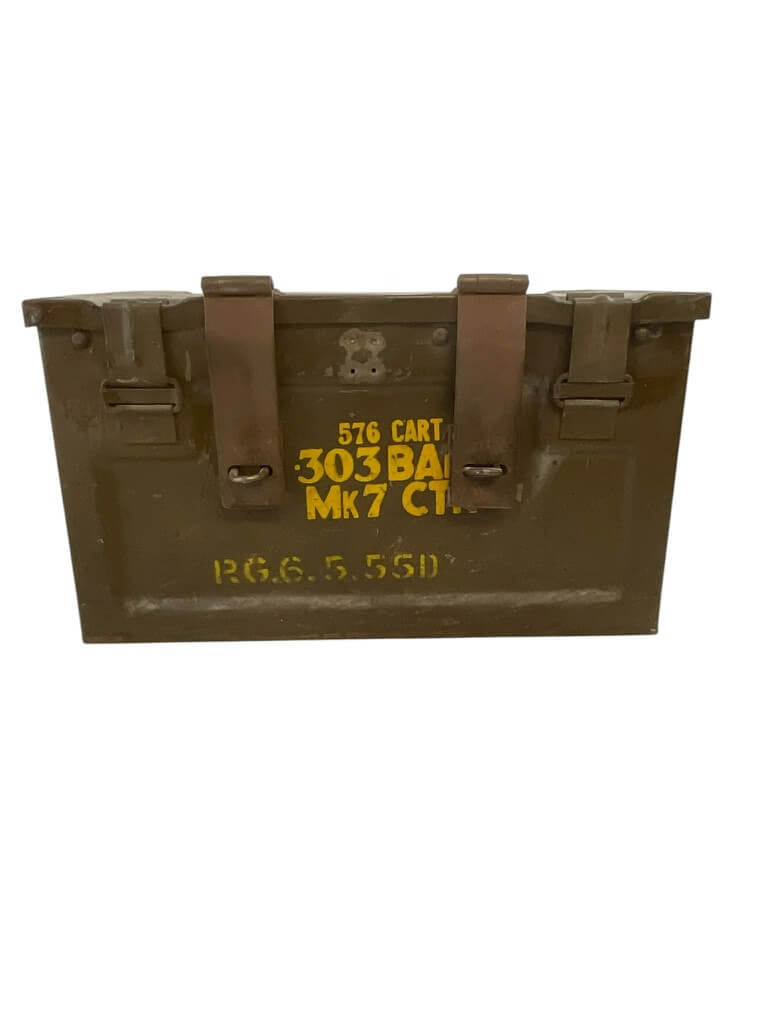 This item is an authentic WWII British 303 Ammo Box with original latches, now EMPTY. The box is a historical artifact from the Second World War, used by the British soldiers to transport and store 303 caliber ammunition, a key part of their arsenal. It is crafted from robust, sturdy metal and retains its original dark green paint, showing signs of wear and aging that enhance its vintage appeal. Despite its age, the latches are still in working condition, adding to the box’s functionality as a unique storage solution. Its compact rectangular structure makes it an ideal collector’s item for history enthusiasts, military memorabilia collectors or for those seeking a conversation piece. The box also serves as a tangible reminder of the sacrifices made during one of the most significant periods in world history. Please note, this box is sold empty, with no ammunition included.
