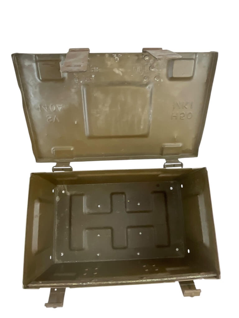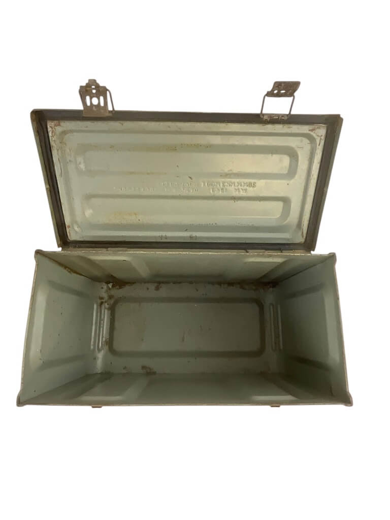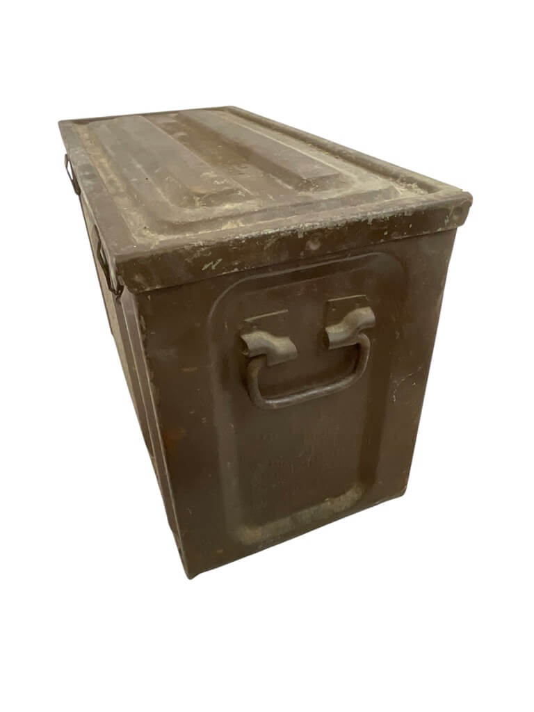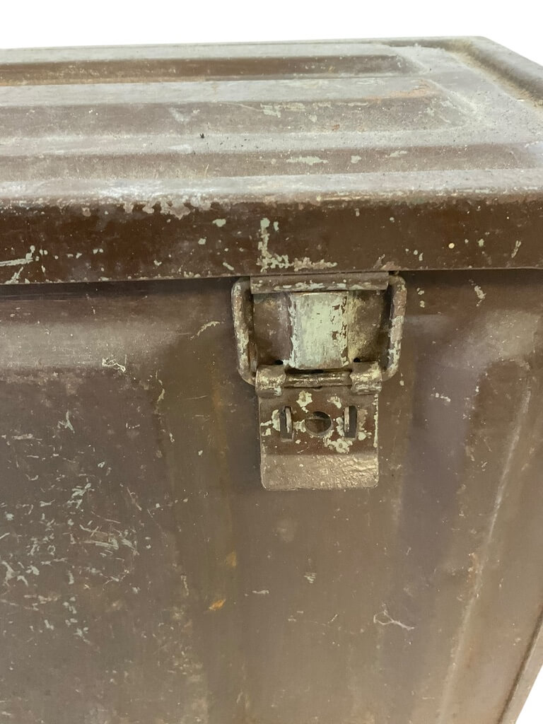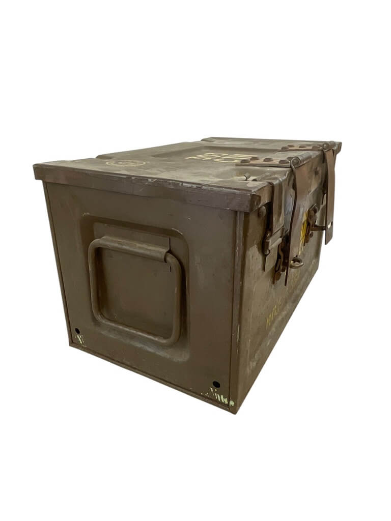 This item is an authentic WWII British 303 Ammo Box with original latches, now EMPTY. The box is a historical artifact from the Second World War, used by the British soldiers to transport and store 303 caliber ammunition, a key part of their arsenal. It is crafted from robust, sturdy metal and retains its original dark green paint, showing signs of wear and aging that enhance its vintage appeal. Despite its age, the latches are still in working condition, adding to the box’s functionality as a unique storage solution. Its compact rectangular structure makes it an ideal collector’s item for history enthusiasts, military memorabilia collectors or for those seeking a conversation piece. The box also serves as a tangible reminder of the sacrifices made during one of the most significant periods in world history. Please note, this box is sold empty, with no ammunition included.