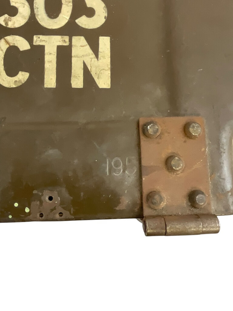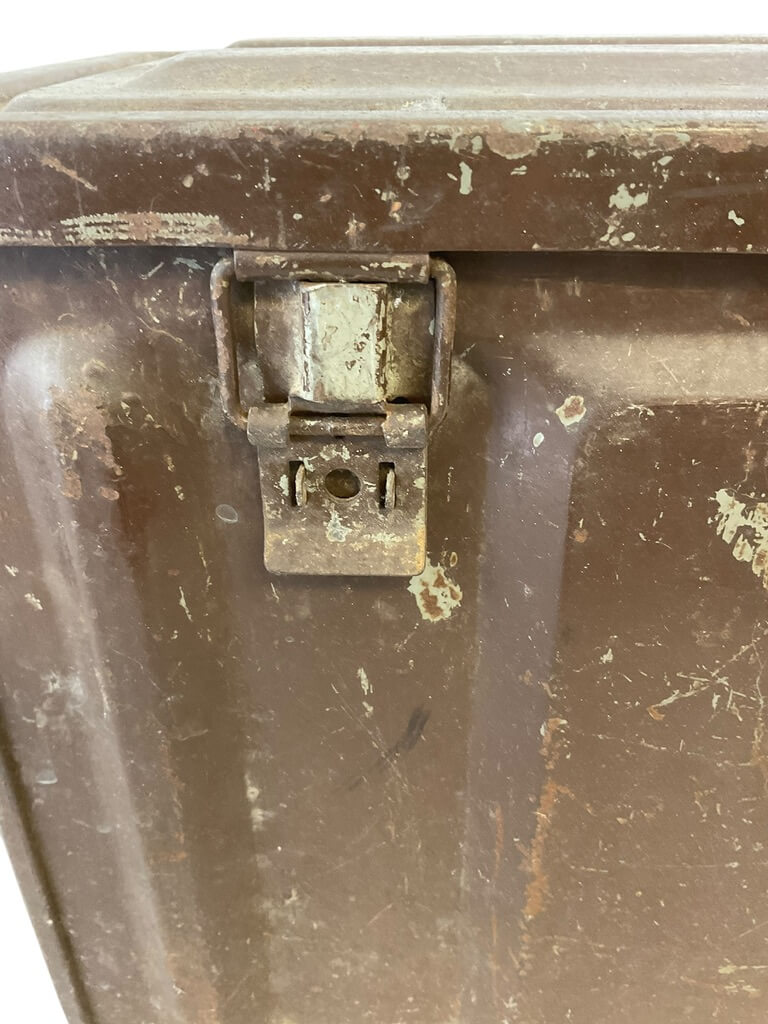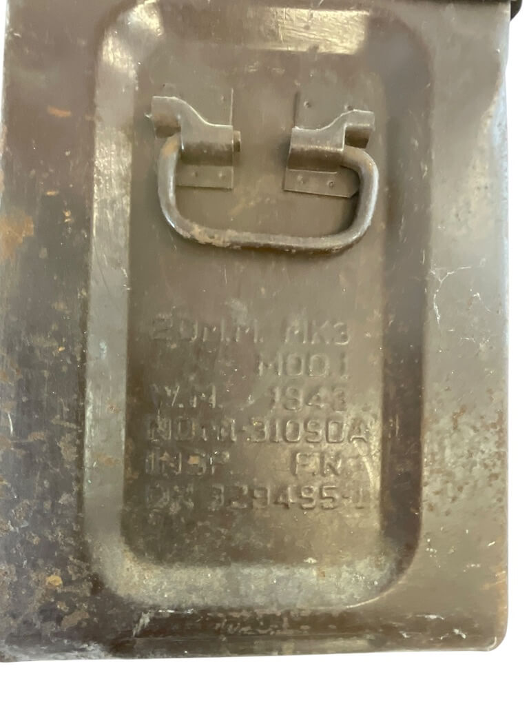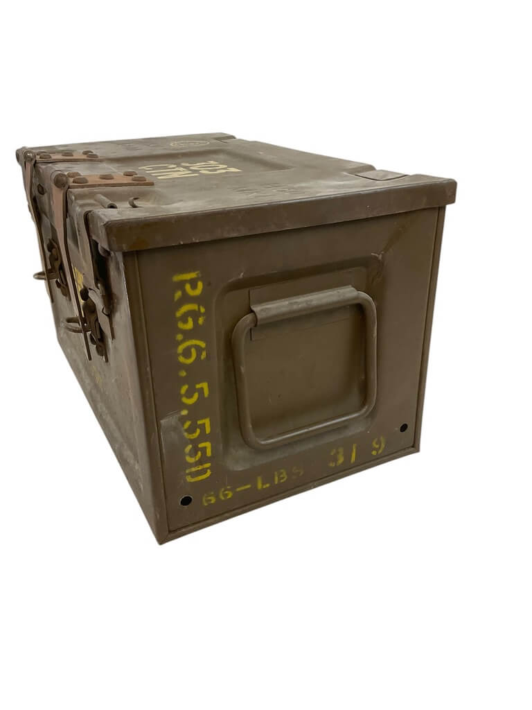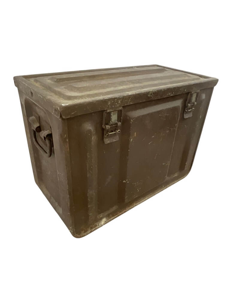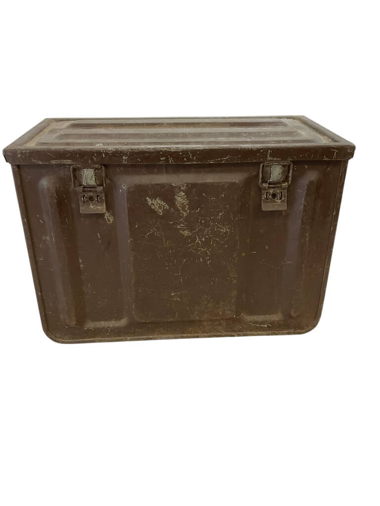 This item is an authentic WWII British 303 Ammo Box with original latches, now EMPTY. The box is a historical artifact from the Second World War, used by the British soldiers to transport and store 303 caliber ammunition, a key part of their arsenal. It is crafted from robust, sturdy metal and retains its original dark green paint, showing signs of wear and aging that enhance its vintage appeal. Despite its age, the latches are still in working condition, adding to the box’s functionality as a unique storage solution. Its compact rectangular structure makes it an ideal collector’s item for history enthusiasts, military memorabilia collectors or for those seeking a conversation piece. The box also serves as a tangible reminder of the sacrifices made during one of the most significant periods in world history. Please note, this box is sold empty, with no ammunition included.